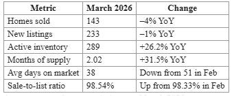 Presentation and marketing are not optional differentiators right now, they are baseline requirements. With active inventory up 26% year over year, buyers have more to compare. The homes that stand out on both strategy and presentation are capturing the demand. The ones that don't are sitting.