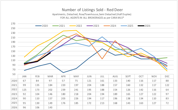 RED DEER MARKET STATS - MARCH 2026 Source: Alberta Real Estate Association / Pillar 9, City of Red Deer Monthly Statistics