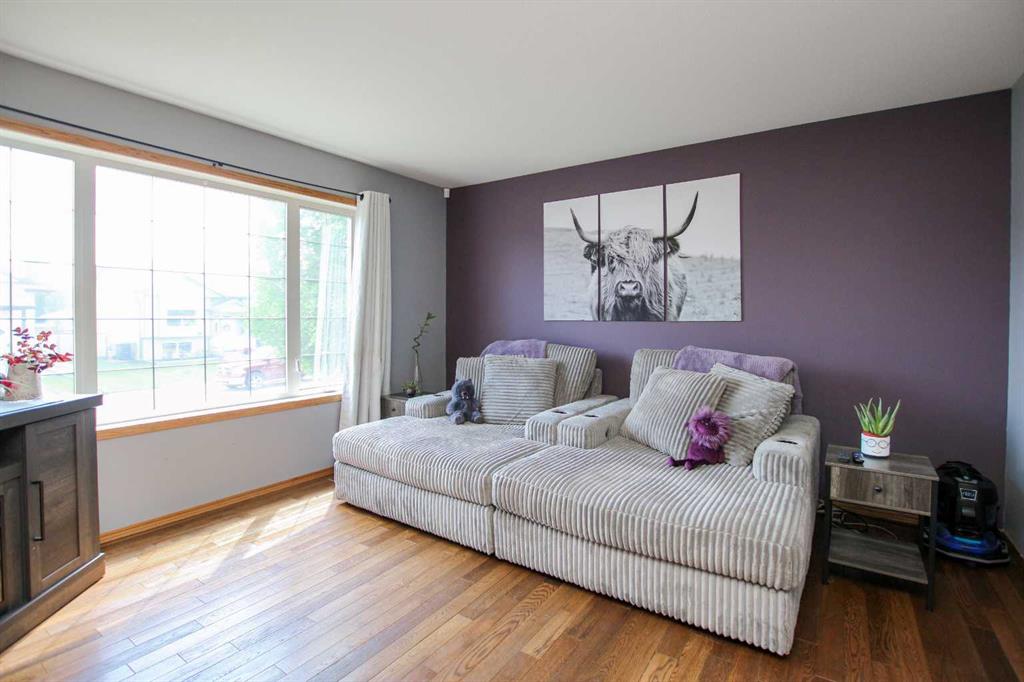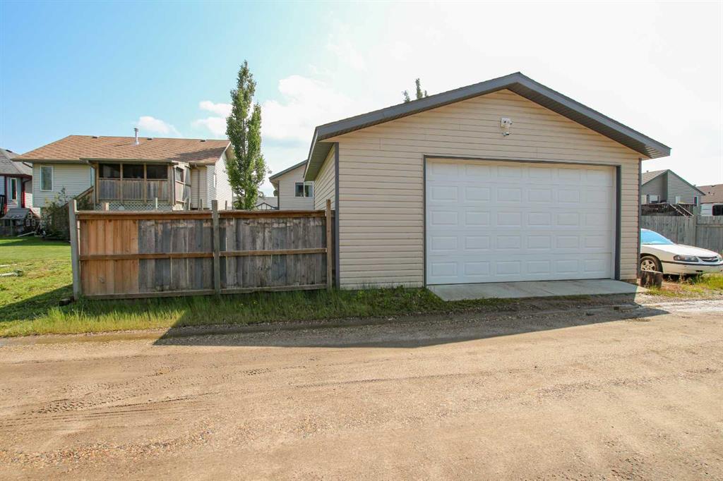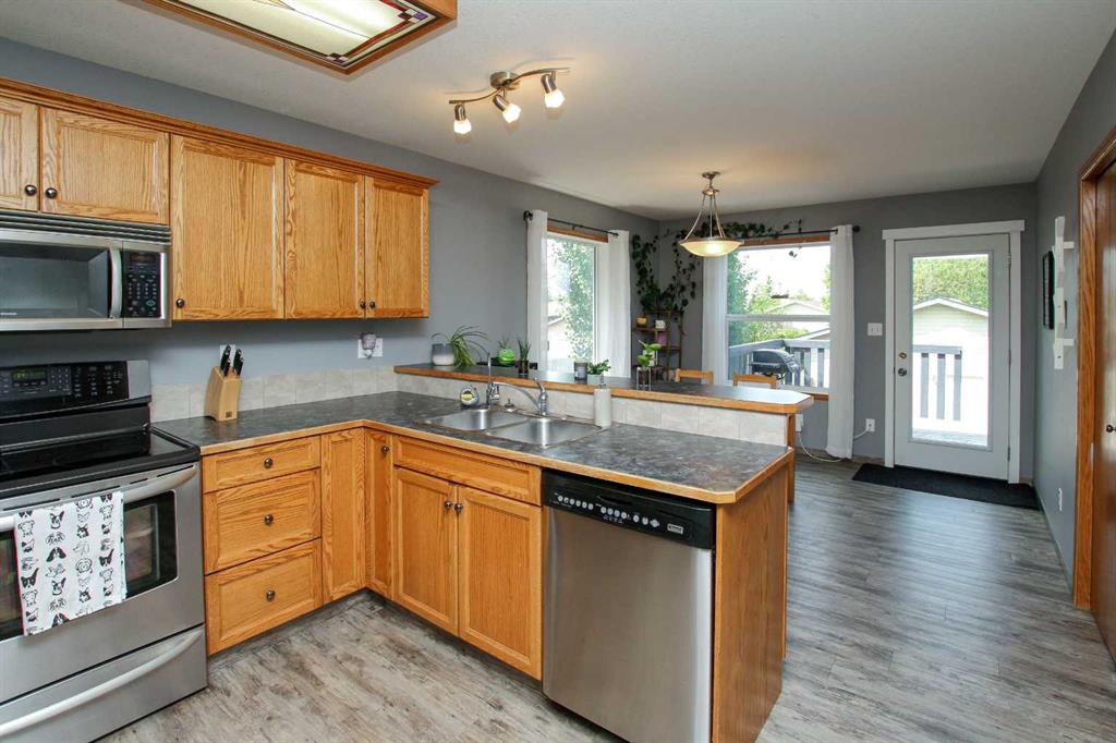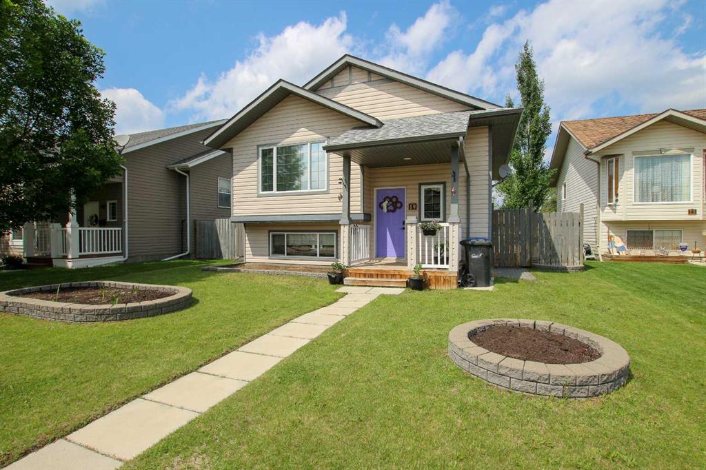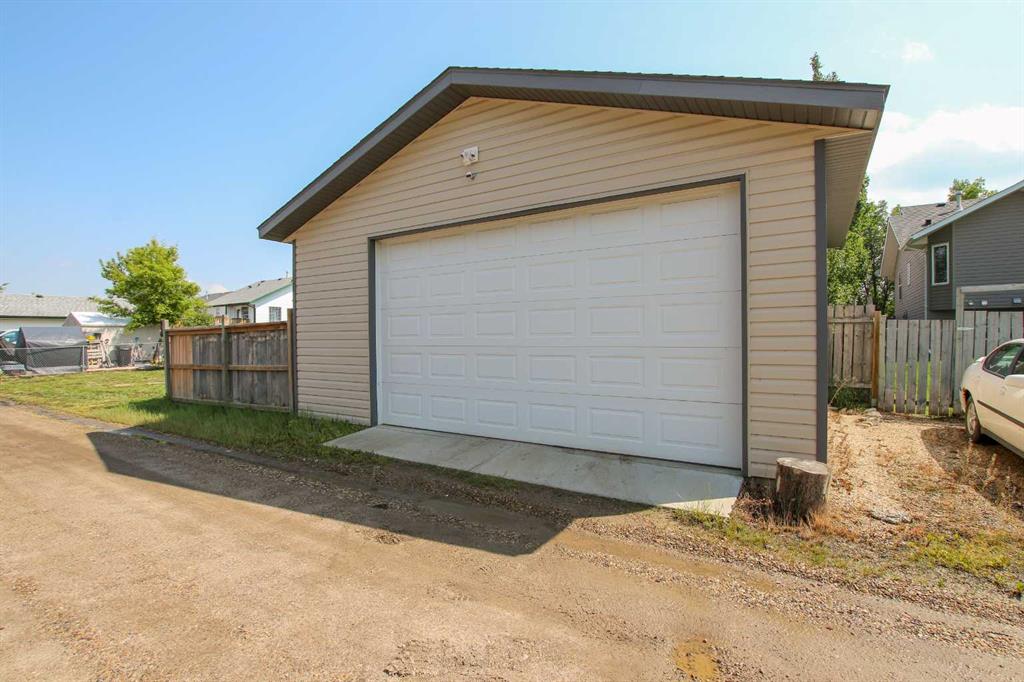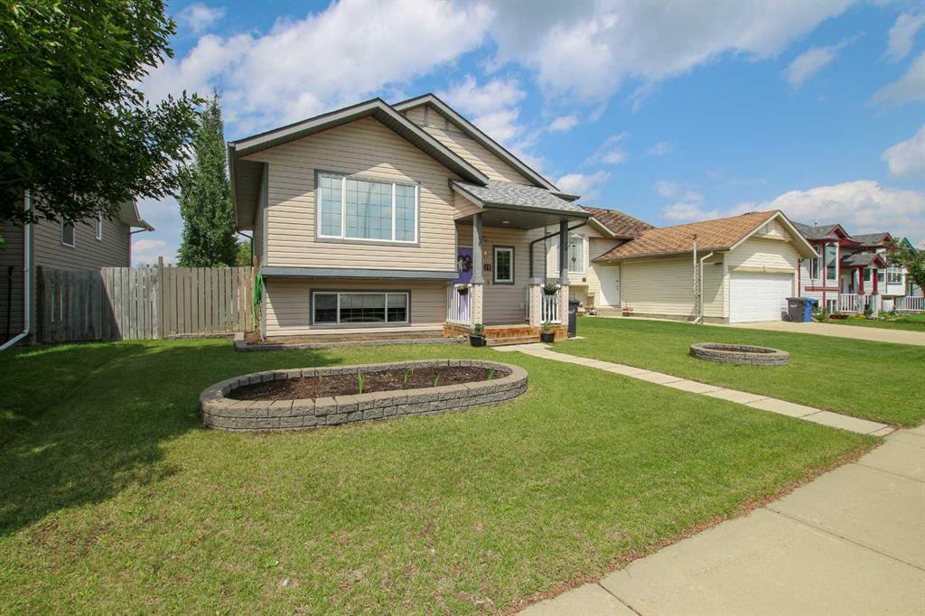 FULLY DEVELOPED 3 BEDROOM, 2 BATH BI-LEVEL ~ DOUBLE DETACHED GARAGE ~ MOVE IN READY ~ New Furnace, hot water tank, roof and AC within the last 3 years ~ Covered front veranda welcomes you to this well cared for home, and leads to a sun filled foyer with raised ceilings that open to the main level ~ The living room has hardwood flooring and large south facing windows that fill the space with natural light ~ The kitchen offers a functional layout with plenty of light stained cabinets, full tile backsplash, ample counter space including an eating bar, stainless steel appliances, and a wall pantry ~ Easily host guests in the dining room, featuring more large windows offering natural light, plus garden door access to the deck and backyard ~ Two main floor bedrooms are both a generous size, have ample closet space and are separated by the 4 piece main bathroom ~ The fully developed basement with large above grade windows and offers a spacious family room, oversized bedroom with mirrored closet doors, a 3 piece bathroom with a walk in shower, laundry and space for storage ~ The backyard is landscaped, has a fire pit, and is fully fenced with back alley access ~ 20' L x 24' W detached garage is insulated, and has high ceilings ~ Located steps to a large park with a school, daycare, playground, splash park and walking trails with easy access to shopping, restaurants, more walking trails, parks, shopping and the Penhold Multiplex (fitness facility, arena, gymnasium, walking track, library) and Community Hub area (sports courts, all wheels park, pump track, gazebo, washrooms, picnic area, campground, stocked pond for fishing) ~ Enjoy a quieter, close knit community atmosphere with friendly neighbours, ideally located just 10 minutes south of Red Deer, and with convenient access to Highway 2A and QEII.