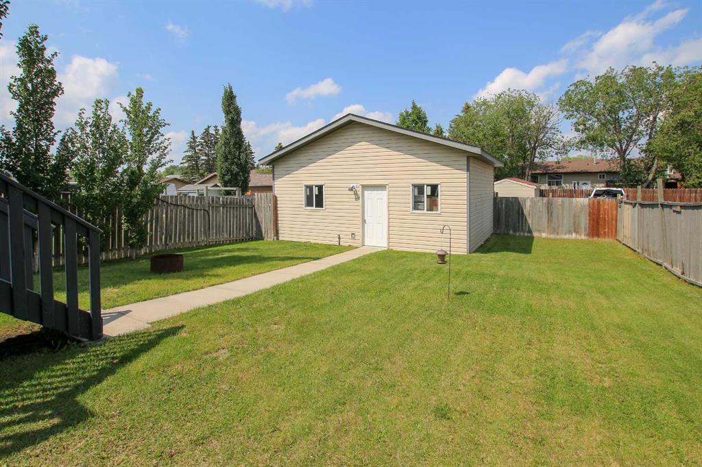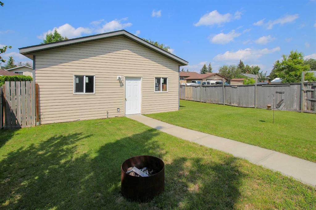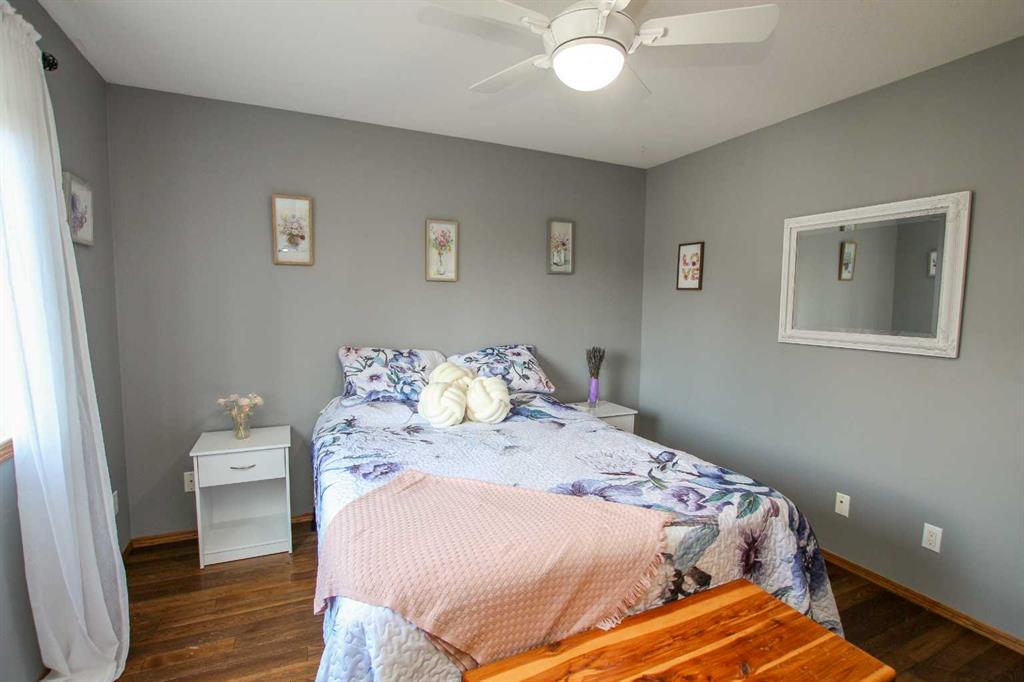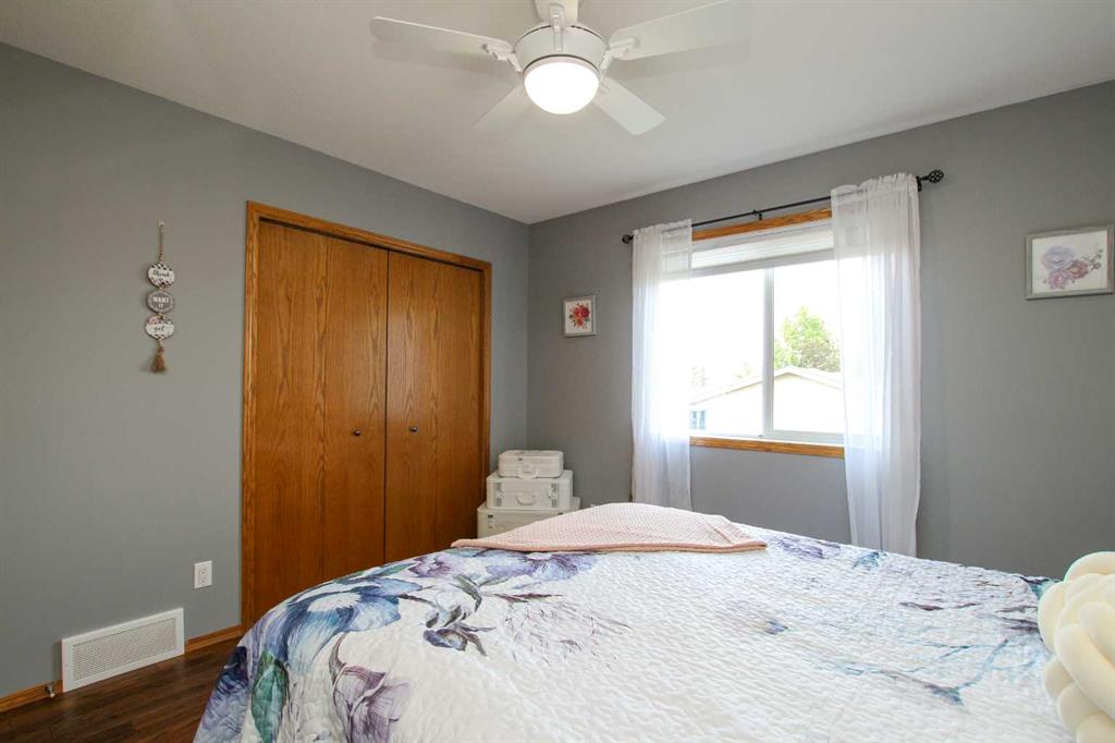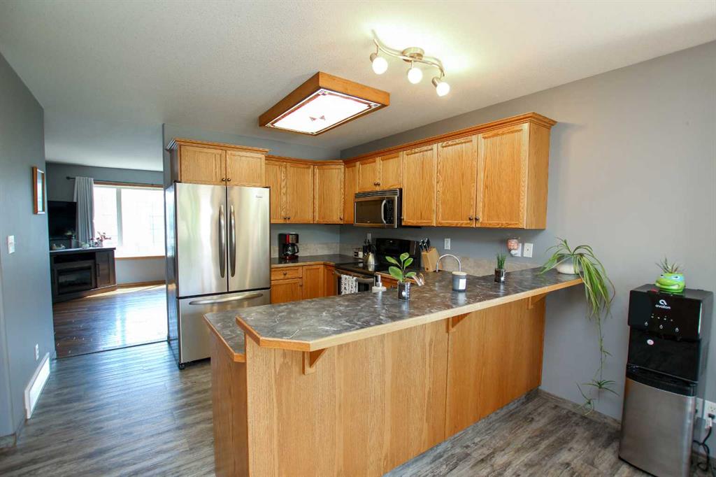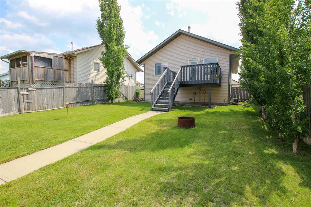 FULLY DEVELOPED 3 BEDROOM, 2 BATH BI-LEVEL ~ DOUBLE DETACHED GARAGE ~ MOVE IN READY ~ New Furnace, hot water tank, roof and AC within the last 3 years ~ Covered front veranda welcomes you to this well cared for home, and leads to a sun filled foyer with raised ceilings that open to the main level ~ The living room has hardwood flooring and large south facing windows that fill the space with natural light ~ The kitchen offers a functional layout with plenty of light stained cabinets, full tile backsplash, ample counter space including an eating bar, stainless steel appliances, and a wall pantry ~ Easily host guests in the dining room, featuring more large windows offering natural light, plus garden door access to the deck and backyard ~ Two main floor bedrooms are both a generous size, have ample closet space and are separated by the 4 piece main bathroom ~ The fully developed basement with large above grade windows and offers a spacious family room, oversized bedroom with mirrored closet doors, a 3 piece bathroom with a walk in shower, laundry and space for storage ~ The backyard is landscaped, has a fire pit, and is fully fenced with back alley access ~ 20' L x 24' W detached garage is insulated, and has high ceilings ~ Located steps to a large park with a school, daycare, playground, splash park and walking trails with easy access to shopping, restaurants, more walking trails, parks, shopping and the Penhold Multiplex (fitness facility, arena, gymnasium, walking track, library) and Community Hub area (sports courts, all wheels park, pump track, gazebo, washrooms, picnic area, campground, stocked pond for fishing) ~ Enjoy a quieter, close knit community atmosphere with friendly neighbours, ideally located just 10 minutes south of Red Deer, and with convenient access to Highway 2A and QEII.