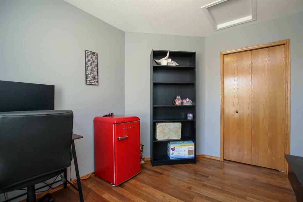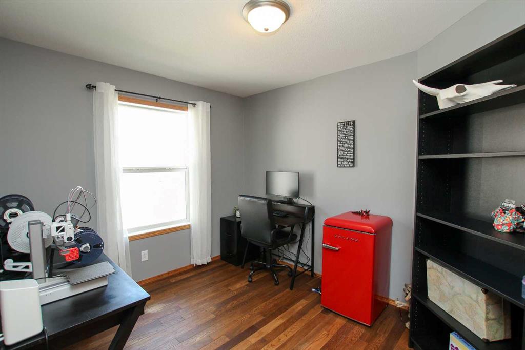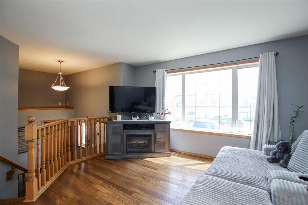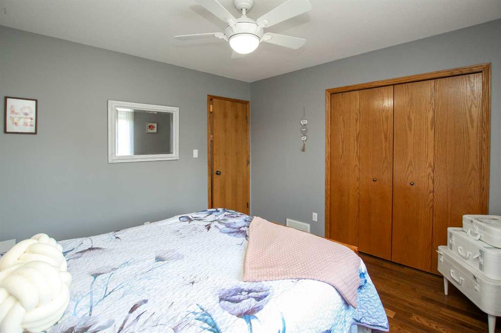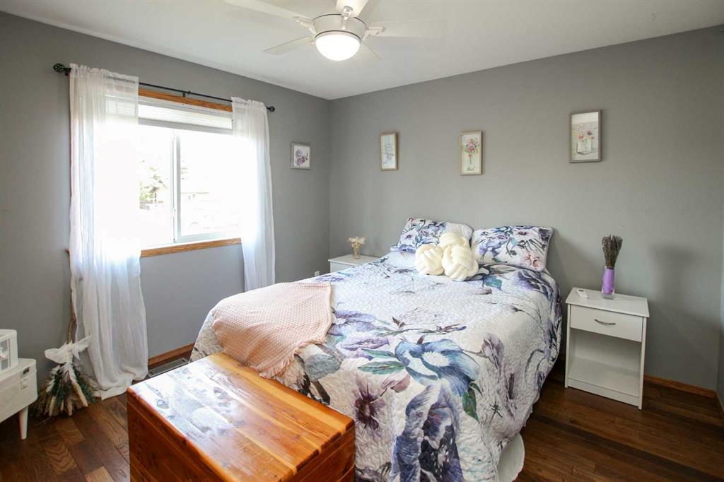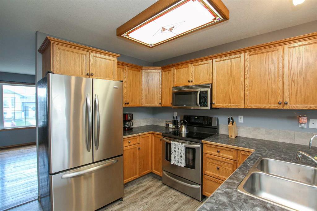 FULLY DEVELOPED 3 BEDROOM, 2 BATH BI-LEVEL ~ DOUBLE DETACHED GARAGE ~ MOVE IN READY ~ New Furnace, hot water tank, roof and AC within the last 3 years ~ Covered front veranda welcomes you to this well cared for home, and leads to a sun filled foyer with raised ceilings that open to the main level ~ The living room has hardwood flooring and large south facing windows that fill the space with natural light ~ The kitchen offers a functional layout with plenty of light stained cabinets, full tile backsplash, ample counter space including an eating bar, stainless steel appliances, and a wall pantry ~ Easily host guests in the dining room, featuring more large windows offering natural light, plus garden door access to the deck and backyard ~ Two main floor bedrooms are both a generous size, have ample closet space and are separated by the 4 piece main bathroom ~ The fully developed basement with large above grade windows and offers a spacious family room, oversized bedroom with mirrored closet doors, a 3 piece bathroom with a walk in shower, laundry and space for storage ~ The backyard is landscaped, has a fire pit, and is fully fenced with back alley access ~ 20' L x 24' W detached garage is insulated, and has high ceilings ~ Located steps to a large park with a school, daycare, playground, splash park and walking trails with easy access to shopping, restaurants, more walking trails, parks, shopping and the Penhold Multiplex (fitness facility, arena, gymnasium, walking track, library) and Community Hub area (sports courts, all wheels park, pump track, gazebo, washrooms, picnic area, campground, stocked pond for fishing) ~ Enjoy a quieter, close knit community atmosphere with friendly neighbours, ideally located just 10 minutes south of Red Deer, and with convenient access to Highway 2A and QEII.