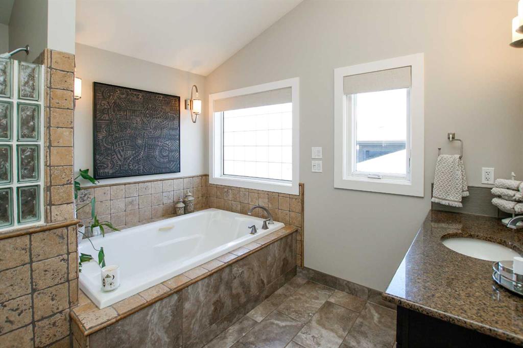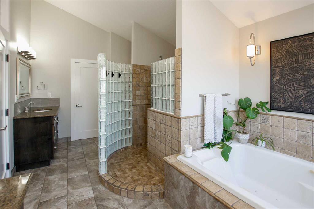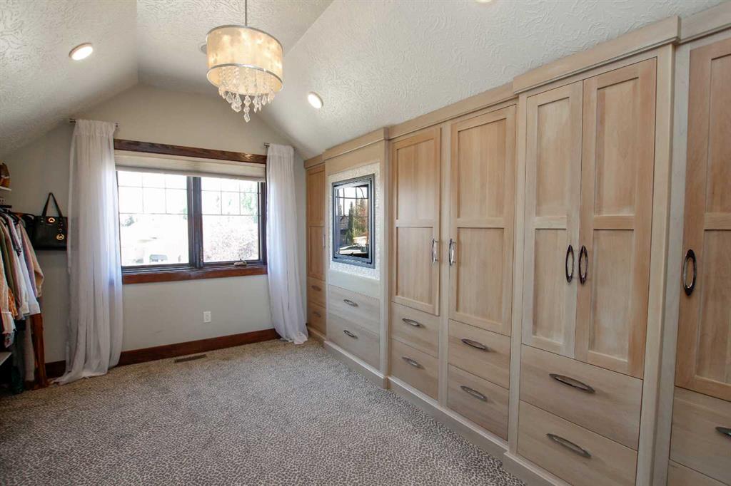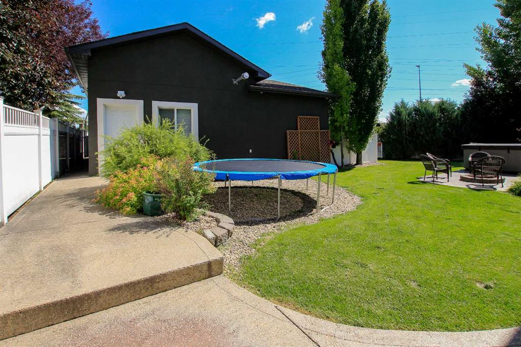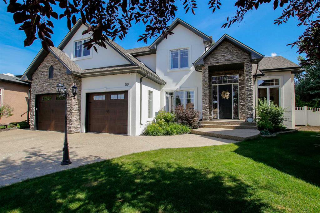IMMEDIATE POSSESSION AVAILABLE ~ FULLY DEVELOPED 4 BEDROOM, 5 BATHROOM 2-STOREY ~ TRIPLE ATTACHED GARAGE, TRIPLE DETACHED SHOP & GATED RV PARKING ~ LOCATED ON A MASSIVE PIE LOT IN SOUGHT AFTER ANDERS SOUTH ~ Stucco and stone exterior accented with mature landscaping offer eye catching curb appeal to this executive style home ~ Covered front entry welcomes you and leads to the great room with soaring vaulted ceilings, an abundance of windows offering natural light and a gas fireplace with built in cabinetry ~ The breakfast room has more large windows offering natural light, a built in desk, space for a large dining set and garden door access to the patio and backyard ~ The kitchen offers an abundance of dark stained cabinetry, full tile backsplash, stone countertops, walk in corner pantry and upgraded stainless steel appliances ~ Easily host large family gatherings in the beautiful formal dining room with wood accented walls ~Updated 2 piece main floor bathroom is conveniently located next to the mud room with access to the attached garage ~ The stunning primary bedroom has soaring cathedral ceilings, ample space for a king size bedroom suite with space for a sitting area, large south facing windows with a garden door to a private balcony overlooking the backyard ~ French doors from the bedroom lead to the spa like ensuite featuring dual vanities, a jetted soaker tub, walk in shower, water closet and sauna ~ Luxurious walk in closet has custom built in cabinetry, a fireplace and chandelier ~ Laundry is located in it's own room with built in cabinets and a sink ~ Two sizeable bedrooms can easily fit king size beds, have ample closet space and 3 piece ensuites ~ The fully developed basement offers tons of space with a large family room with a games area and a wet bar with built in cabinetry, media room (wired for sound), den, 4th bedroom with a walk in closet, 4 piece bathroom and space for storage ~ Heated TRIPLE attached garage is insulated, painted with finished drywall, has built in shelving, a sink with hot and cold taps, and a man door to the backyard ~ The sunny south facing backyard is fully fenced, landscaped with mature trees, shrubs and perennials, has a garden shed with power, built in fire pit, patio area and a hot tub ~ Heated triple detached shop is insulated, fully finished with painted drywall, has an RV bay, bathroom and office ~ Gated RV parking stall with easy alley approach makes parking a breeze ~ Excellent location, close to walking trails, parks, playgrounds, shopping, and schools with easy access to all other amenities ~ Pride of ownership is evident!