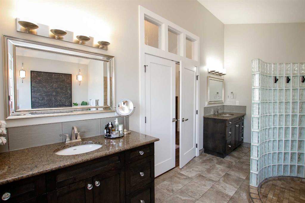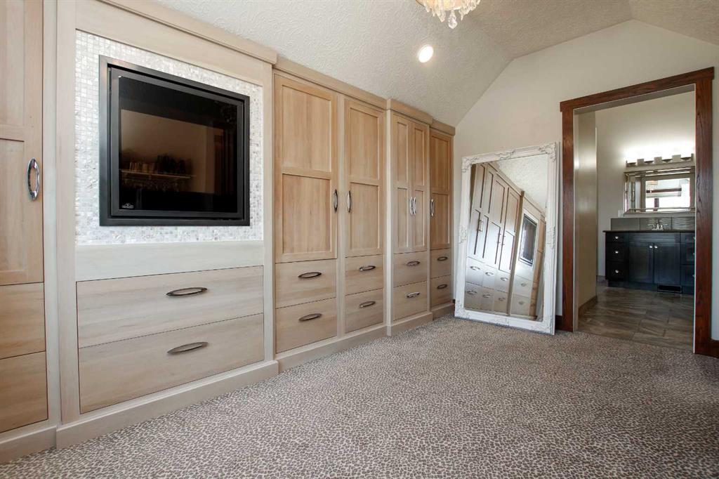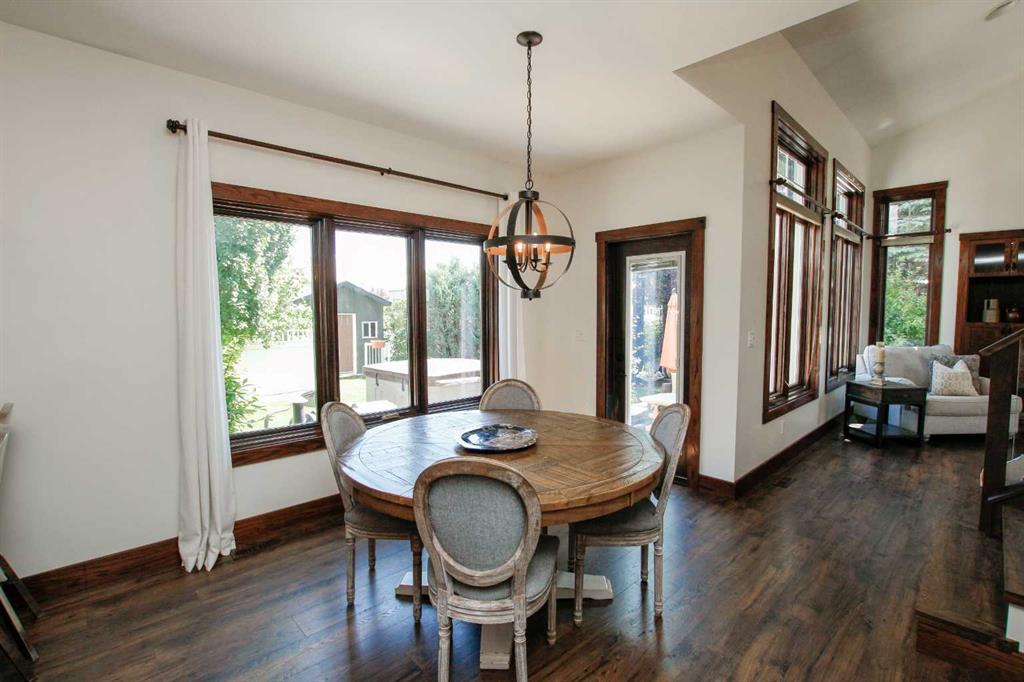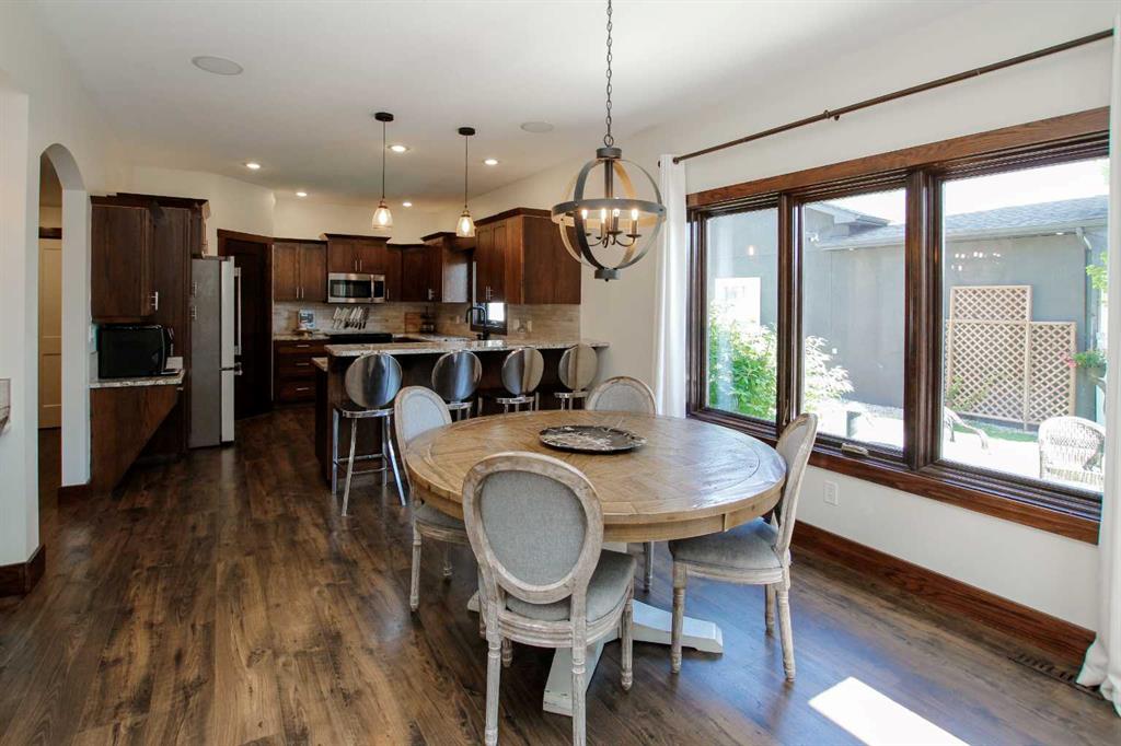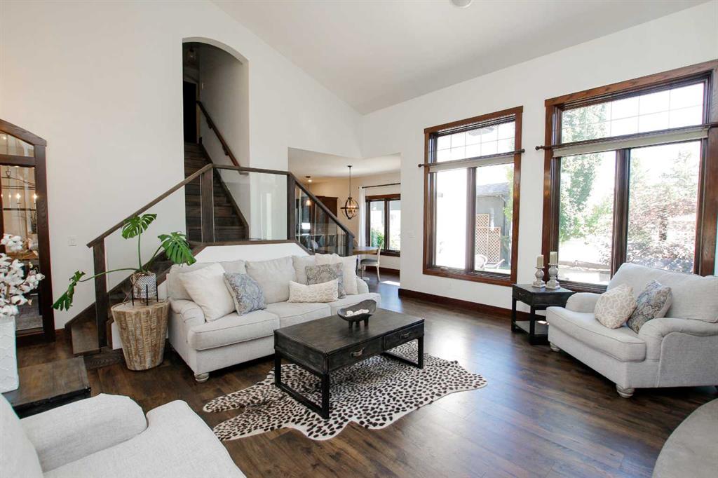 IMMEDIATE POSSESSION AVAILABLE ~ FULLY DEVELOPED 4 BEDROOM, 5 BATHROOM 2-STOREY ~ TRIPLE ATTACHED GARAGE, TRIPLE DETACHED SHOP & GATED RV PARKING ~ LOCATED ON A MASSIVE PIE LOT IN SOUGHT AFTER ANDERS SOUTH ~ Stucco and stone exterior accented with mature landscaping offer eye catching curb appeal to this executive style home ~ Covered front entry welcomes you and leads to the great room with soaring vaulted ceilings, an abundance of windows offering natural light and a gas fireplace with built in cabinetry ~ The breakfast room has more large windows offering natural light, a built in desk, space for a large dining set and garden door access to the patio and backyard ~ The kitchen offers an abundance of dark stained cabinetry, full tile backsplash, stone countertops, walk in corner pantry and upgraded stainless steel appliances ~ Easily host large family gatherings in the beautiful formal dining room with wood accented walls ~Updated 2 piece main floor bathroom is conveniently located next to the mud room with access to the attached garage ~ The stunning primary bedroom has soaring cathedral ceilings, ample space for a king size bedroom suite with space for a sitting area, large south facing windows with a garden door to a private balcony overlooking the backyard ~ French doors from the bedroom lead to the spa like ensuite featuring dual vanities, a jetted soaker tub, walk in shower, water closet and sauna ~ Luxurious walk in closet has custom built in cabinetry, a fireplace and chandelier ~ Laundry is located in it's own room with built in cabinets and a sink ~ Two sizeable bedrooms can easily fit king size beds, have ample closet space and 3 piece ensuites ~ The fully developed basement offers tons of space with a large family room with a games area and a wet bar with built in cabinetry, media room (wired for sound), den, 4th bedroom with a walk in closet, 4 piece bathroom and space for storage ~ Heated TRIPLE attached garage is insulated, painted with finished drywall, has built in shelving, a sink with hot and cold taps, and a man door to the backyard ~ The sunny south facing backyard is fully fenced, landscaped with mature trees, shrubs and perennials, has a garden shed with power, built in fire pit, patio area and a hot tub ~ Heated triple detached shop is insulated, fully finished with painted drywall, has an RV bay, bathroom and office ~ Gated RV parking stall with easy alley approach makes parking a breeze ~ Excellent location, close to walking trails, parks, playgrounds, shopping, and schools with easy access to all other amenities ~ Pride of ownership is evident!