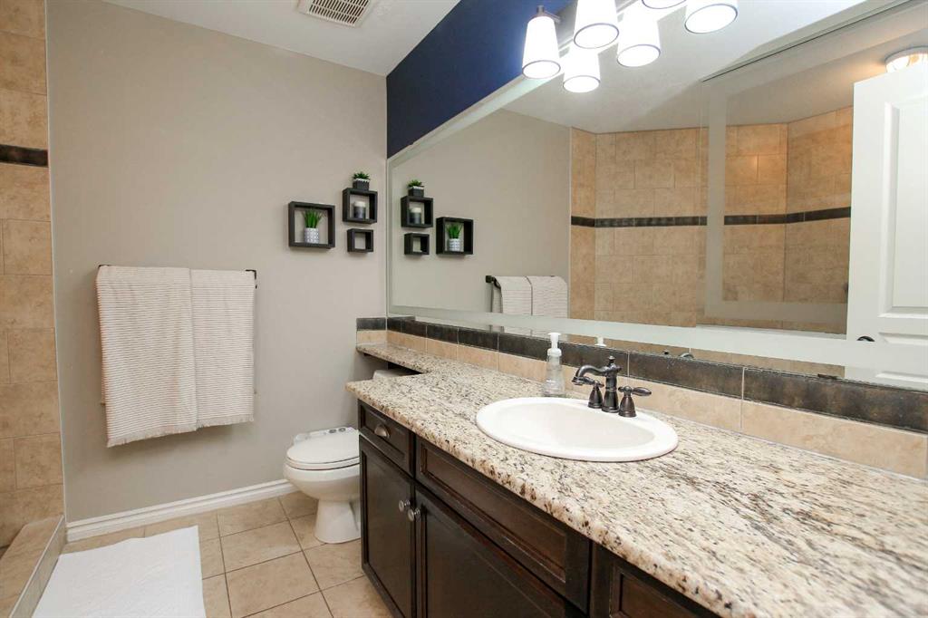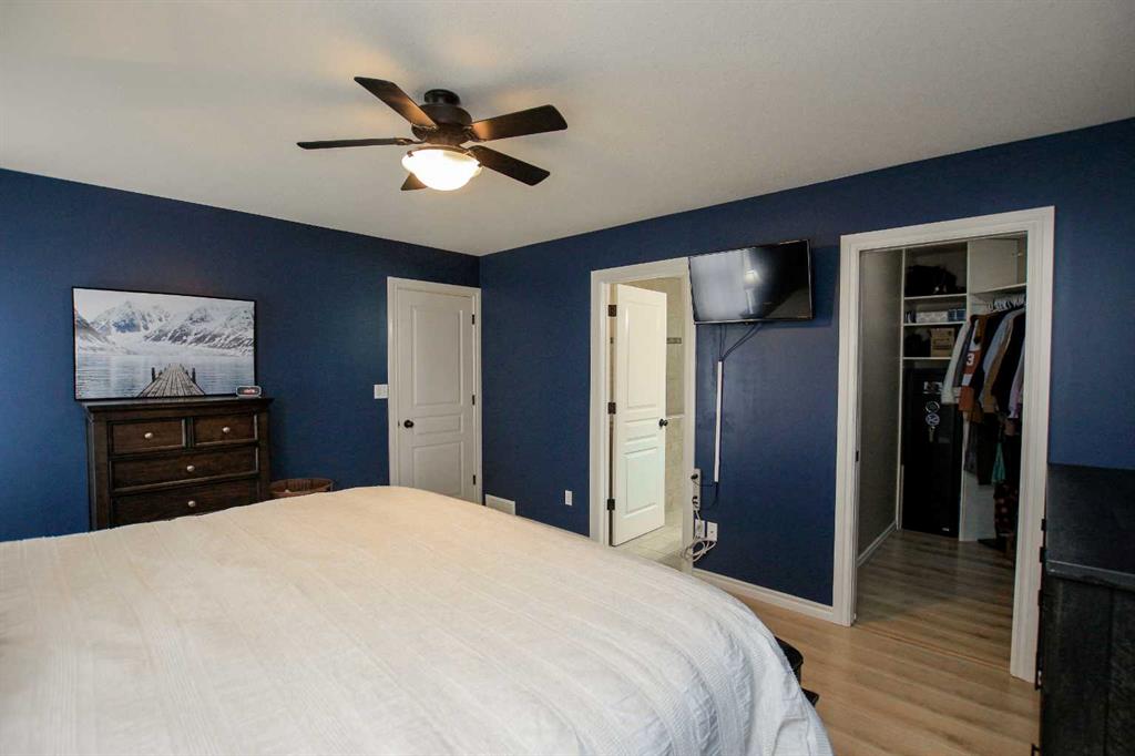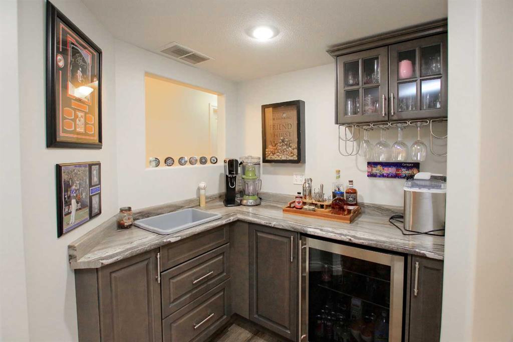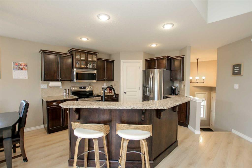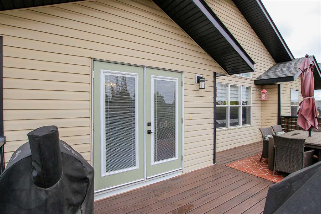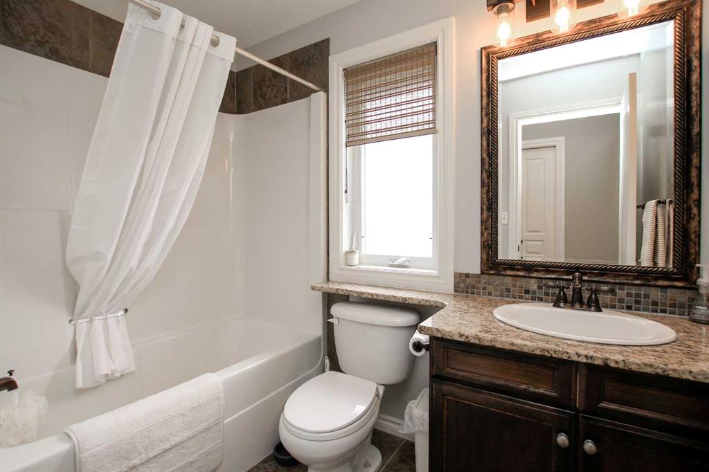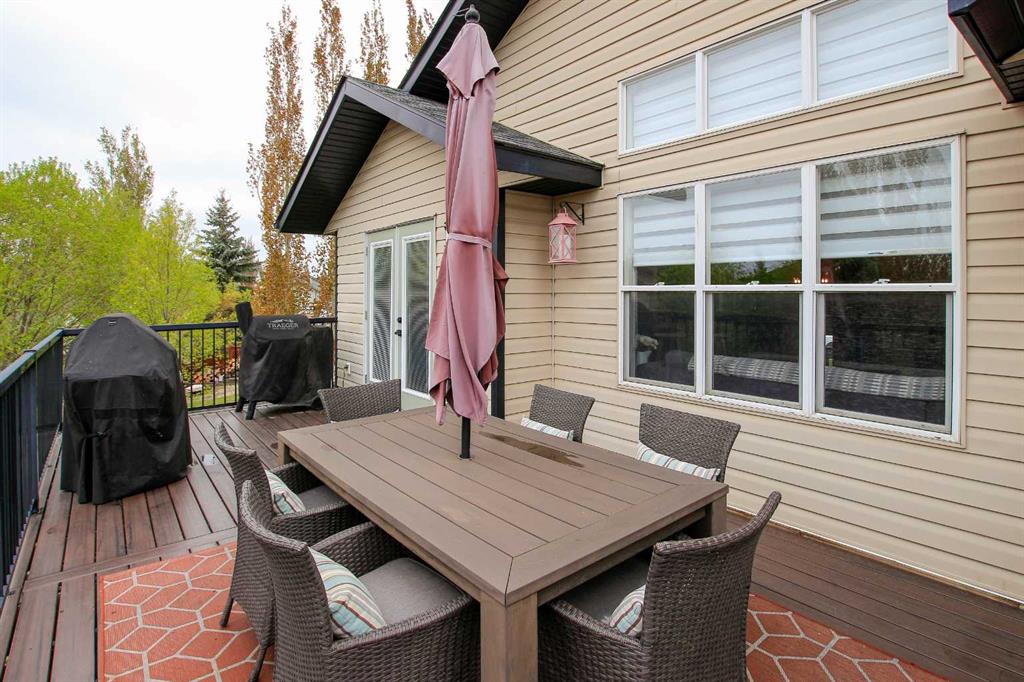 FULLY DEVELOPED 4 BEDROOM, 3 BATHROOM BI-LEVEL ~ LOCATED IN A CLOSE ON A LARGE PIE LOT ~ BEAUTIFULLY LANDSCAPED WEST FACING BACK W/KOI POND ~ Covered front entry welcomes you and leads to a large sun filled foyer with raised ceilings, ample closet space and convenient access to the garage ~ Open concept main floor layout is complemented by high ceilings ~ The living room features raised ceilings and has an oversized west facing window that allows natural light to fill the space ~ The kitchen offers an abundance of dark stained cabinets, granite counter tops, island with a raised eating bar, full tile backsplash and a large walk in pantry ~ Easily host large gatherings in the dining room with garden door access to the west facing deck, featuring composite deck boards and a BBQ gas line ~ The primary bedroom can easily accommodate a king bed plus multiple pieces of furniture, has a large walk in closet with built in shelving and organizers, and offers a spa like ensuite featuring a huge walk in tile shower with two shower heads ~ Second main floor bedroom is conveniently located next to the 4 piece main bathroom ~ The fully finished walkout basement has large above grade windows and offers a large family room with a wet bar, gas fireplace with floor to ceiling tile and a separate entrance leading to the lower covered patio, hot tub (included with the sale) and backyard ~ 2 additional bedrooms are both a generous size and have ample closet space ~ 4 piece bathroom features heated tile floors and an extra deep soaker tub ~ Front load laundry pair, with pedestals, are located in their own room ~ 24' L x 22' W attached garage is insulated, finished with painted drywall, and has a man door to a fenced in dog run and the backyard ~ The sunny west facing backyard is beautifully landscaped with well established trees, shrubs and perennials, plus a large covered patio and hot tub area, a relaxing koi pond with a waterfall next to the stone fire pit, includes a garden shed and is fully fenced with back alley access ~ Located in a key hole close, walking distance to multiple schools, parks, playgrounds, walking trails and with easy access to shopping and all other amenities.