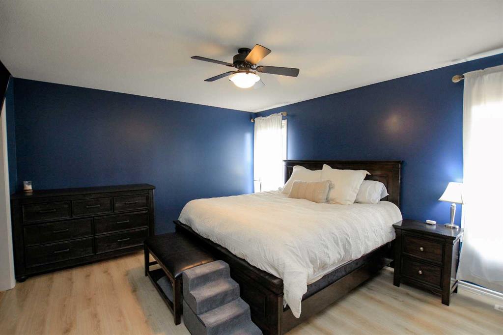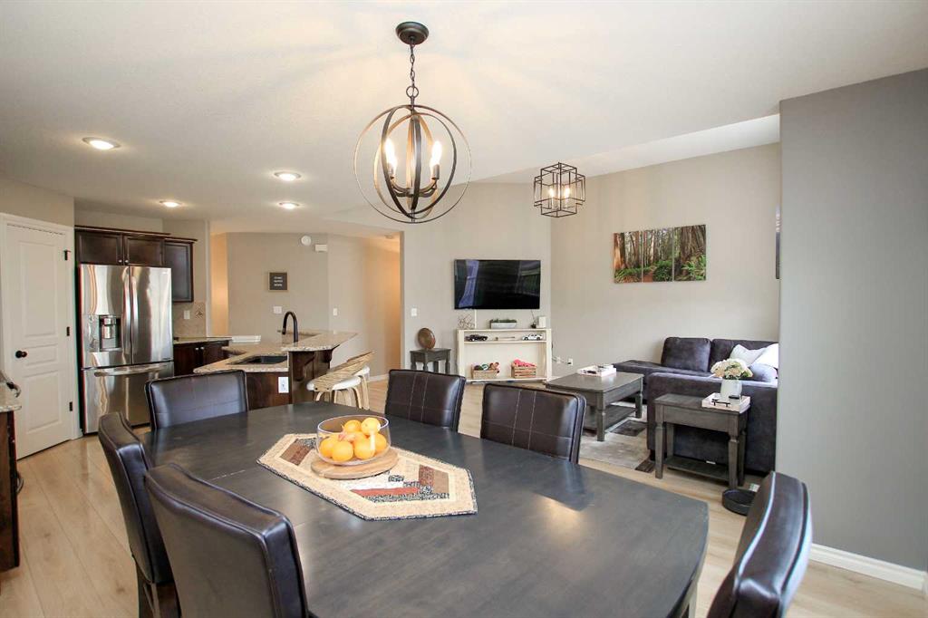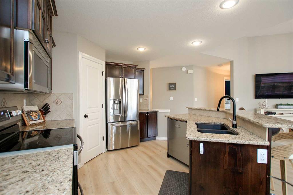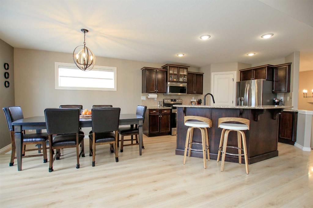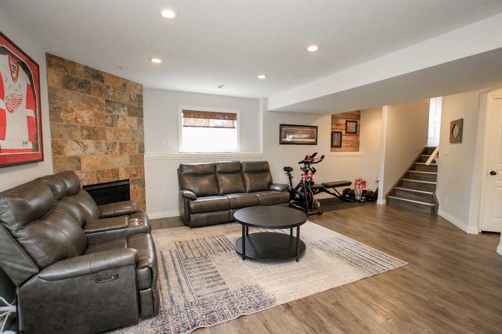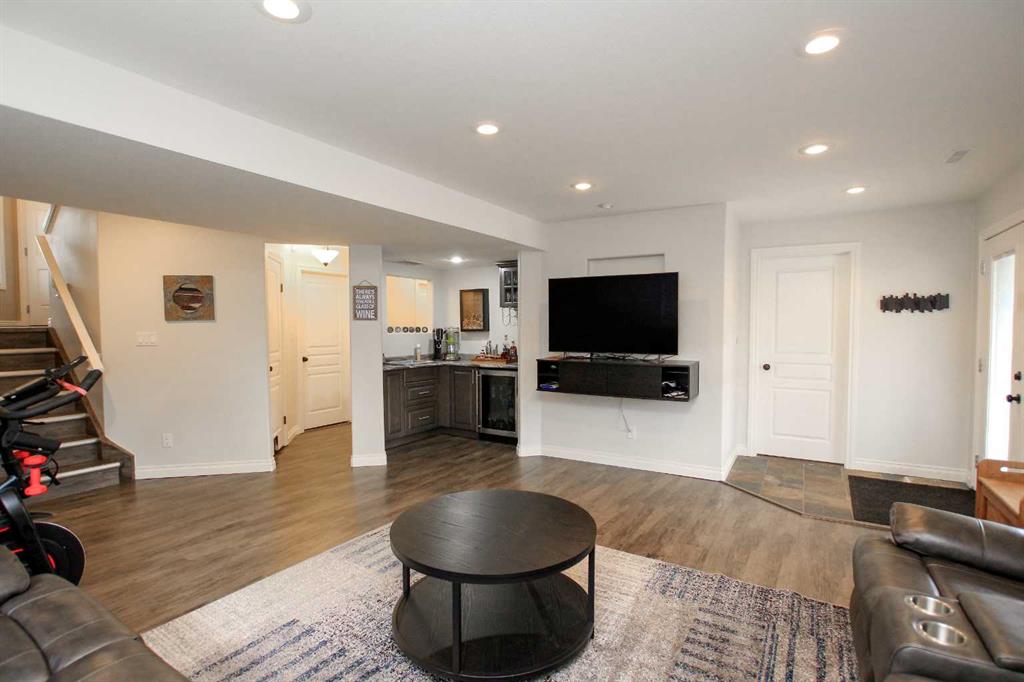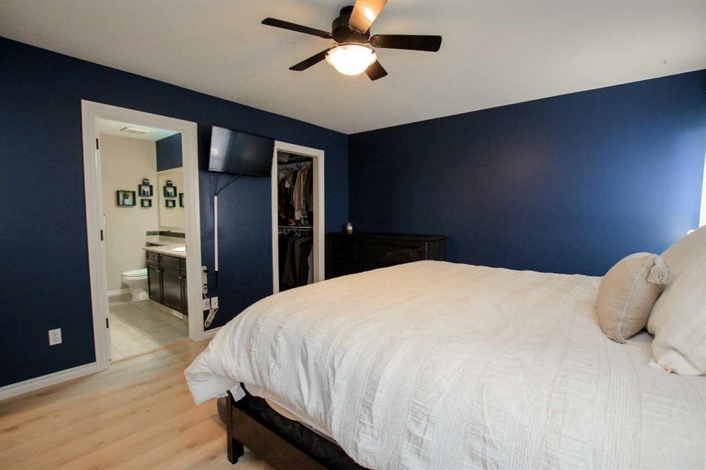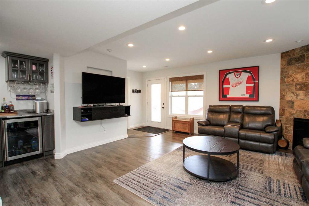 FULLY DEVELOPED 4 BEDROOM, 3 BATHROOM BI-LEVEL ~ LOCATED IN A CLOSE ON A LARGE PIE LOT ~ BEAUTIFULLY LANDSCAPED WEST FACING BACK W/KOI POND ~ Covered front entry welcomes you and leads to a large sun filled foyer with raised ceilings, ample closet space and convenient access to the garage ~ Open concept main floor layout is complemented by high ceilings ~ The living room features raised ceilings and has an oversized west facing window that allows natural light to fill the space ~ The kitchen offers an abundance of dark stained cabinets, granite counter tops, island with a raised eating bar, full tile backsplash and a large walk in pantry ~ Easily host large gatherings in the dining room with garden door access to the west facing deck, featuring composite deck boards and a BBQ gas line ~ The primary bedroom can easily accommodate a king bed plus multiple pieces of furniture, has a large walk in closet with built in shelving and organizers, and offers a spa like ensuite featuring a huge walk in tile shower with two shower heads ~ Second main floor bedroom is conveniently located next to the 4 piece main bathroom ~ The fully finished walkout basement has large above grade windows and offers a large family room with a wet bar, gas fireplace with floor to ceiling tile and a separate entrance leading to the lower covered patio, hot tub (included with the sale) and backyard ~ 2 additional bedrooms are both a generous size and have ample closet space ~ 4 piece bathroom features heated tile floors and an extra deep soaker tub ~ Front load laundry pair, with pedestals, are located in their own room ~ 24' L x 22' W attached garage is insulated, finished with painted drywall, and has a man door to a fenced in dog run and the backyard ~ The sunny west facing backyard is beautifully landscaped with well established trees, shrubs and perennials, plus a large covered patio and hot tub area, a relaxing koi pond with a waterfall next to the stone fire pit, includes a garden shed and is fully fenced with back alley access ~ Located in a key hole close, walking distance to multiple schools, parks, playgrounds, walking trails and with easy access to shopping and all other amenities.
