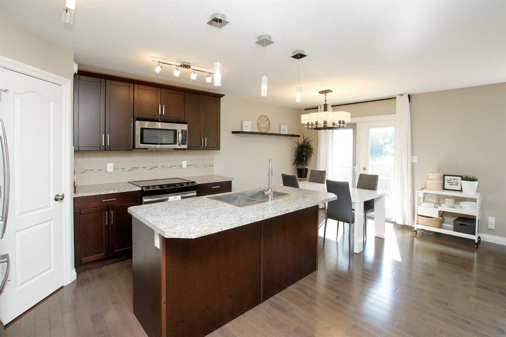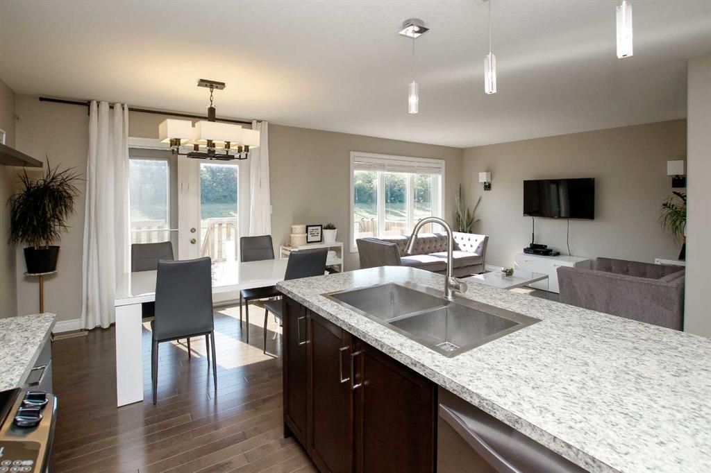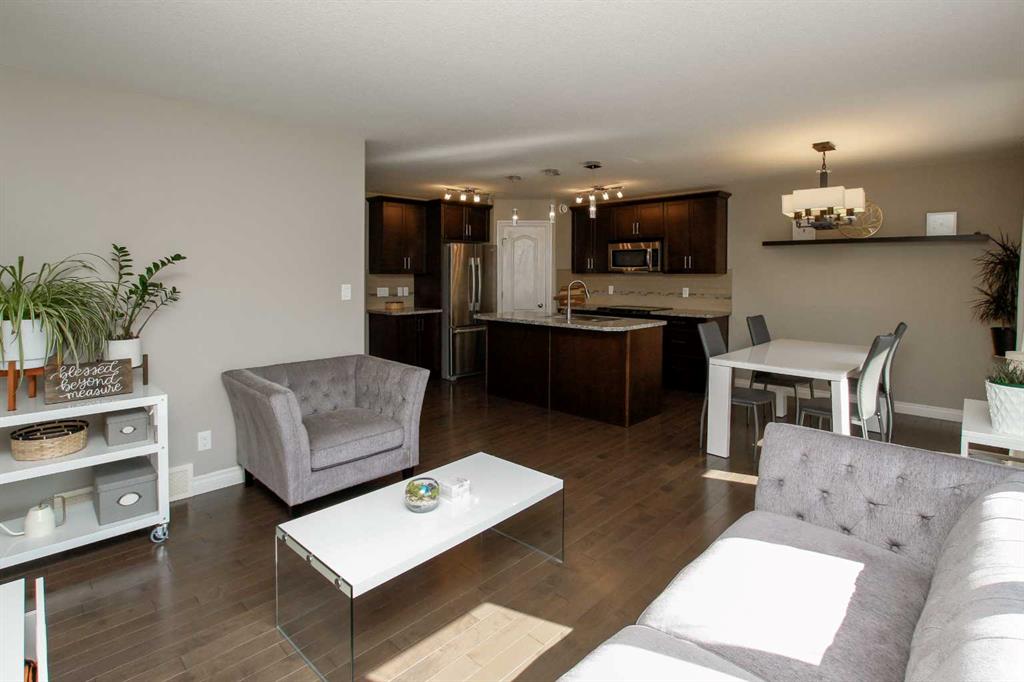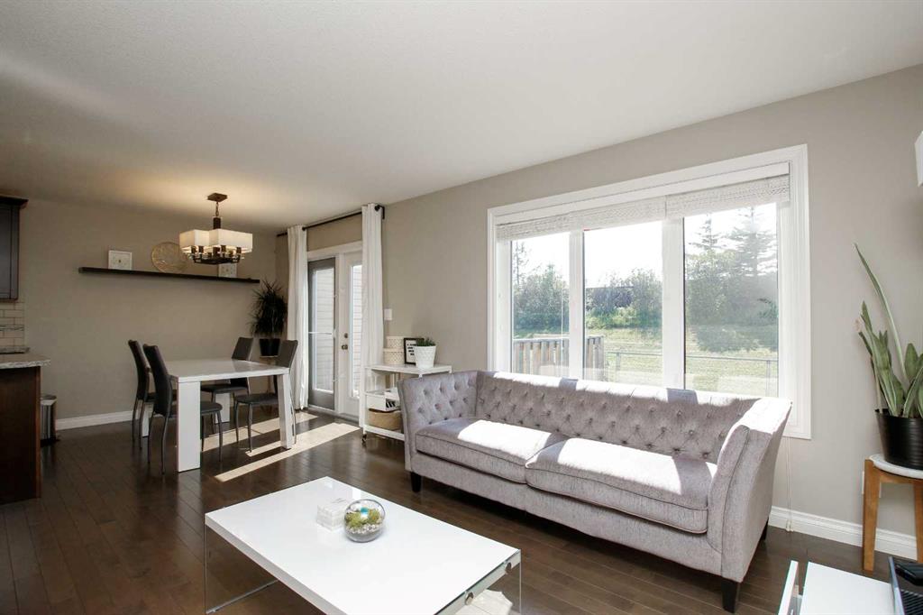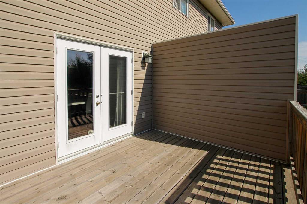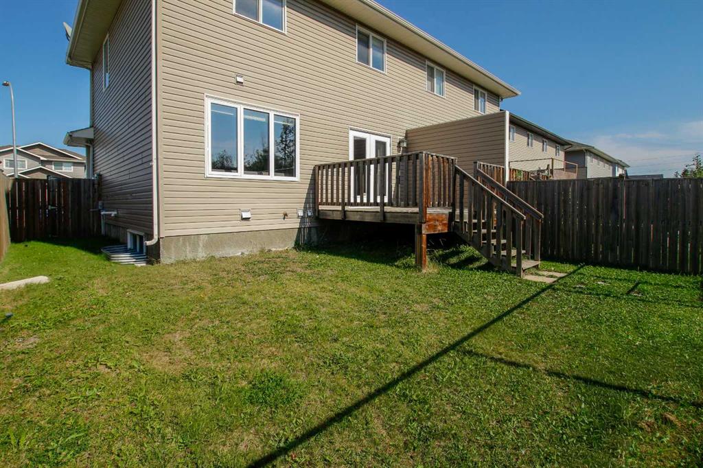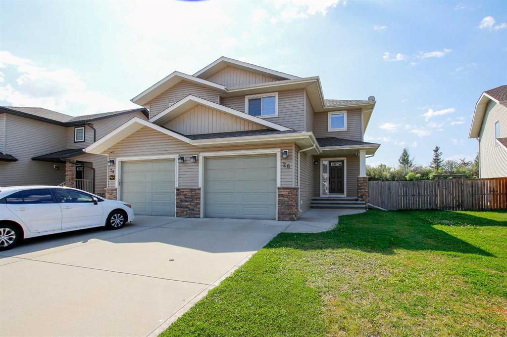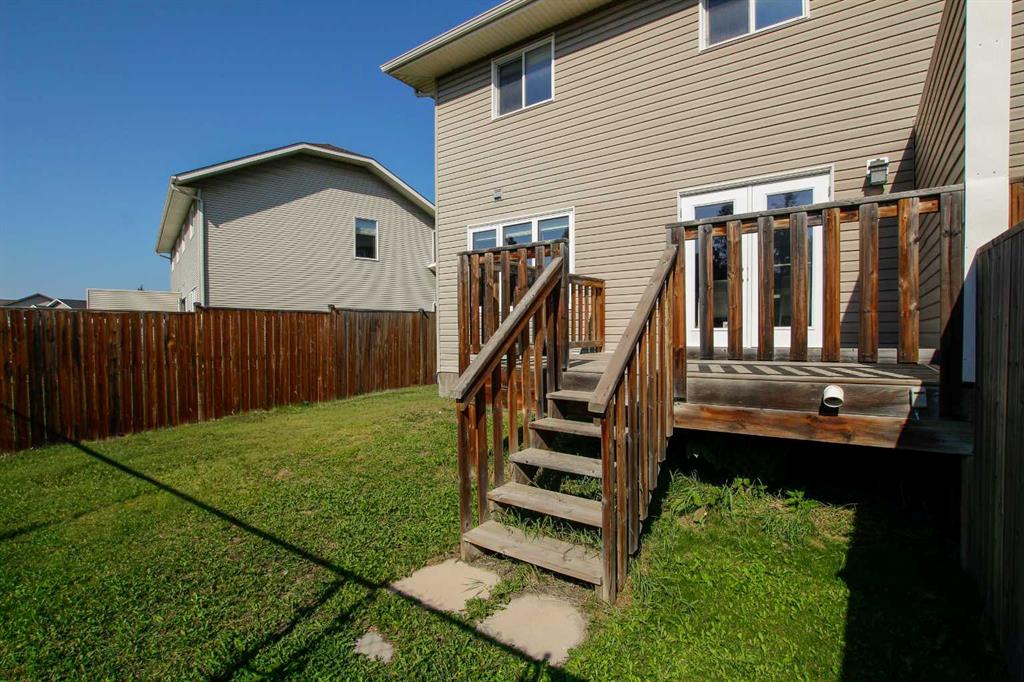 3 BEDROOM, 3 BATHROOM SEMI DETACHED 2 STOREY IN WESTLAKE ~ ATTACHED GARAGE ~ ~ Covered front entry welcomes you to this well cared for home loaded with upgrades ~ Spacious foyer with a large coat closet and convenient access to the attached garage ~ The open concept layout is complemented by 9ft. ceilings and hardwood flooring that creates a feeling of spaciousness ~ The living room features a large west facing picture window that overlooks the backyard and allows for natural light to fill the space ~ The kitchen offers a functional layout with plenty of dark stained cabinets, ample counter space including an island with an eating bar, full tile backsplash and a walk in corner pantry ~ The dining room offers sliding door access to the west facing deck with a privacy wall, and backyard with no neighbours behind ~ 2 piece main floor bathroom ~ The primary bedroom offers plenty of space for a king size bed and furniture, plus a spacious walk in closet with built in organizers, and an ensuite featuring a walk in steam shower ~ 2 additional bedrooms are both a generous size with ample closet space and are conveniently located next to a 4 piece bathroom ~ Stackable front load laundry pair is located on the upper level ~ The basement has high ceilings, bathroom plumbing roughed in, and awaits your future development with plenty of space for a family room, full bathroom and a bedroom ~ Underfloor heat and central vacuum are roughed in ~ The west facing backyard with no neighbours behind is landscaped and fully fenced ~ 21' long x 13'6" wide attached garage is insulated and finished with paint ready drywall ~ Located close to all amenities including; shopping, dining, Red Deer Poly, multiple schools, parks, trail system, and Heritage Ranch with easy access to downtown, the hospital and highway access ~ Pride of ownership is evident in this well cared for home.