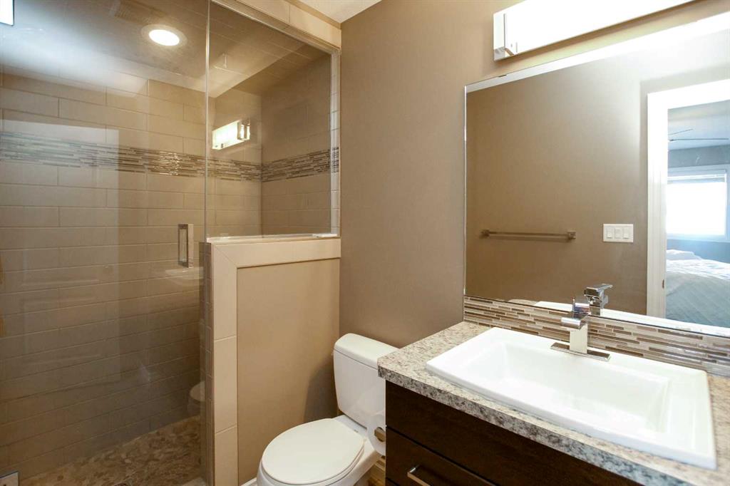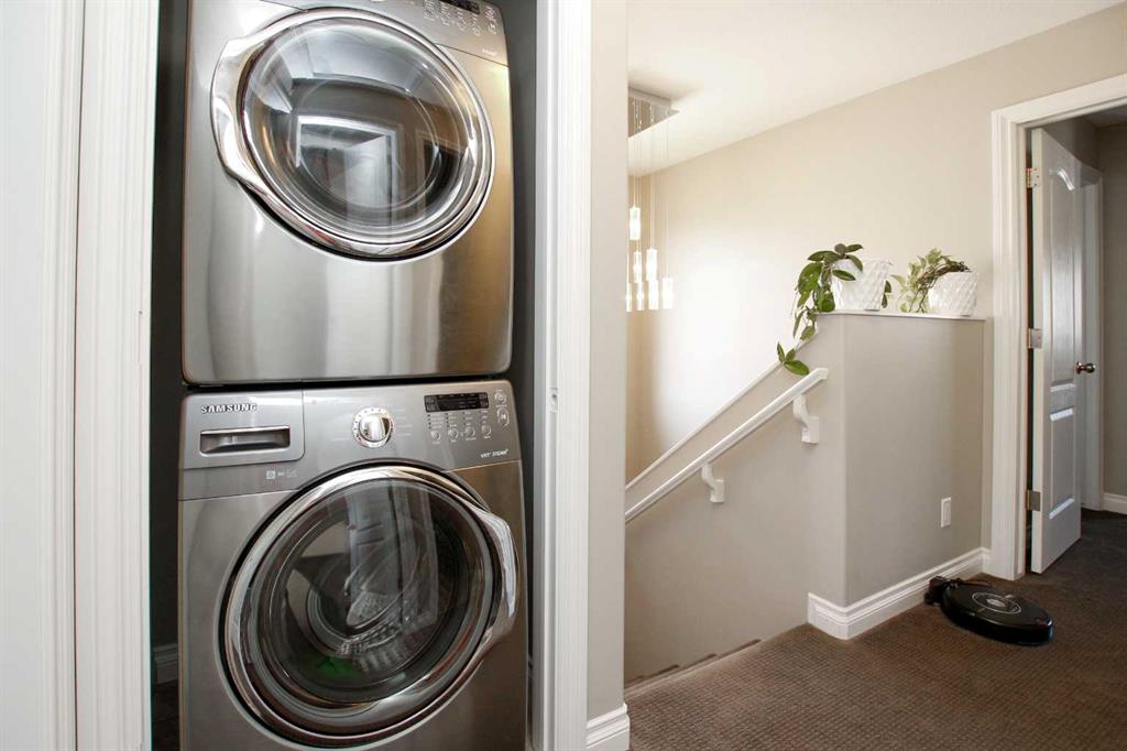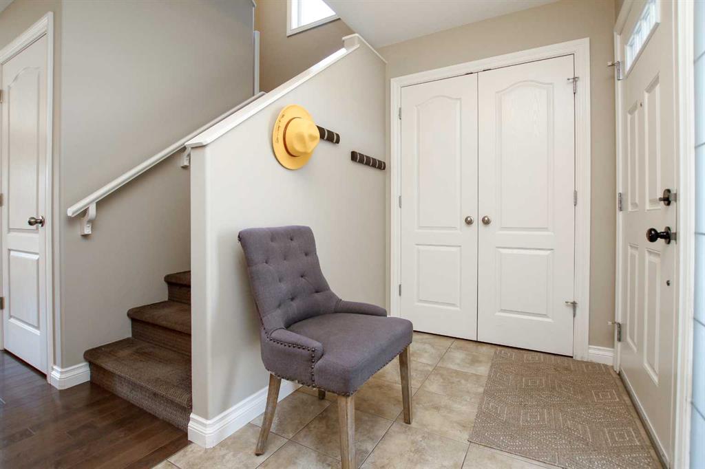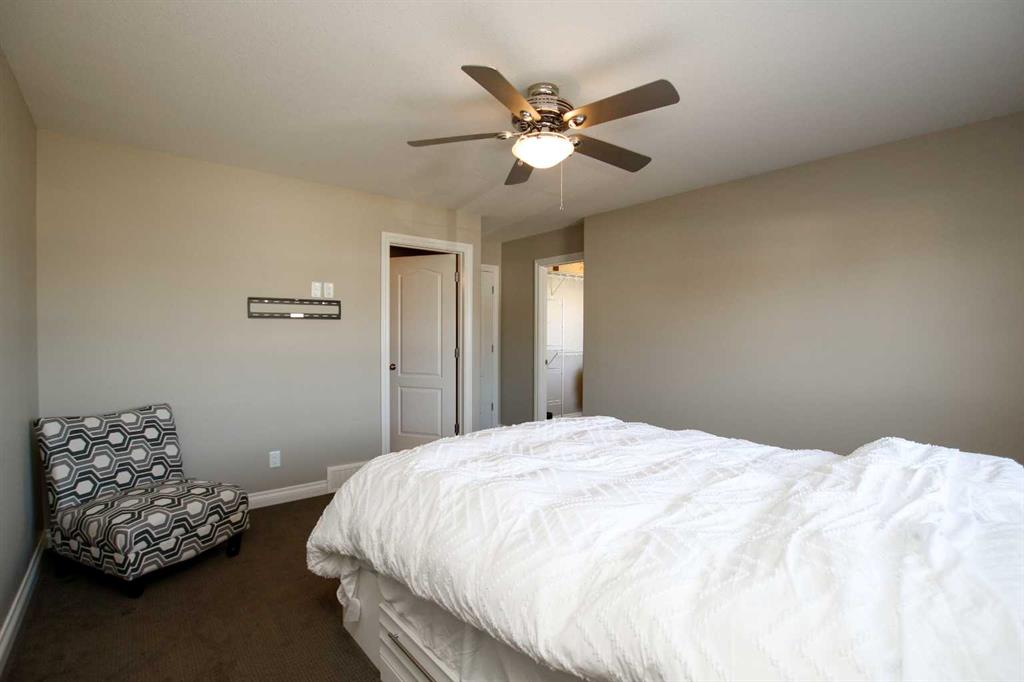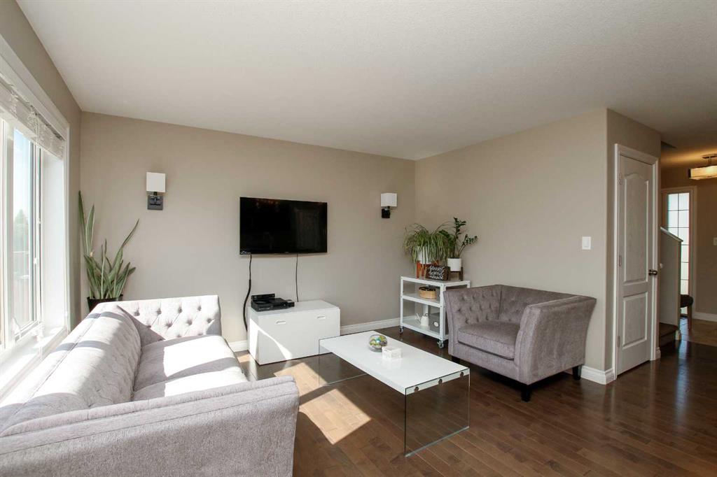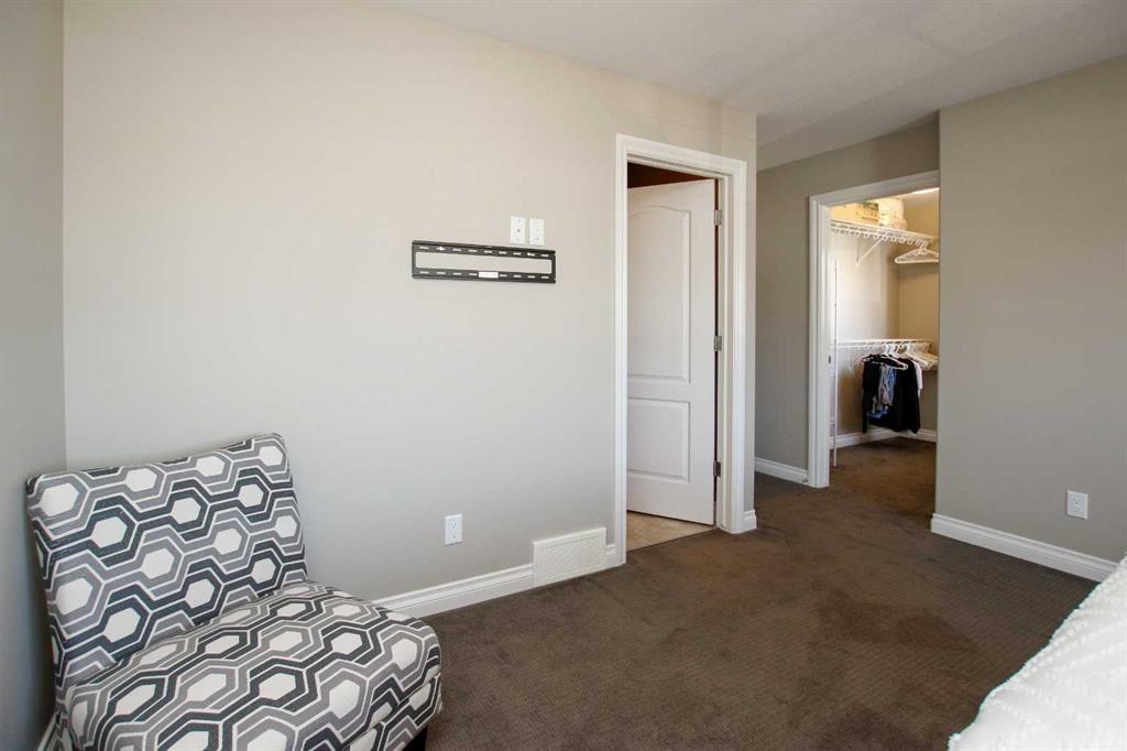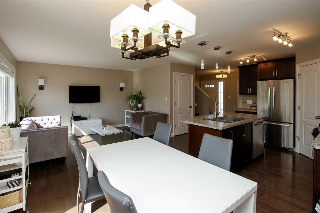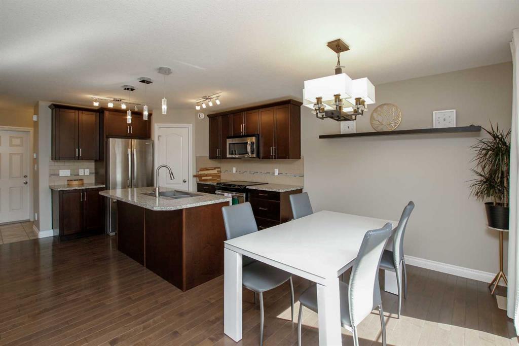 3 BEDROOM, 3 BATHROOM SEMI DETACHED 2 STOREY IN WESTLAKE ~ ATTACHED GARAGE ~ ~ Covered front entry welcomes you to this well cared for home loaded with upgrades ~ Spacious foyer with a large coat closet and convenient access to the attached garage ~ The open concept layout is complemented by 9ft. ceilings and hardwood flooring that creates a feeling of spaciousness ~ The living room features a large west facing picture window that overlooks the backyard and allows for natural light to fill the space ~ The kitchen offers a functional layout with plenty of dark stained cabinets, ample counter space including an island with an eating bar, full tile backsplash and a walk in corner pantry ~ The dining room offers sliding door access to the west facing deck with a privacy wall, and backyard with no neighbours behind ~ 2 piece main floor bathroom ~ The primary bedroom offers plenty of space for a king size bed and furniture, plus a spacious walk in closet with built in organizers, and an ensuite featuring a walk in steam shower ~ 2 additional bedrooms are both a generous size with ample closet space and are conveniently located next to a 4 piece bathroom ~ Stackable front load laundry pair is located on the upper level ~ The basement has high ceilings, bathroom plumbing roughed in, and awaits your future development with plenty of space for a family room, full bathroom and a bedroom ~ Underfloor heat and central vacuum are roughed in ~ The west facing backyard with no neighbours behind is landscaped and fully fenced ~ 21' long x 13'6" wide attached garage is insulated and finished with paint ready drywall ~ Located close to all amenities including; shopping, dining, Red Deer Poly, multiple schools, parks, trail system, and Heritage Ranch with easy access to downtown, the hospital and highway access ~ Pride of ownership is evident in this well cared for home.