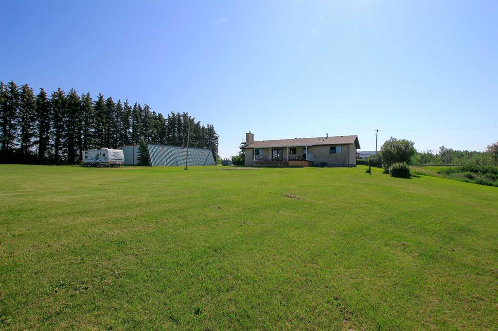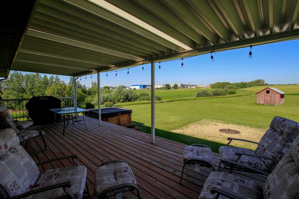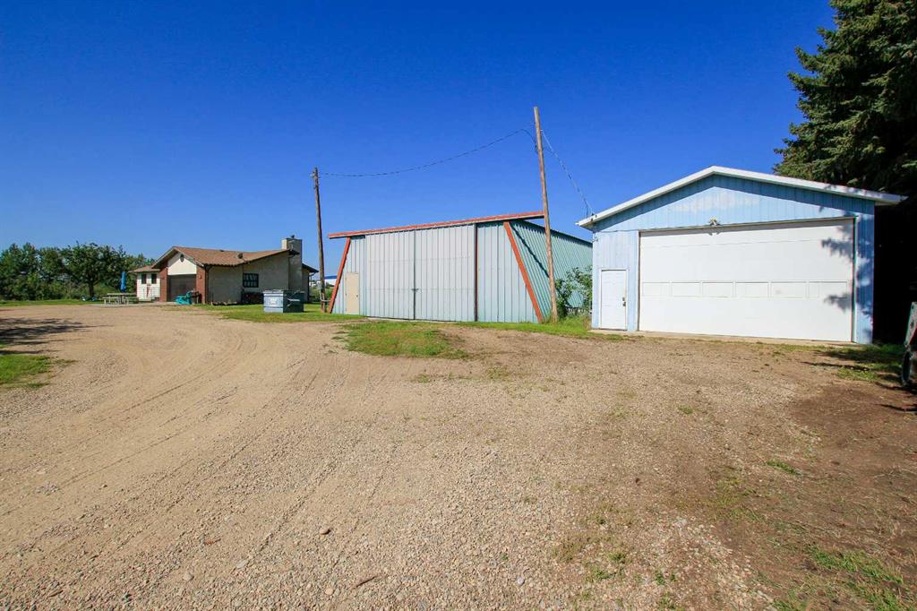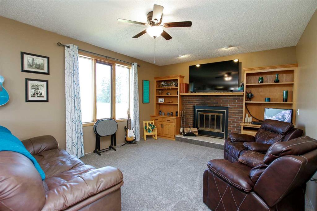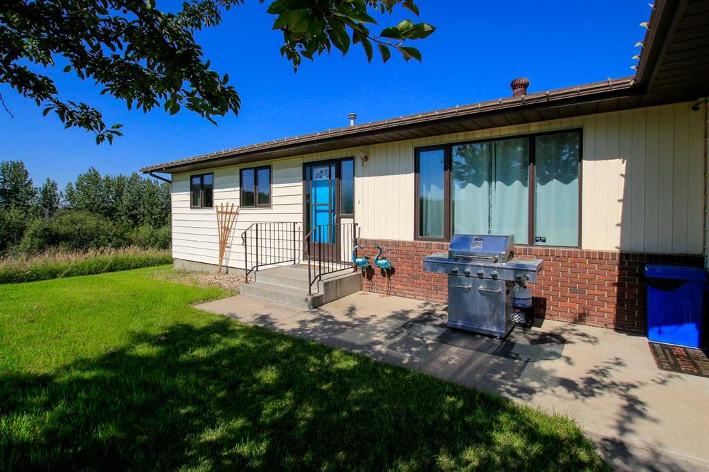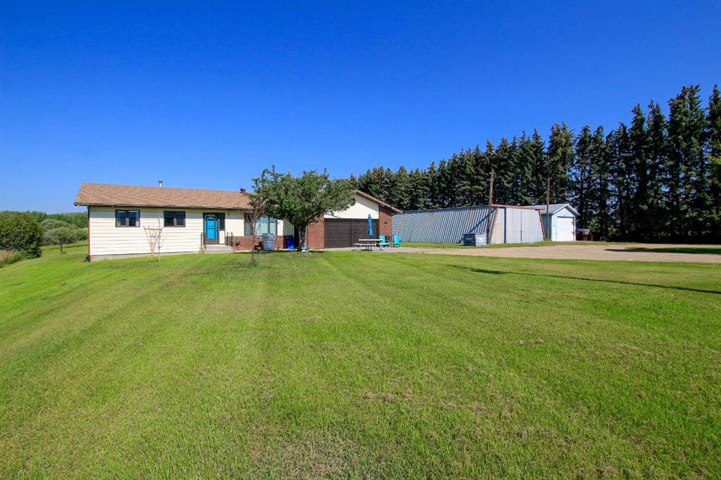 IMMEDIATE POSSESSION AVAILABLE ~ FULLY DEVELOPED 3 BEDROOM, 3 BATHROOM BUNGALOW ON 3.1 ACRES JUST MINUTES WEST OF RED DEER W/PAVEMENT TO THE DRIVEWAY ~ HEATED DOUBLE ATTACHED GARAGE, HEATED 44' x 24' SHOP & 60' x 40' QUONSET W/HOIST ~ Pride of ownership is evident in this well cared for home with many recent upgrades and renovations including: High efficiency furnace (2010); plumbing lines, copper wiring, hot water tank, Asphalt shingles (2015), water filtration system (2018); rebuilt deck (2020); WETT certification for wood burning fireplace (2021); professionally painted walls and epoxy flooring in attached garage (2022); electrical panel replaced, salt water hot tub (2023); vinyl plank flooring, carpet, paint, asbestos removed via professional abatement (2025) ~ Large u-shaped driveway with two entry points and a landscaped front yard bordering Sylvan Creek welcome you ~ A spacious entry opens to the living room that features a large picture window overlooking the front yard ~ The u-shaped kitchen offers a functional layout with plenty of light stained oak cabinets, full tile backsplash, ample counter space and a west facing window above the sink with views of the deck and yard ~ Easily host gatherings in the dining room with sliding patio doors to the covered west facing deck with unobstructed country views ~ The family room has large windows overlooking the backyard, built in cabinets with display shelving, and a cozy wood burning fireplace with a brick surround, raised hearth and a mantle ~ The primary bedroom can easily accommodate a king size bed, has ample closet space ~ Convenient cheater door from the primary bedroom leads to a 2 piece bathroom with easy access to the covered deck and hot tub ~ Second main floor bedroom is also a generous size ~ 4 piece main bathroom ~ Laundry is located in it's own room with built in cabinets and a large window that fills the space with natural light ~ The fully finished basement with underfloor heat. offers tons of additional living space with two large family rooms, a 3 piece bathroom with a walk in shower, 3rd bedroom, a large utility room and ample storage space ~ Other great features include; Central air conditioning, water softener, water filtration system, reverse osmosis ~ The double attached garage has been professionally finished and transformed into a Harley Davidson themed man cave with a pool table and TV wall mounts ~ outside there is a large covered deck with unobstructed views, a salt water hot tub, and tons of outdoor space with over 3.1 acres with rows of mature trees, a fire pit area and RV hook ups ~ 60' x 40' quonset with an engine hoist and a 44' x 24' heated shop offer tons of additional parking ~ Located just minutes west of Red Deer on Burnt Lake Trail, with pavement to the driveway