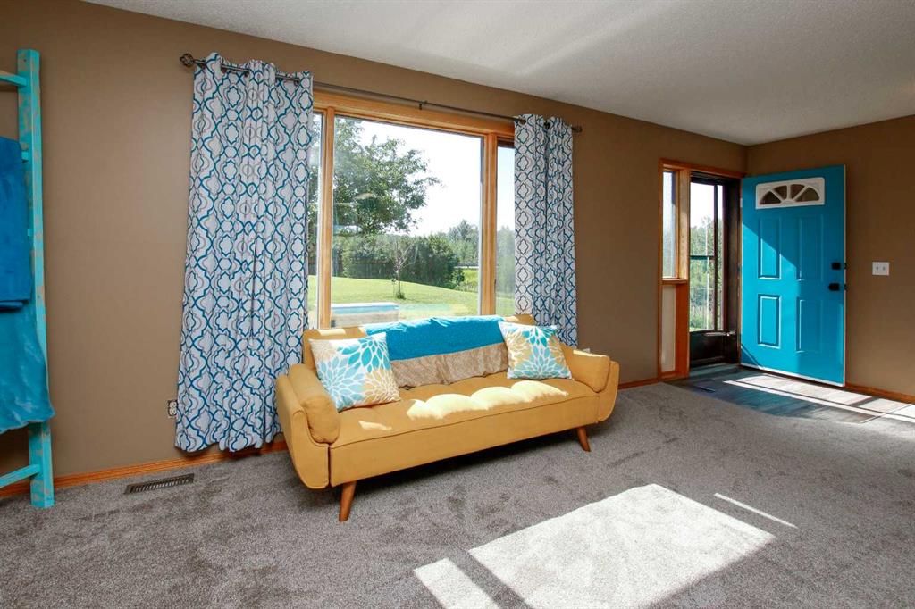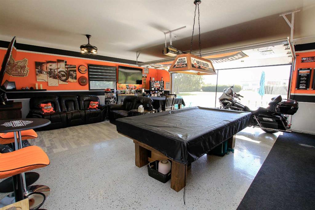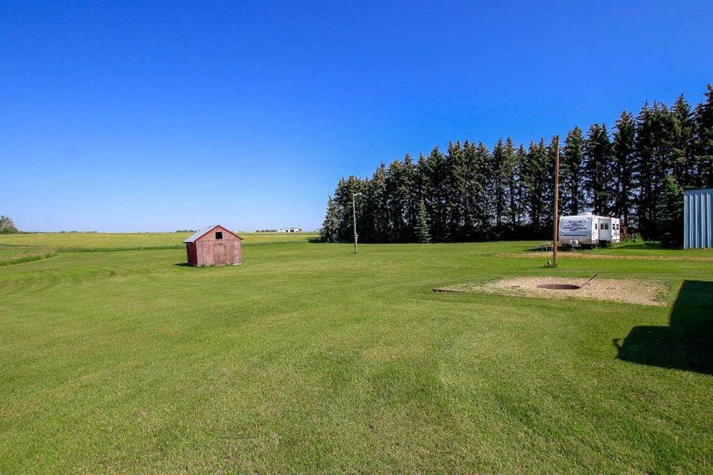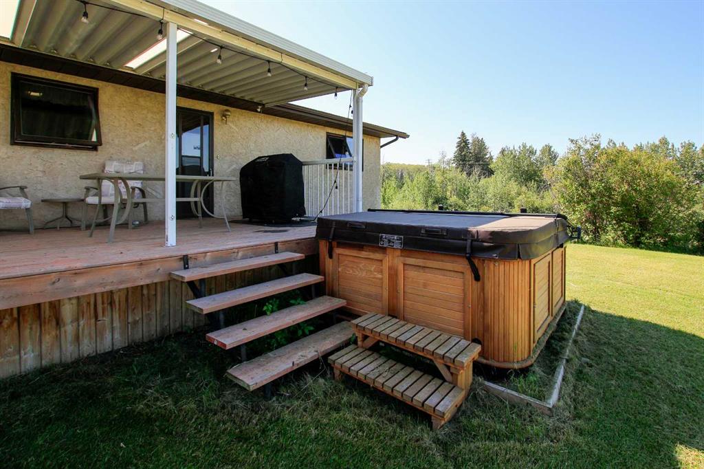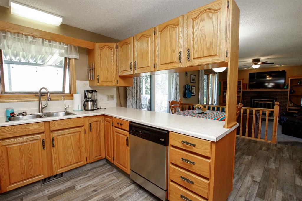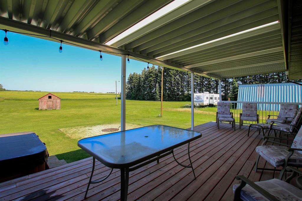 IMMEDIATE POSSESSION AVAILABLE ~ FULLY DEVELOPED 3 BEDROOM, 3 BATHROOM BUNGALOW ON 3.1 ACRES JUST MINUTES WEST OF RED DEER W/PAVEMENT TO THE DRIVEWAY ~ HEATED DOUBLE ATTACHED GARAGE, HEATED 44' x 24' SHOP & 60' x 40' QUONSET W/HOIST ~ Pride of ownership is evident in this well cared for home with many recent upgrades and renovations including: High efficiency furnace (2010); plumbing lines, copper wiring, hot water tank, Asphalt shingles (2015), water filtration system (2018); rebuilt deck (2020); WETT certification for wood burning fireplace (2021); professionally painted walls and epoxy flooring in attached garage (2022); electrical panel replaced, salt water hot tub (2023); vinyl plank flooring, carpet, paint, asbestos removed via professional abatement (2025) ~ Large u-shaped driveway with two entry points and a landscaped front yard bordering Sylvan Creek welcome you ~ A spacious entry opens to the living room that features a large picture window overlooking the front yard ~ The u-shaped kitchen offers a functional layout with plenty of light stained oak cabinets, full tile backsplash, ample counter space and a west facing window above the sink with views of the deck and yard ~ Easily host gatherings in the dining room with sliding patio doors to the covered west facing deck with unobstructed country views ~ The family room has large windows overlooking the backyard, built in cabinets with display shelving, and a cozy wood burning fireplace with a brick surround, raised hearth and a mantle ~ The primary bedroom can easily accommodate a king size bed, has ample closet space ~ Convenient cheater door from the primary bedroom leads to a 2 piece bathroom with easy access to the covered deck and hot tub ~ Second main floor bedroom is also a generous size ~ 4 piece main bathroom ~ Laundry is located in it's own room with built in cabinets and a large window that fills the space with natural light ~ The fully finished basement with underfloor heat. offers tons of additional living space with two large family rooms, a 3 piece bathroom with a walk in shower, 3rd bedroom, a large utility room and ample storage space ~ Other great features include; Central air conditioning, water softener, water filtration system, reverse osmosis ~ The double attached garage has been professionally finished and transformed into a Harley Davidson themed man cave with a pool table and TV wall mounts ~ outside there is a large covered deck with unobstructed views, a salt water hot tub, and tons of outdoor space with over 3.1 acres with rows of mature trees, a fire pit area and RV hook ups ~ 60' x 40' quonset with an engine hoist and a 44' x 24' heated shop offer tons of additional parking ~ Located just minutes west of Red Deer on Burnt Lake Trail, with pavement to the driveway