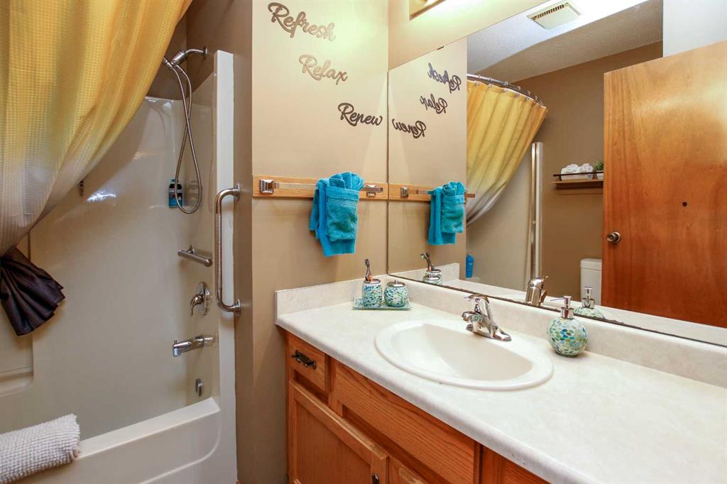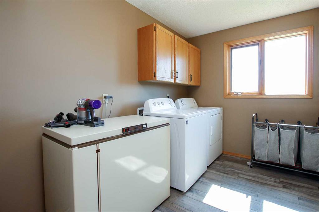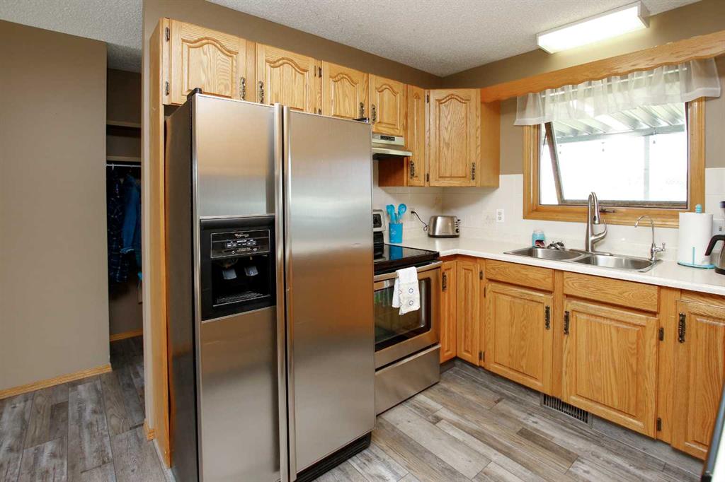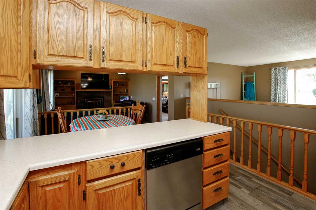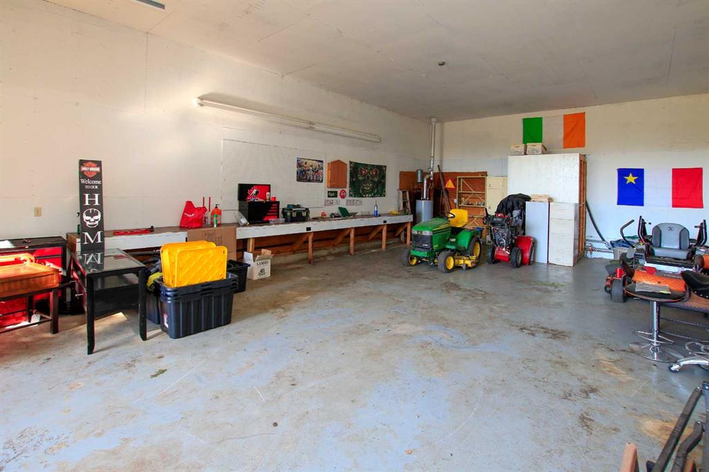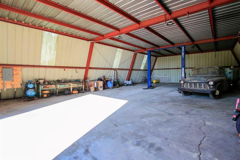 IMMEDIATE POSSESSION AVAILABLE ~ FULLY DEVELOPED 3 BEDROOM, 3 BATHROOM BUNGALOW ON 3.1 ACRES JUST MINUTES WEST OF RED DEER W/PAVEMENT TO THE DRIVEWAY ~ HEATED DOUBLE ATTACHED GARAGE, HEATED 44' x 24' SHOP & 60' x 40' QUONSET W/HOIST ~ Pride of ownership is evident in this well cared for home with many recent upgrades and renovations including: High efficiency furnace (2010); plumbing lines, copper wiring, hot water tank, Asphalt shingles (2015), water filtration system (2018); rebuilt deck (2020); WETT certification for wood burning fireplace (2021); professionally painted walls and epoxy flooring in attached garage (2022); electrical panel replaced, salt water hot tub (2023); vinyl plank flooring, carpet, paint, asbestos removed via professional abatement (2025) ~ Large u-shaped driveway with two entry points and a landscaped front yard bordering Sylvan Creek welcome you ~ A spacious entry opens to the living room that features a large picture window overlooking the front yard ~ The u-shaped kitchen offers a functional layout with plenty of light stained oak cabinets, full tile backsplash, ample counter space and a west facing window above the sink with views of the deck and yard ~ Easily host gatherings in the dining room with sliding patio doors to the covered west facing deck with unobstructed country views ~ The family room has large windows overlooking the backyard, built in cabinets with display shelving, and a cozy wood burning fireplace with a brick surround, raised hearth and a mantle ~ The primary bedroom can easily accommodate a king size bed, has ample closet space ~ Convenient cheater door from the primary bedroom leads to a 2 piece bathroom with easy access to the covered deck and hot tub ~ Second main floor bedroom is also a generous size ~ 4 piece main bathroom ~ Laundry is located in it's own room with built in cabinets and a large window that fills the space with natural light ~ The fully finished basement with underfloor heat. offers tons of additional living space with two large family rooms, a 3 piece bathroom with a walk in shower, 3rd bedroom, a large utility room and ample storage space ~ Other great features include; Central air conditioning, water softener, water filtration system, reverse osmosis ~ The double attached garage has been professionally finished and transformed into a Harley Davidson themed man cave with a pool table and TV wall mounts ~ outside there is a large covered deck with unobstructed views, a salt water hot tub, and tons of outdoor space with over 3.1 acres with rows of mature trees, a fire pit area and RV hook ups ~ 60' x 40' quonset with an engine hoist and a 44' x 24' heated shop offer tons of additional parking ~ Located just minutes west of Red Deer on Burnt Lake Trail, with pavement to the driveway
