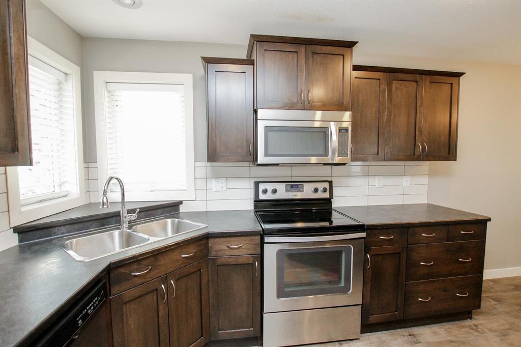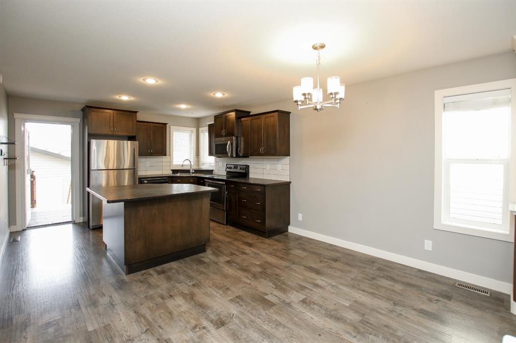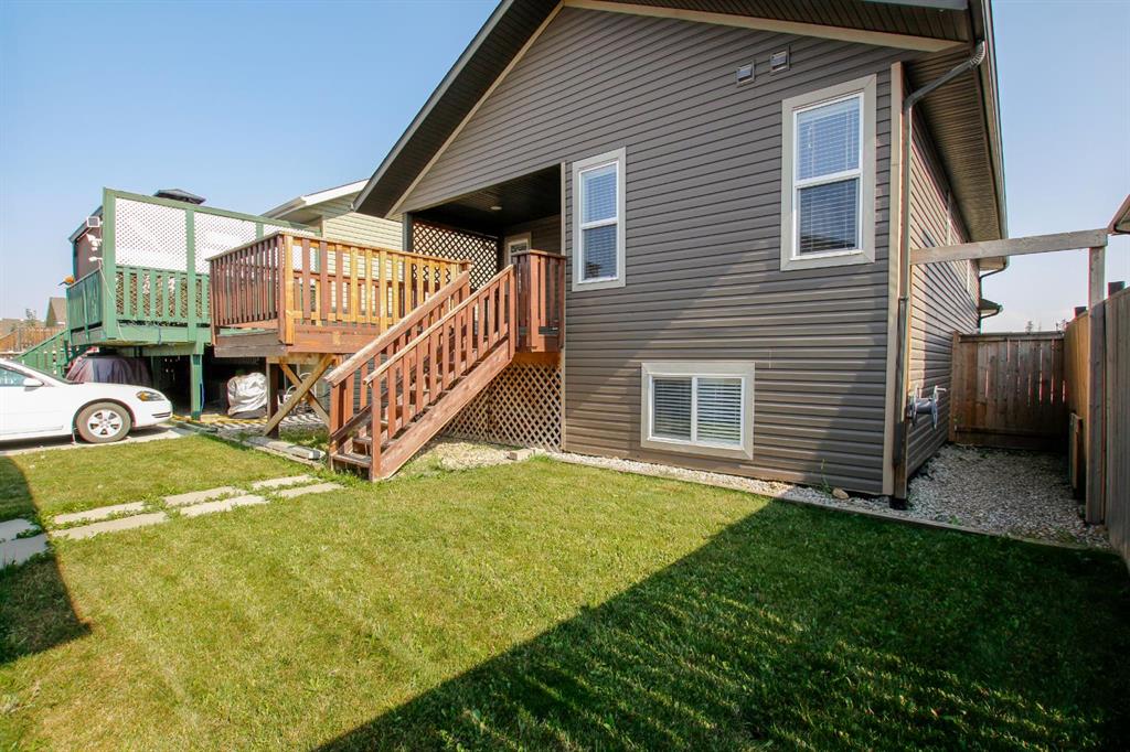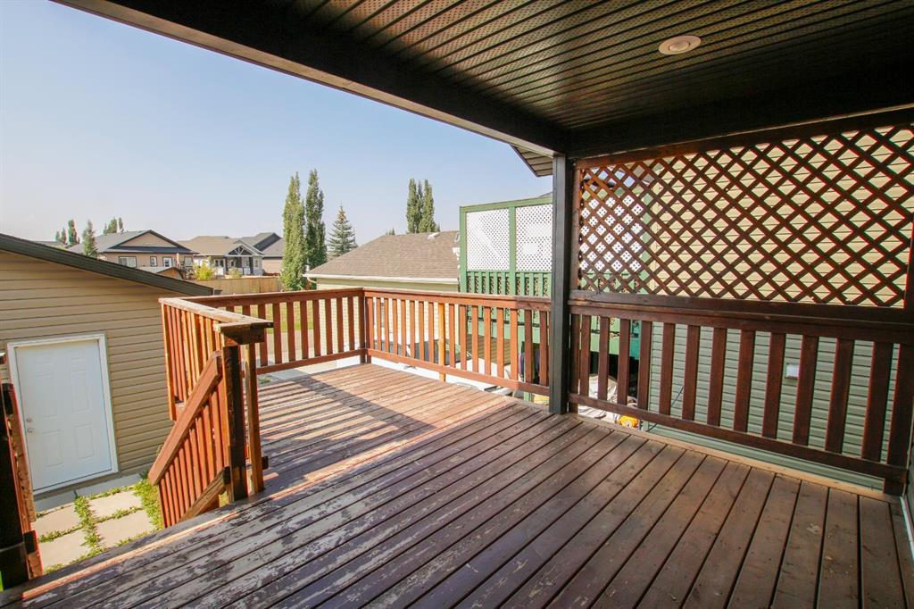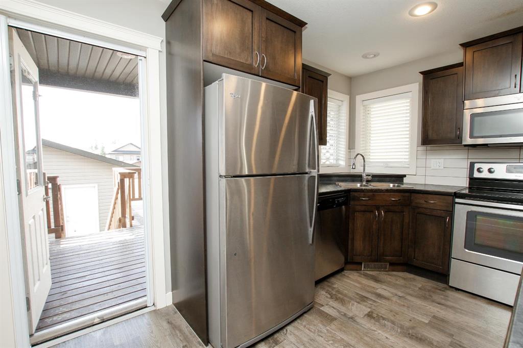 IMMEDIATE POSSESSION AVAILABLE ~ FULLY DEVELOPED 3 BEDROOM, 3 BATHROOM BI-LEVEL IN RYDERS RIDGE ~ WEST FACING BACKYARD THAT BACKS ONTO A WALKING PATH ~ DOUBLE DETACHED GARAGE, REAR PARKING PAD W/PAVED BACK ALLEY ~ Covered front entry welcomes you and leads to the bright and welcoming foyer with tile floors, high ceilings and a spacious coat closet ~ Open staircase leads to the living room that features vaulted ceilings and a large picture window that allows natural light to fill the space ~ Stylish pillars separate the dining room, where you can easily host large gatherings ~ The kitchen offers a functional layout with plenty of dark stained cabinets, a large unobstructed island with an eating bar, full tile backsplash, windows above the sink that overlook the backyard and stainless steel appliances ~ Garden door access leads to a partially covered west facing deck with privacy panels and enclosed storage below ~ The primary bedroom can easily accommodate a king size bed, has a walk in closet with built in organizers and a 3 piece ensuite ~ 2nd main floor bedroom is also a generous size with ample closet space, and is conveniently located next to the 4 piece main bathroom ~ The full finished basement has large above grade windows and offers tons of additional living space including a huge family room, oversized bedroom with space for a sitting area, 3 piece bathroom with a walk in tile shower, laundry and space for storage ~ Other great features include; Central vacuum with attachments, roughed in underfloor heat, potential for a 4th bedroom ~ The sunny west facing backyard is landscaped, partially fenced, has enclosed storage below the deck, and backs onto a green belt with a walking trail ~ Double detached garage and a rear parking pad with room for an RV or toys, and a paved back alley ~ Located close to schools, multiple shopping plazas with all amenities, walking trails, and parks with easy access to the highway ~ This move in ready home is available for immediate possession!
