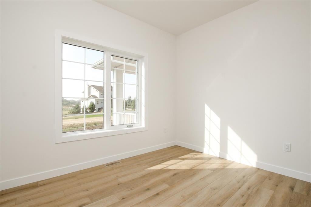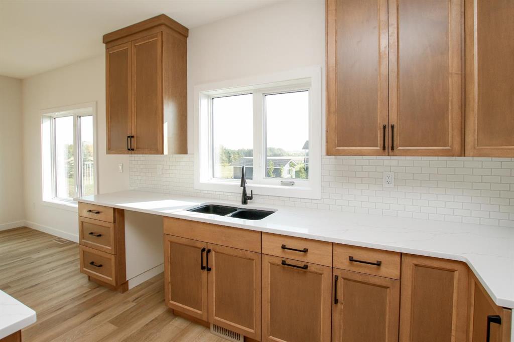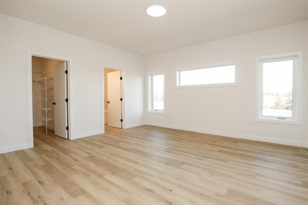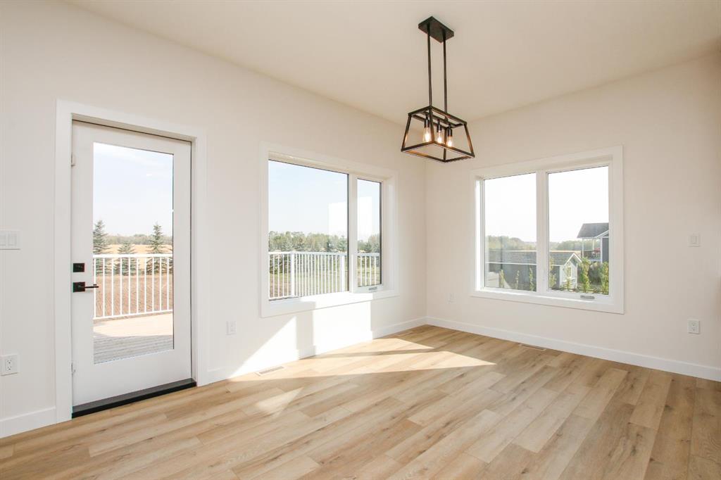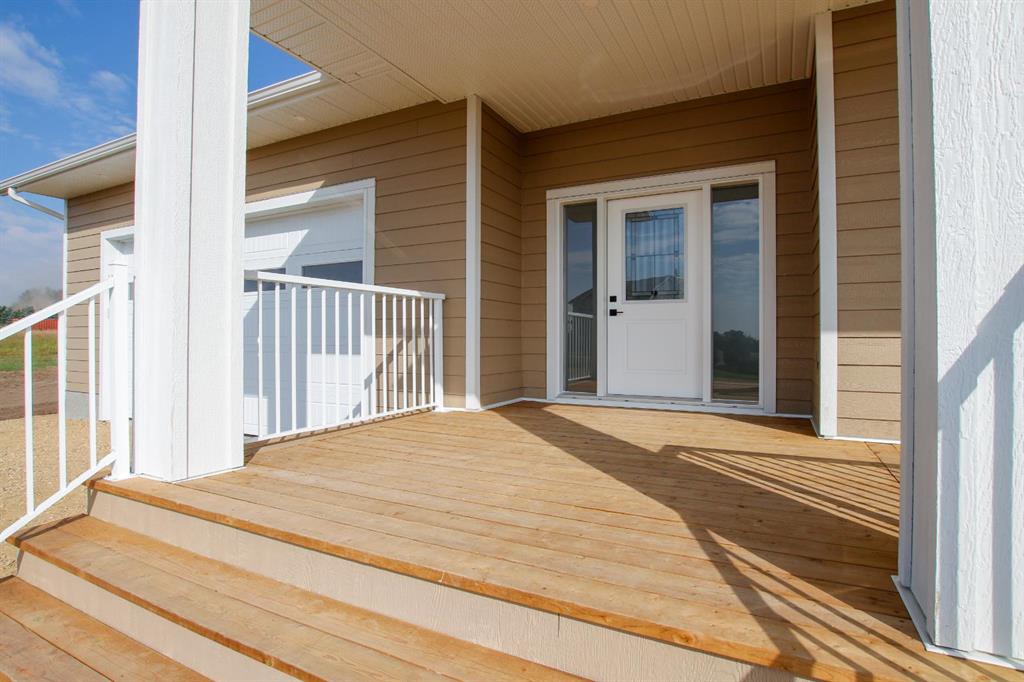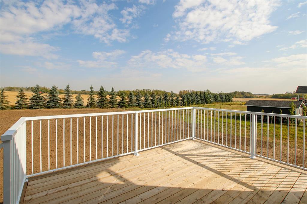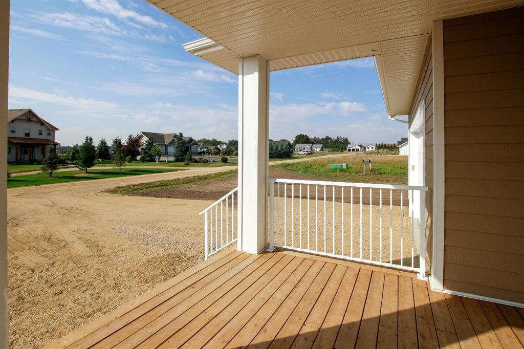 BRAND NEW BUNGALOW LOADED WITH UPGRADES THROUGHOUT ~ LOCATED ON 1 ACRE IN COUNTRY RIDGE ESTATES ~ IMMEDIATE POSSESSION AND MOVE IN READY ~ Durable composite siding, and a covered front veranda spanning over 22' wide create eye catching curb appeal, and welcome you to this brand new home ~ The welcoming foyer has high ceilings, vinyl plank flooring and convenient access to the attached garage ~ The open concept main floor layout is complemented by high ceilings, durable, stylish vinyl plank flooring, and an abundance of large windows that fill the space with natural light ~ The living room is centred by a cozy fireplace with a mantle and wiring for your TV ~ The kitchen is beautifully finished with custom built, warm stained cabinets, full tile backsplash, tons of quartz counter space including an island with an eating bar, undermount sink with a window above, and a wall pantry ~ Easily host large gatherings in the dining room that's filled with natural light from the large windows with country views ~ A garden door leads to a 13' x 12' deck with aluminum railings, that overlooks the backyard and has more great country views ~ More large windows in the king size primary bedroom that features a spacious walk in closet with built in organizers, and 5 piece ensuite offering dual sinks, a 6' soaker tub, and walk in shower ~ 2 additional bedrooms are both a generous size with ample closet space and large windows ~ 4 piece bathroom has an extra deep soaker tub with a tile surround ~ Centrally located main floor laundry hook ups, with additional hookups in the basement ~ The basement has large above grade windows, roughed in underfloor heat, a framed bathroom with plumbing roughed in, framed laundry room, utility room, and plenty of space for a large family room plus additional bedrooms ~ 26' L x 24' W double attached garage is insulated, finished with painted drywall, has over 12' ceilings, floor drain and a man door to the side/backyard ~ Located on 1 acre of land with plenty of space and backing on to a row of mature trees, a walking trail and farm land ~ School bus stop just steps from the front door ~ Ideally situated just minutes west of Ponoka with quick access to Highway QEII ~ This property offers the peace of country living without sacrificing in town convenience ~ Immediate possession and move in ready!!