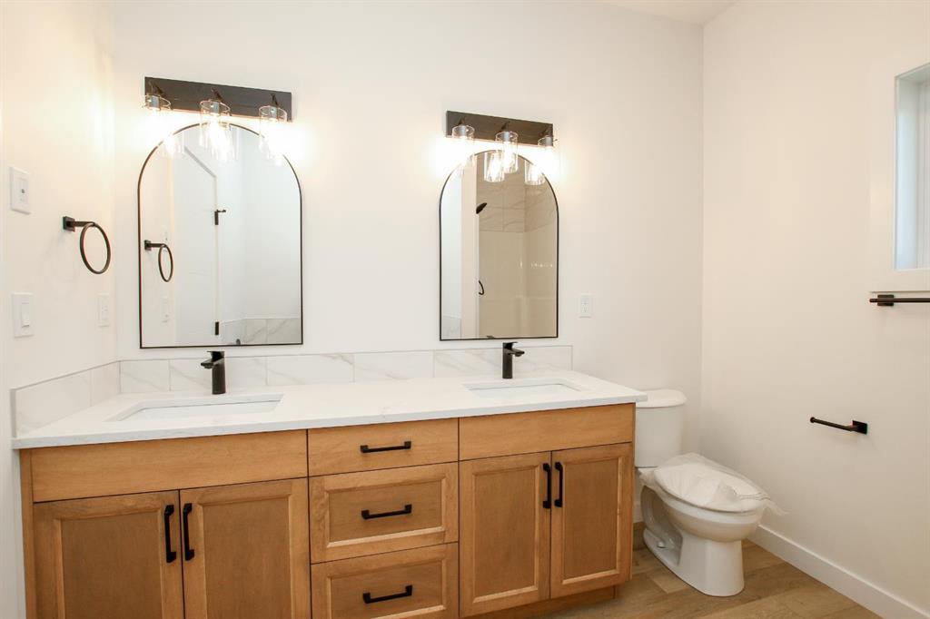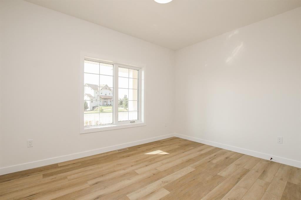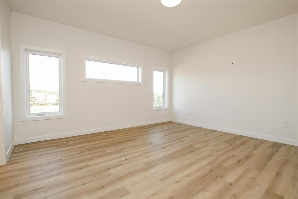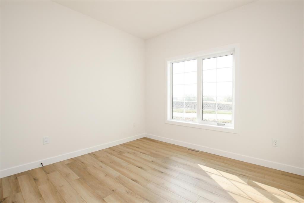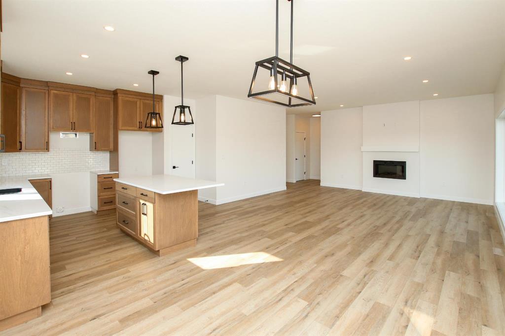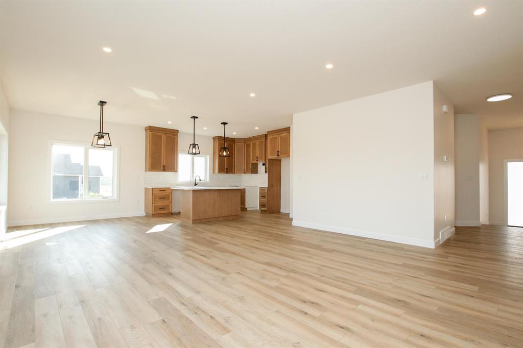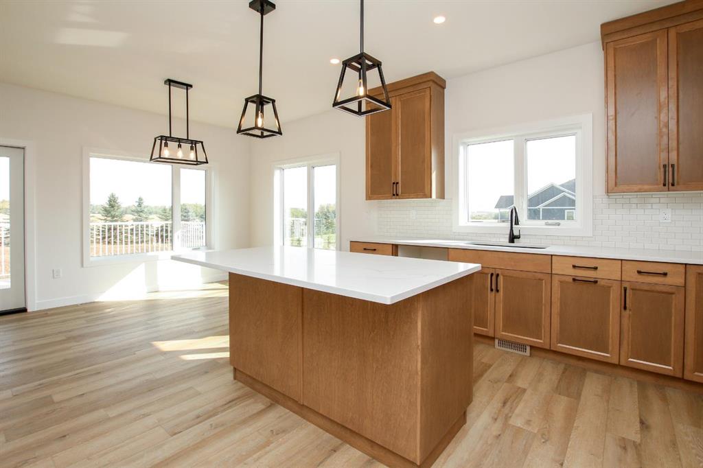 BRAND NEW BUNGALOW LOADED WITH UPGRADES THROUGHOUT ~ LOCATED ON 1 ACRE IN COUNTRY RIDGE ESTATES ~ IMMEDIATE POSSESSION AND MOVE IN READY ~ Durable composite siding, and a covered front veranda spanning over 22' wide create eye catching curb appeal, and welcome you to this brand new home ~ The welcoming foyer has high ceilings, vinyl plank flooring and convenient access to the attached garage ~ The open concept main floor layout is complemented by high ceilings, durable, stylish vinyl plank flooring, and an abundance of large windows that fill the space with natural light ~ The living room is centred by a cozy fireplace with a mantle and wiring for your TV ~ The kitchen is beautifully finished with custom built, warm stained cabinets, full tile backsplash, tons of quartz counter space including an island with an eating bar, undermount sink with a window above, and a wall pantry ~ Easily host large gatherings in the dining room that's filled with natural light from the large windows with country views ~ A garden door leads to a 13' x 12' deck with aluminum railings, that overlooks the backyard and has more great country views ~ More large windows in the king size primary bedroom that features a spacious walk in closet with built in organizers, and 5 piece ensuite offering dual sinks, a 6' soaker tub, and walk in shower ~ 2 additional bedrooms are both a generous size with ample closet space and large windows ~ 4 piece bathroom has an extra deep soaker tub with a tile surround ~ Centrally located main floor laundry hook ups, with additional hookups in the basement ~ The basement has large above grade windows, roughed in underfloor heat, a framed bathroom with plumbing roughed in, framed laundry room, utility room, and plenty of space for a large family room plus additional bedrooms ~ 26' L x 24' W double attached garage is insulated, finished with painted drywall, has over 12' ceilings, floor drain and a man door to the side/backyard ~ Located on 1 acre of land with plenty of space and backing on to a row of mature trees, a walking trail and farm land ~ School bus stop just steps from the front door ~ Ideally situated just minutes west of Ponoka with quick access to Highway QEII ~ This property offers the peace of country living without sacrificing in town convenience ~ Immediate possession and move in ready!!