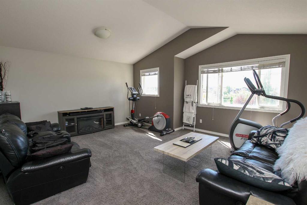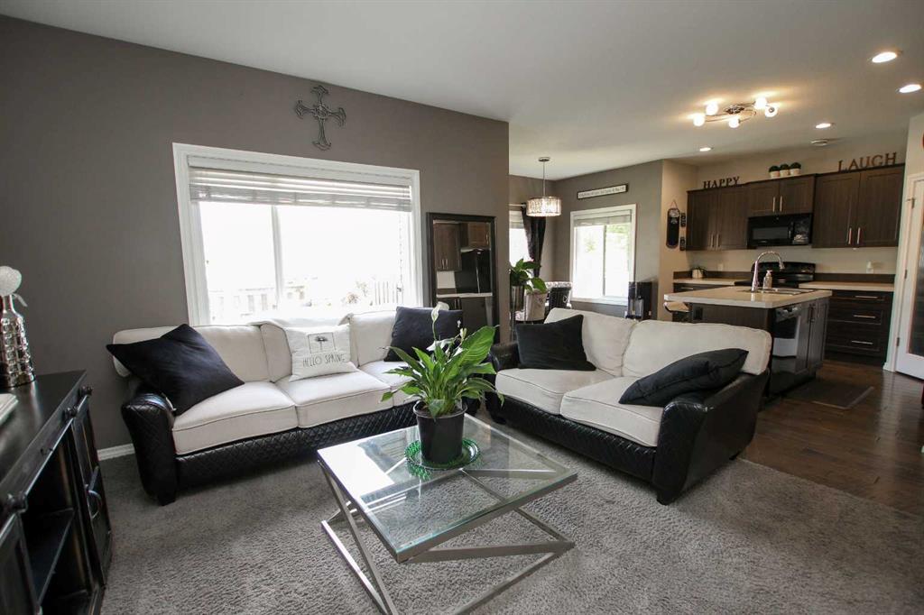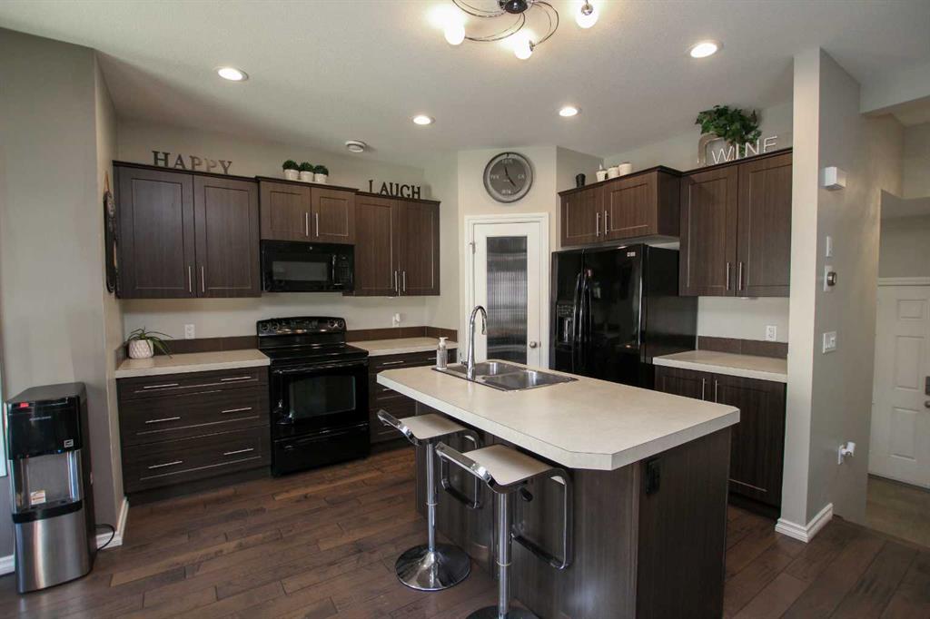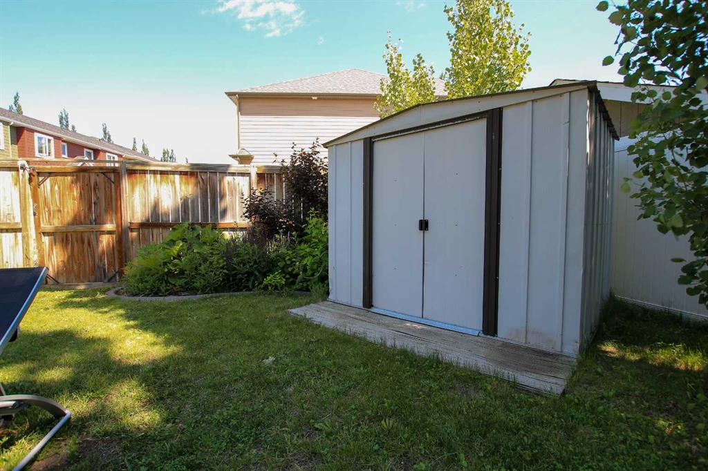 IMMEDIATE POSSESSION AVAILABLE ~ FULLY DEVELOPED 4 BEDROOM, 4 BATHROOM 2-STOREY ~ LOCATED ACROSS FROM A POND & TREED GREEN SPACE ~ STEPS TO ALL AMENITIES ~ Covered front entry welcomes you to this well cared for home ~ The sun filled front entry has a built in bench and coat closet ~ Open concept main floor layout is complemented by high ceilings, hardwood flooring and large windows that fill the space with natural light ~ The kitchen offers a functional layout with ample cabinet and counter space, walk in corner pantry, and an island with an eating bar ~ Easily host large gatherings in the dining room with garden door access to the deck and backyard ~ Just off the kitchen is a conveniently located mud room with tile flooring, laundry with built in cabinets, a 2 piece bathroom and access to the garage ~ The upper level bonus room has soaring vaulted ceilings and large south facing windows with views of the pond and green space ~ The primary bedroom can easily accommodate a king size bed plus multiple pieces of furniture, has a walk in closet with built in organizers and a 3 piece ensuite with a walk in shower ~ 2 bedrooms located on the upper level are both a generous size with ample closet space, and share a 4 piece bathroom ~ The fully developed basement offers even more space with a family room, 4th bedroom, oversized bathroom with a walk in shower and linen closet, and space for storage ~ Double attached garage is insulated, finished with drywall and has 10' ceilings ~ The backyard is landscaped with well established trees, shrubs and perennials, has a garden shed and is fully fenced (vinyl) with back alley access ~ Excellent location; just across from a pond, treed green space, school and walking trails, steps to multiple shopping plazas loaded with awesome amenities, and easy access to downtown and all other amenities.