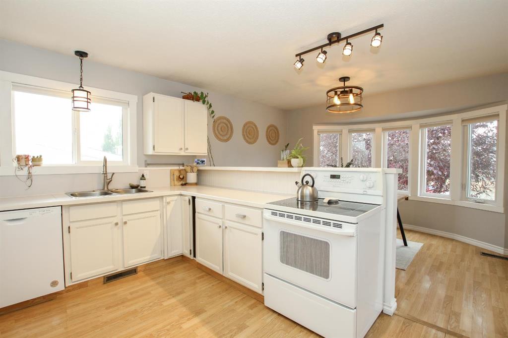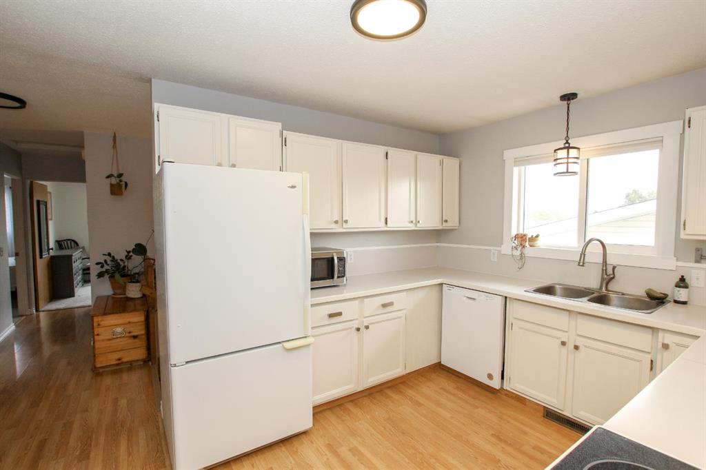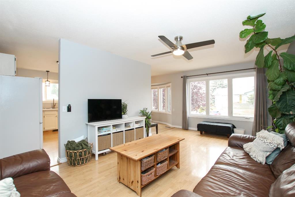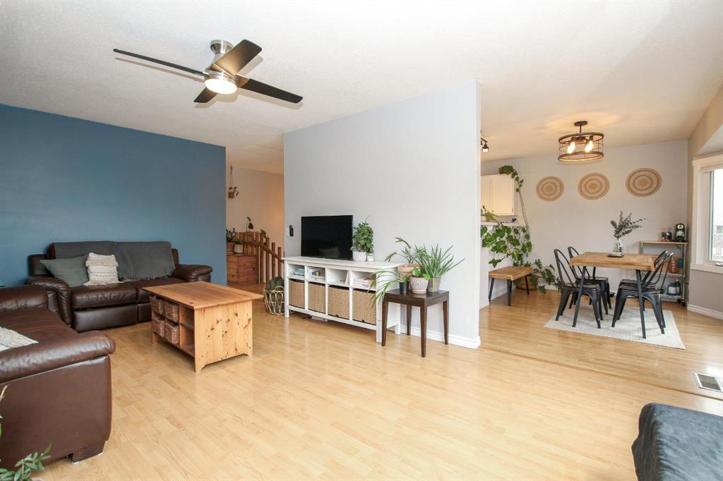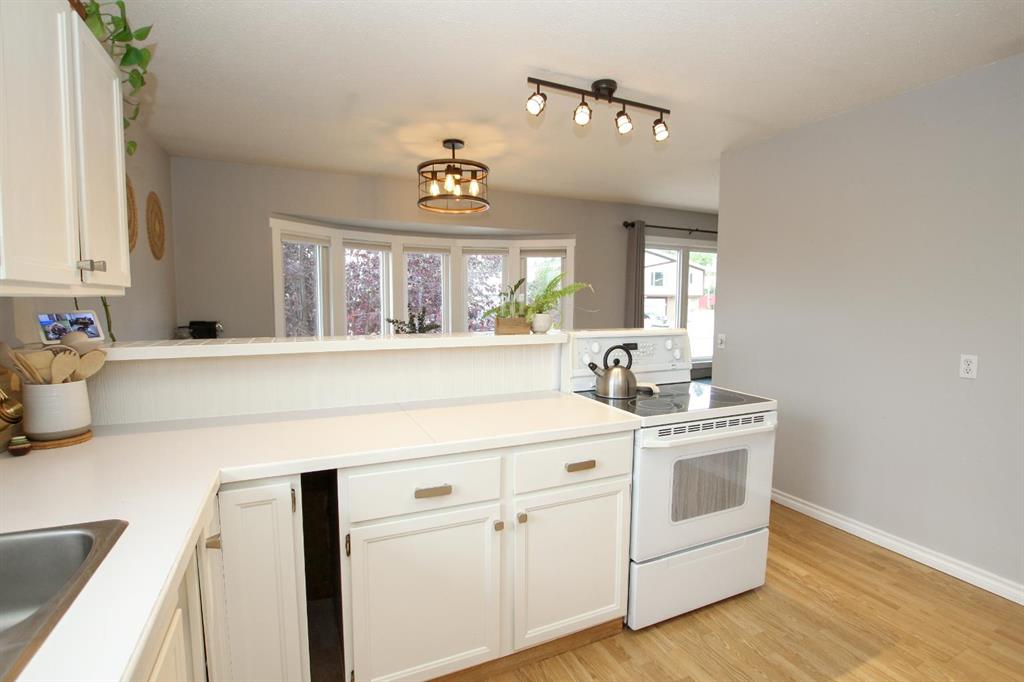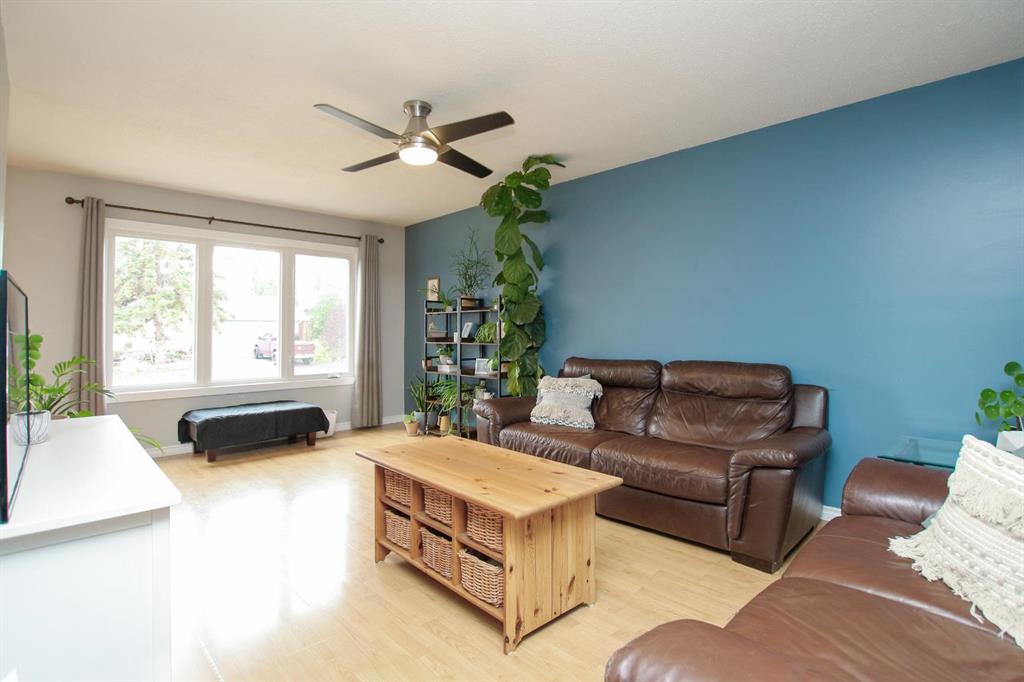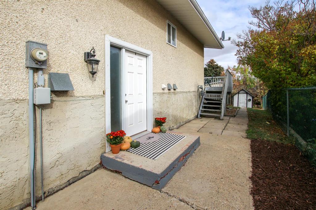 FULLY DEVELOPED & MOVE IN READY ~ SEMI DETACHED 3 BEDROOM, 3 BATHROOM BI-LEVEL IN FAIRVIEW HEIGHTS ~ ATTACHED GARAGE ~ Brick and stucco exterior are complemented by mature landscaping offer eye catching curb appeal to this well cared for home ~ Sun filled foyer with high ceilings welcomes you ~ The spacious living room features large west facing windows that fill the space with natural light ~ The kitchen has a functional layout and offers an abundance of white cabinets, ample counter space, window above the sink, and a raised eating bar ~ Easily host large gatherings in the dining room with more large west facing windows overlooking the front yard and providing tons of natural light ~ The primary bedroom can easily accommodate a king size bed plus multiple pieces of furniture, has a walk in closet with built in organizers, a 2 piece ensuite, and sliding patio doors that lead to the expansive deck and backyard ~ Second main floor bedroom is also a generous size with ample closet space ~ 4 piece main bathroom has updated vanity, tile backsplash, and built in linen shelving ~ The fully finished basement, with large above grade windows, offers tons of space with a family room, 3rd bedroom, 3 piece bathroom with a walk in shower, and a massive multi-purpose room with tile flooring, built in shelving, laundry with a folding counter and access to the attached garage ~ Single attached garage is insulated, finished with drywall, has built in shelving, and a driveway offering additional off street parking ~ The fully fenced backyard is landscaped, has a garden shed, fire pit area, large deck and a stone patio just off the front entry ~ Located steps to multiple schools, parks, playgrounds, walking trails, and lakes plus easy access to shopping and all other amenities.