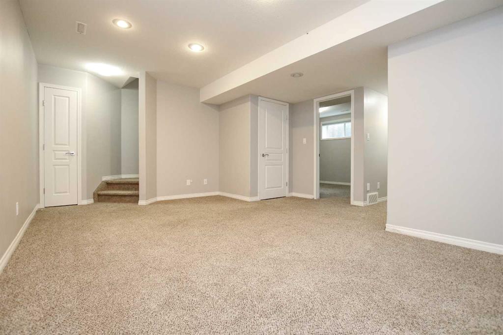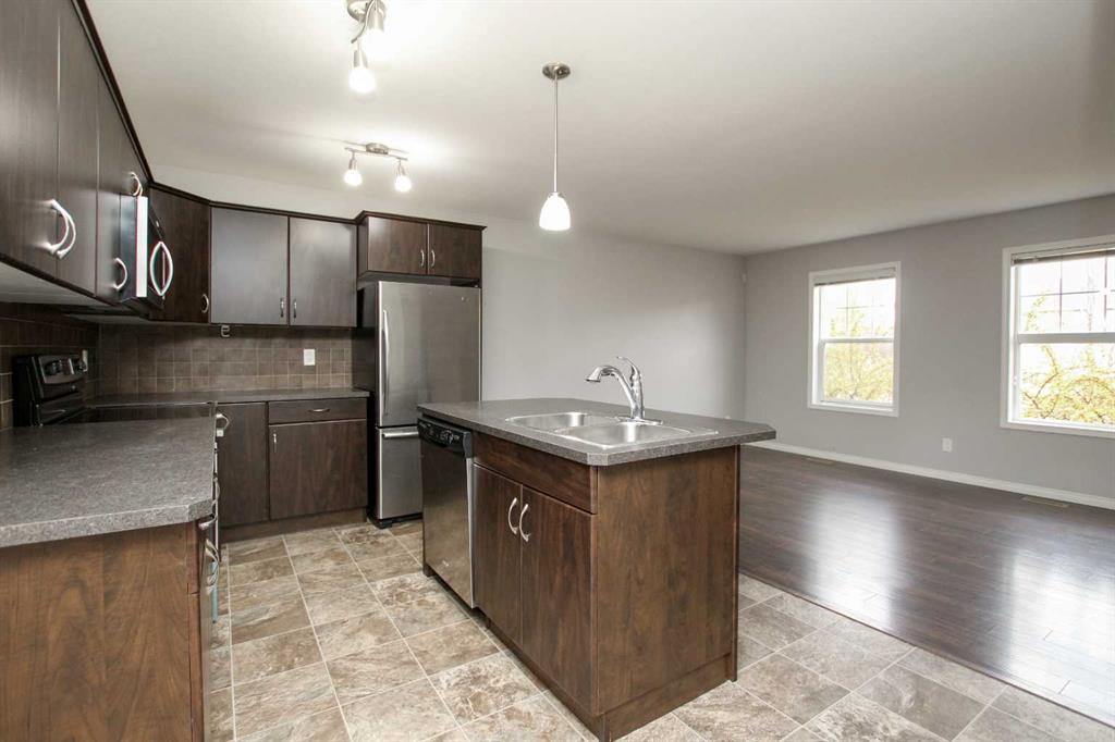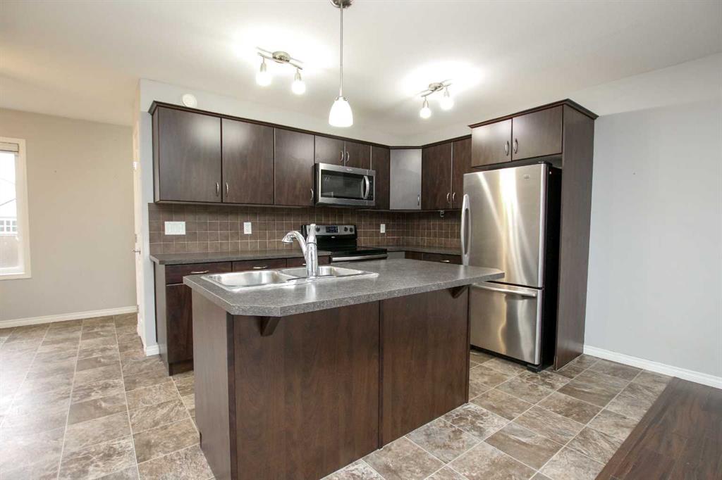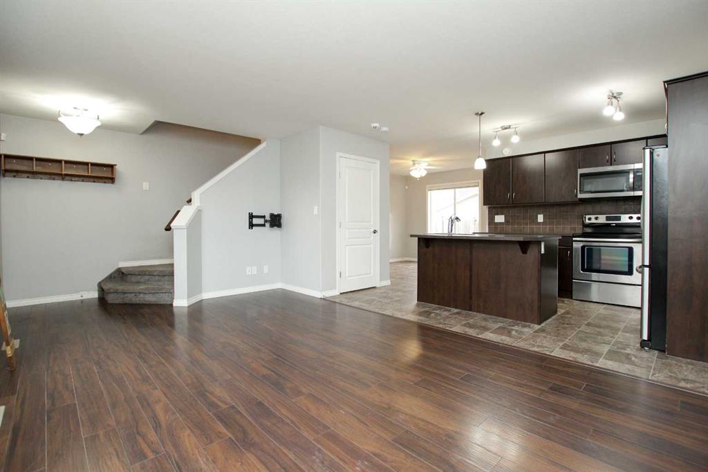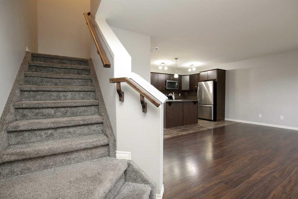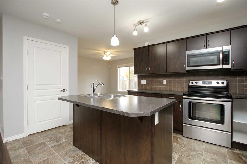 NO CONDO FEES ~ IMMEDIATE POSSESSION & MOVE IN READY ~ FULLY DEVELOPED 4 BEDROOM 3 BATHROOM 2-STOREY TOWNHOME ~ Mature front landscaping and a covered front entry welcome you ~ The living room features laminate flooring, rows of recessed lighting and large windows overlooking the front yard ~ The kitchen offers a functional layout with plenty of dark cabinets, full tile backsplash, ample counter space including an island with an eating bar, and stainless steel appliances ~ The dining room can easily host large gatherings and has a large south facing window that fills the space with natural light ~ 2 piece main floor bathroom ~ Separate rear entry has a coat closet, and access to the deck and backyard ~ The primary bedroom is a generous size with plenty of space for a king size bed and multiple pieces of furniture, and has a spacious walk in closet ~ 2 additional bedrooms located on the upper level have ample closet space ~ 4 piece second level bathroom ~ The fully finished basement offers tons of additional living space with a family room, large 4th bedroom, 4 piece bathroom, laundry located in it's own room, and space for storage ~ Central vacuum ~ The sunny south facing backyard is fully fenced, landscaped, includes a garden shed, has an off street parking pad, and a double swing gate to the paved alley ~ Excellent location in a walkable neighbourhood with all amenities steps away, easy access to downtown/Lakeshore Drive, close to highway access ~ The move in ready home offers immediate possession.