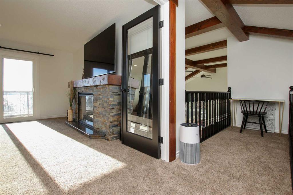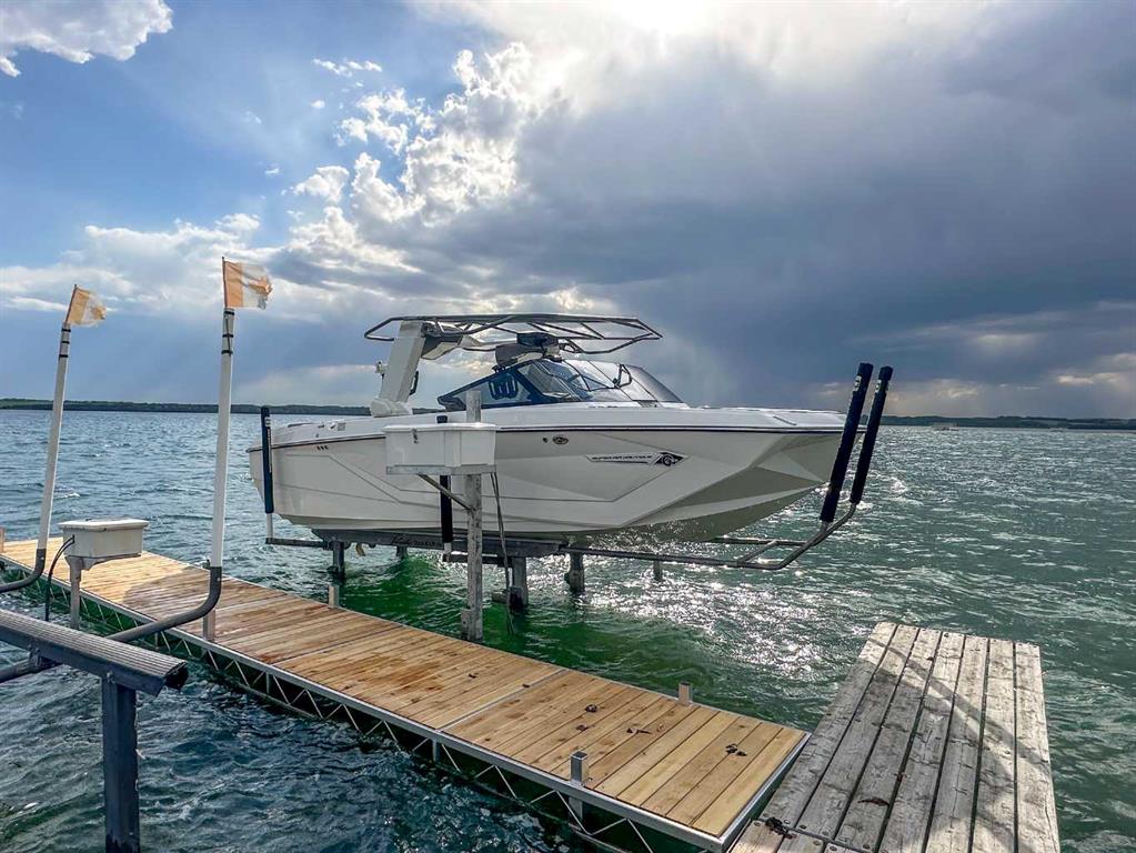 FULLY DEVELOPED & RENOVATED ~ 4 BEDROOM, 4 BATHROOM TWO STOREY IN SUNBREAKER COVE ~ SOUTH WEST FACING BACKYARD WITH LAKE VIEWS FROM ALL LEVELS ~ HEATED TRIPLE GARAGE ~ STEPS TO YOUR PRIVATE DOCK ~ Just completed renovations include; All new windows and doors, LP Smartside Siding, eavestroughs, insulation, plumbing lines, pump for well, water softener, iron filtration, reverse osmosis, refinished decking, poured concrete driveway and walkway ~ Covered front entry welcomes you and leads to a welcoming foyer with vaulted ceilings, tile flooring and lake views ~ The two storey great room features a stone faced fireplace with floor to ceiling stone, and large windows that fill the space with natural light and offering amazing lake views ~ Host large gatherings with ease in the formal dining room with garden doors leading to a covered, wrap around deck ~ The breakfast room has built in seating and another set of patio doors leading to the deck ~ The stunning kitchen offers an abundance of cabinetry, stone counter tops, full tile backsplash, bay window above the sink, upgraded black stainless steel appliances, and a spacious walk in pantry ~ 2 piece bathroom located next to the mud room with access to the garage ~ Generous size main floor bedroom can easily accommodate a king size bed, and is located next to a 3 piece bathroom with a walk in shower and linen closet ~ Open staircase overlooks the foyer and leads to the upper level with an office nook that overlooks the great room ~ The bonus room features a cozy fireplace with a brick surround and raised hearth, plus garden doors leading to a south west facing balcony overlooking the backyard and lake ~ French doors lead to the private primary bedroom with plenty of space for a king size bed plus multiple pieces of furniture ~ 5 piece spa like ensuite has dual sinks with stone counter tops, a walk in shower, jetted soaker tubs and skylights ~ The huge walk in closet has custom built in organizers, a skylight and convenient stackable laundry ~ The fully finished walkout basement offers high ceilings, large above grade windows, a separate entrance and more amazing lake views ~ The family room is set up for entertaining with a large games area, media space with lighted built-in shelving and space for your TV, and a wet bar with built in cabinets, two seating areas, and garden door access to the lower patio and backyard ~ 2 bedrooms are both a generous size ~ Oversized 3 piece bathroom with a walk in shower ~ Second laundry room opens to a large storage space with a window and potential for future development ~ Massive unfinished storage space below the garage has an overhead door to the backyard and offers endless storage space ~ Triple attached garage is heated, insulated, finished with painted drywall, has a man door to the deck and backyard, and two overhead doors ~ The sunny south west facing backyard is fully fenced, sides on to a walking trail and backs onto a green space leading to the lake and private dock.