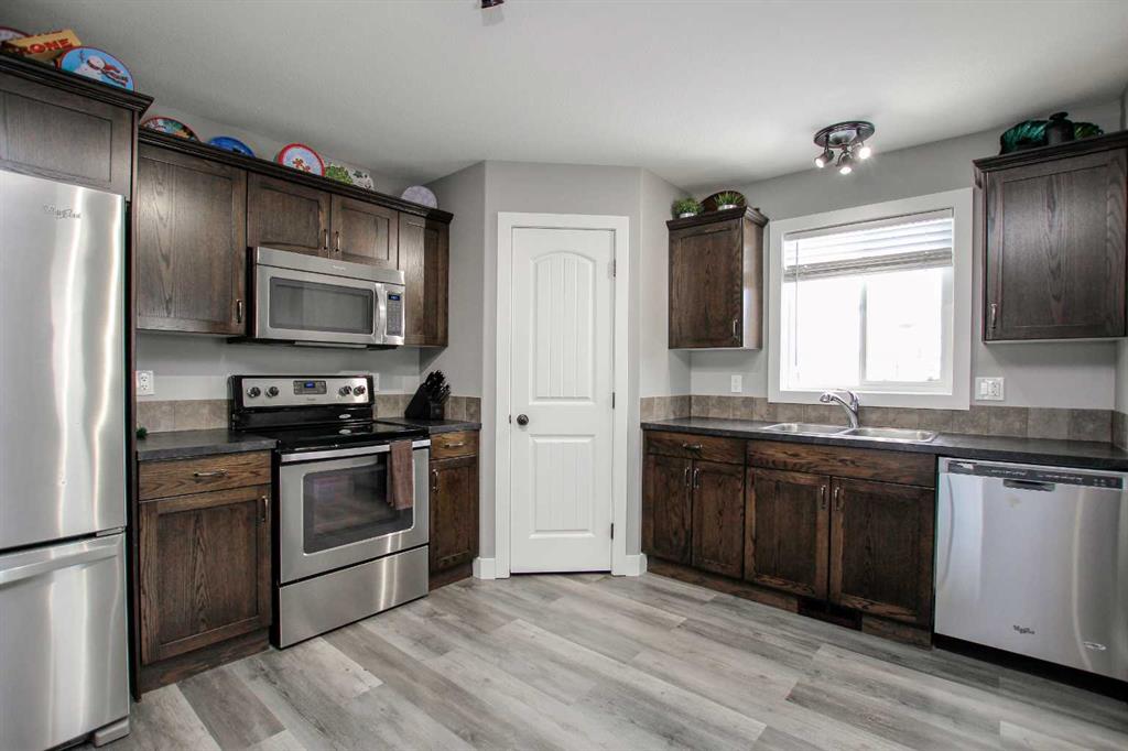 5 BEDROOM, 2 BATHROOM RAISED BUNGALOW WITH 1282 SQ. FT. ABOVE GRADE ~ LARGE FULLY FENCED YARD ~ OFF STREET PARKING WITH PLENTY OFF ROOM FOR A GARAGE WITH SPACE FOR AN RV ~ West facing covered front veranda welcomes you to this well cared for home ~ The spacious living room has a large window that allows for natural light to flow and overlooks the veranda and front yard ~ The kitchen offers plenty of dark stained cabinets, a corner pantry, tile backsplash, window above the sink overlooking the backyard and tons of space for a dining table ~ Just off the kitchen is the rear entry with access to the huge backyard ~ The primary bedroom can easily accommodate a king size bed plus multiple pieces of furniture, has a walk in closet with built in shelving and a 3 piece ensuite ~ 2 additional main floor bedrooms with large closets are adjacent to the 4 piece main bathroom ~ Conveniently located main floor laundry with front load laundry pair and built in shelving ~ The basement is partially finished with two massive bedrooms (both with walk in closets), a large open flex space, bathroom plumbing roughed in and tons of storage space ~ The backyard is fully fenced with back alley access, landscaped and includes a mini greenhouse ~ Rear parking pad has plenty of room for a future garage while still leaving room for an RV ~ Located in the Fawn Meadows neighbourhood, steps to the golf course with easy access to parks, playgrounds, schools, shopping and walking trails ~ Pride of ownership is evident in this well cared for home!