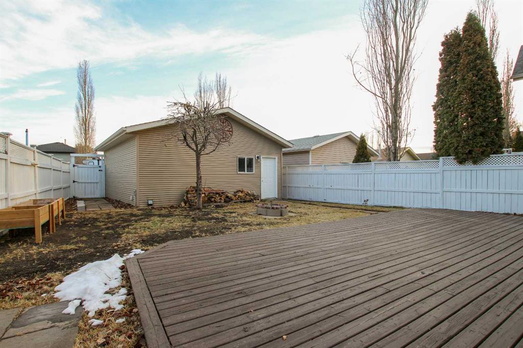 IMMEDIATE POSSESSION AVAILABLE ~ FULLY DEVELOPED 3 BEDROOM, 3 BATHROOM 2-STOREY IN WESTLAKE ~ 24' X 22' DETACHED GARAGE ~ Beautifully landscaped front yard with mature trees and shrubs offer eye catching curb appeal ~ Covered front veranda with space for a sitting area overlooks the front yard ~ Bright foyer with tile floors welcomes you and leads to the open concept main floor ~ The living room features hardwood flooring, large windows offering natural light, and is centred by a cozy gas fireplace with stone surround, mantle and TV niche above ~ Easily host large gatherings in the spacious dining room with more large windows and a wall pantry ~ The kitchen offers a functional layout and features warm stained extended height cabinets with crown moulding, full tile backsplash, window above the sink and ample counter space ~ Mud room has a built in bench and cabinets offers easy access to the huge two tiered deck and backyard ~ 2 piece main floor bathroom ~ The primary bedroom can easily accommodate a king size bed plus multiple pieces of furniture, and has dual closets ~ Two additional bedrooms are also a generous size with ample closet space ~ Oversized 4 piece bathroom centrally located to the bedrooms with a linen closet for storage ~ The fully finished basement offers plenty of additional space and includes a large family room, office nook with a built in desk, 3 piece bathroom with a walk in steam shower, laundry with a sink and space for storage ~ Also includes: central vacuum, window coverings ~ The backyard is landscaped with mature trees, has a fire pit, garden shed and tons of outdoor living space on the massive two tiered deck with a glass enclosed gazebo ~ 24' L x 22' W detached garage is insulated, finished with painted drywall, slatwall and wood paneling, has built in shelving/storage, and back alley access ~ Located on a tree-lined street and walking distance to multiple schools, parks, playgrounds, walking trails, Red Deer Poly, Heritage Ranch and with easy access to downtown and the highway ~ Immediate possession and move in ready!