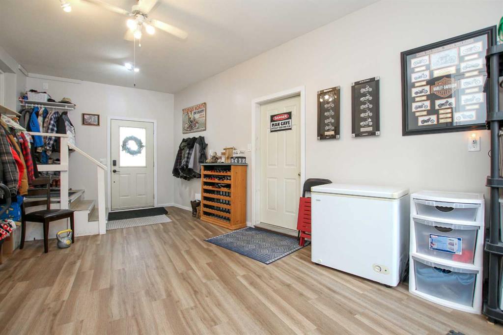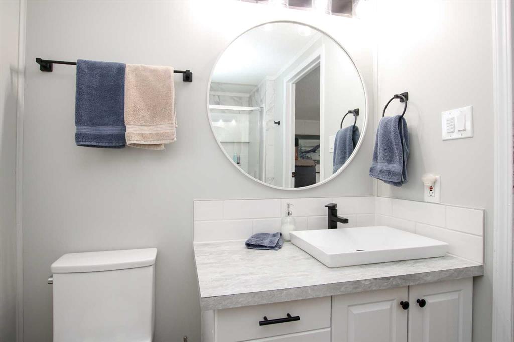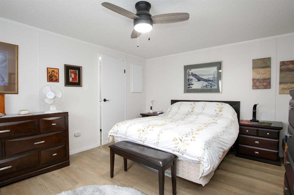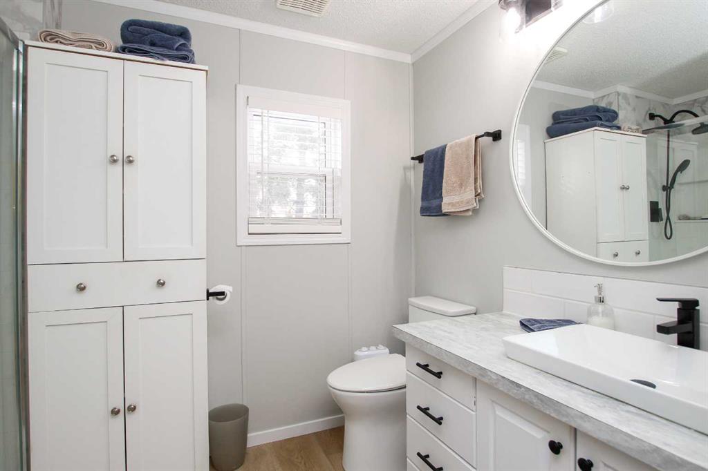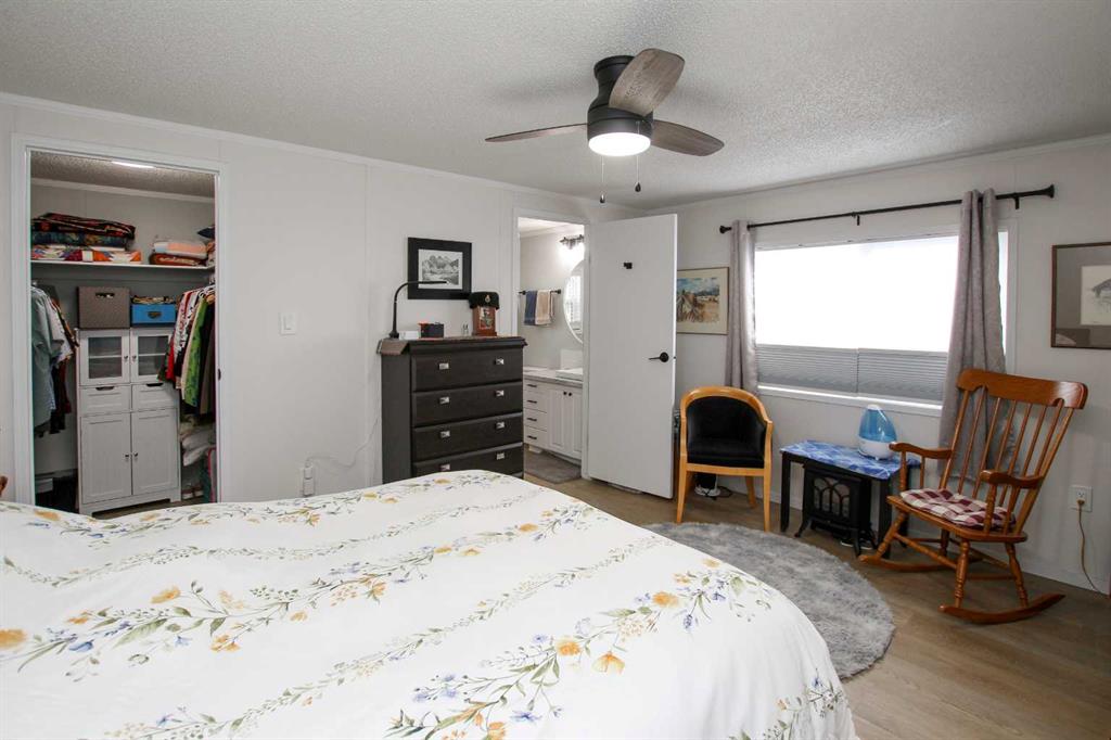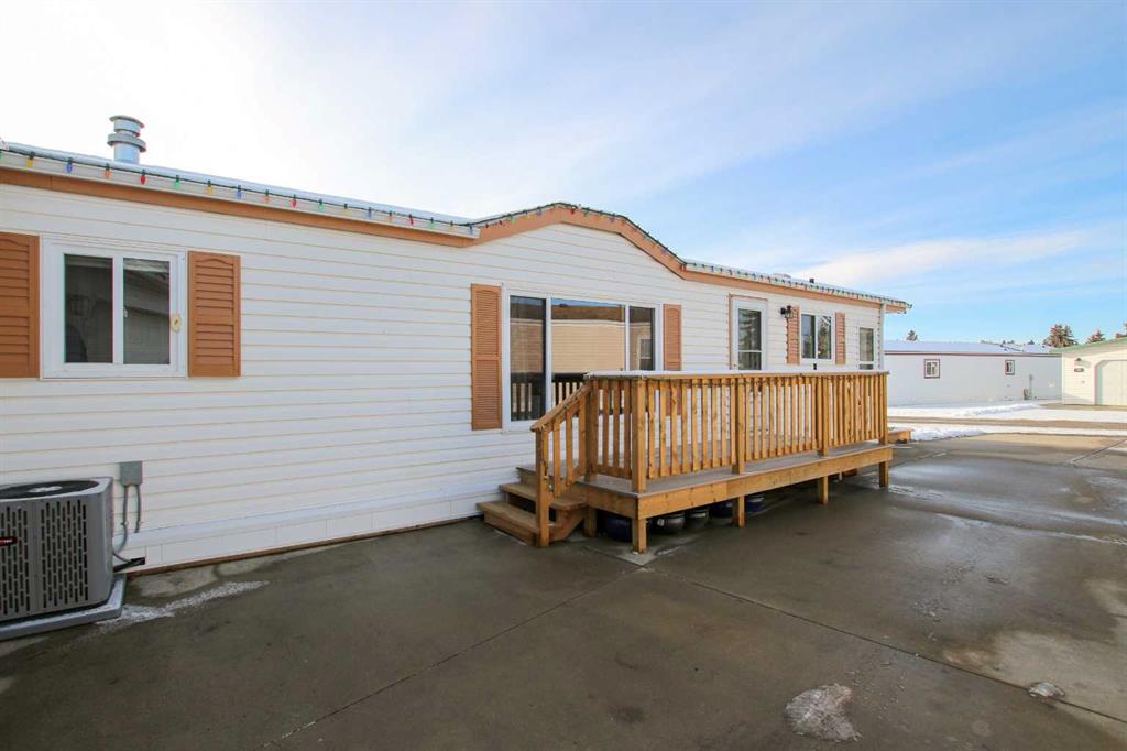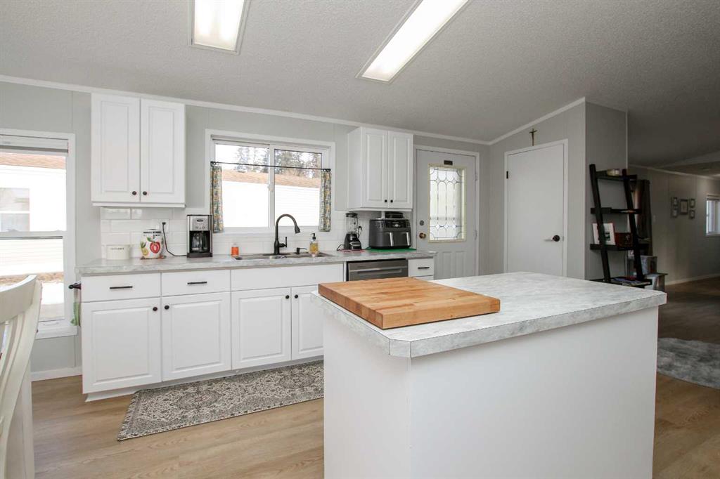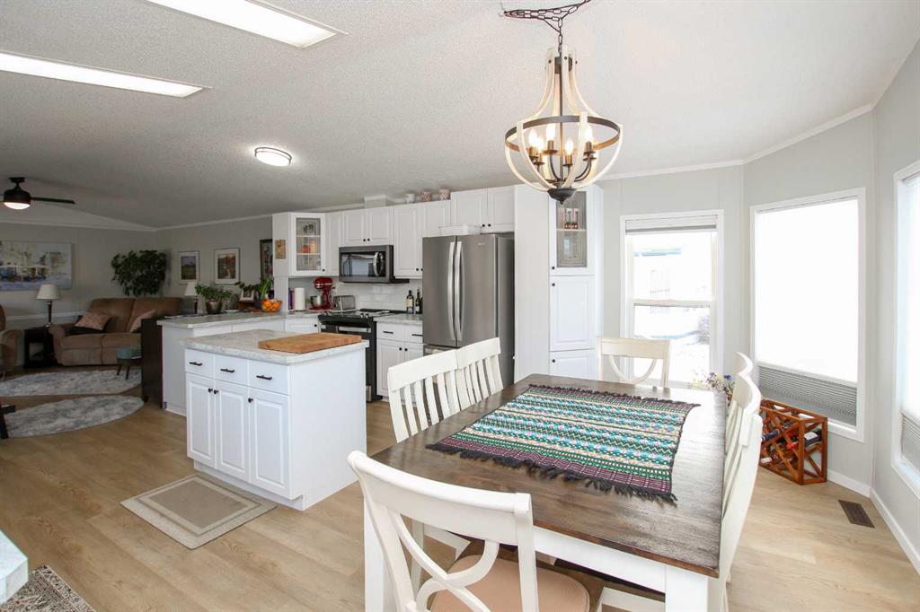 BEAUTIFULLY RENOVATED THROUGHOUT ~ 3 BEDROOMS, 2 BATHROOMS & A BONUS ROOM ~ HEATED DOUBLE ATTACHED GARAGE ~ Pride of ownership shines in this like-new home loaded with renovations including; new furnace, PEX plumbing, central air conditioning, vinyl plank flooring throughout, paint throughout, baseboards, bathrooms (toilets, sinks, faucets, tile, counter tops, shower & tub), kitchen (appliances, backsplash, faucet, sink, painted cabinets, countertops), LED lighting, ceiling fans, insulated overhead garage door, garage heater, bonus room heater, storm door, insulated skirting, heat tape and gutter (completed in 2025), shingles, 50 gallon hot water tank (2020) ~ Open concept main floor layout complemented by vaulted ceilings, vinyl plank flooring and tons of natural light creating a feeling of spaciousness ~ The living room features large windows offering natural light and overlooking the deck ~ The updated kitchen offers tons of cabinet and counter space including a large island, full tile backsplash, window above the sink, brand new stainless steel appliances, wall pantry, and a separate entry with access to the large newly built deck ~ Easily host large gatherings in the dining room with a wall of floor to ceiling windows that fill the space with natural light ~ The primary bedroom can easily accommodate a king size bed plus furniture, has a spacious walk in closet, and a spa like ensuite featuring a walk in shower with a glass door ~ 2 additional bedrooms are separated by the 4 piece main bathroom ~ Conveniently located laundry is just off the bedrooms and has built in cabinets for storage ~ The large bonus room has vinyl plank flooring, high ceilings and offers tons of space and flexibility to suit your needs (home gym, office, media room, craft/hobby room) ~ Separate entry from the bonus room (w/new storm door) leads to the fully fenced backyard with a storage shed, raised garden beds, fruit trees, and a 16' x 12' patio with a gazebo, all backing onto mature trees ~ Heated double attached garage has built in shelving, and an extra large driveway offering tons of parking space (snow blower included with the sale) ~ Located in the 40+ section, with awesome neighbours, and easy access to the Clubhouse with regularly scheduled activities and events ~ Secure gated RV storage available ~ Monthly lot fees are $505.00 ~ Situated minutes south of Red Deer, this home offers unbeatable convenience with a walking trail to Gasoline Alley, where you'll find a wide range of amenities, including the popular Gasoline Alley Farmers' Market, Costco, Cineplex and transit to Red Deer, with easy access to highway 2, making it an ideal location for families and commuters alike ~ Move in Ready!