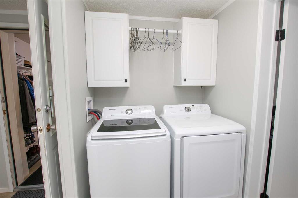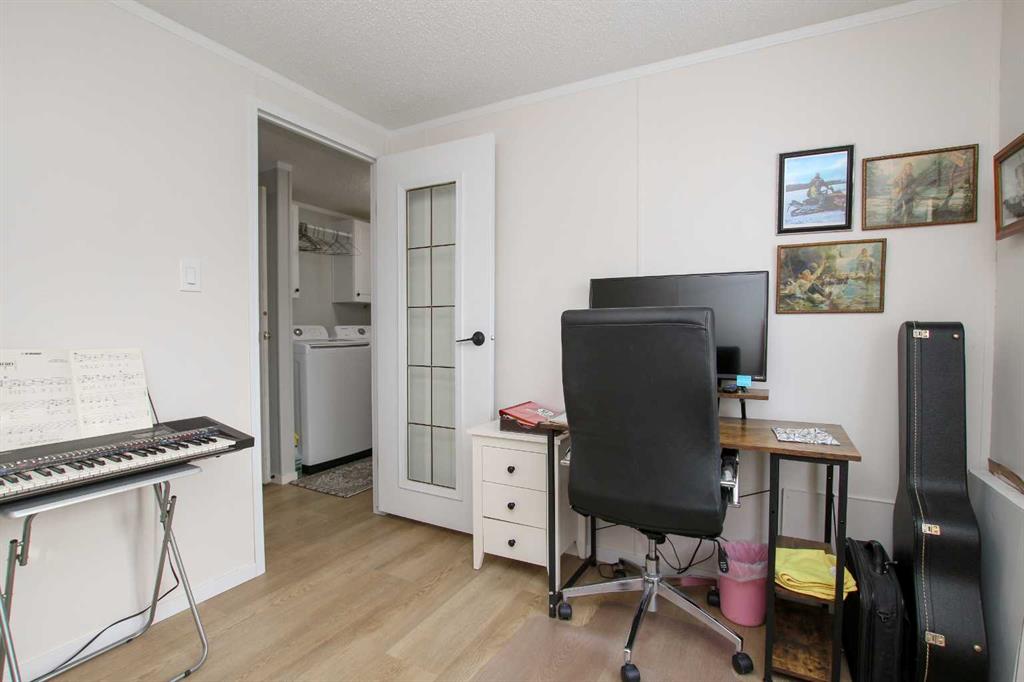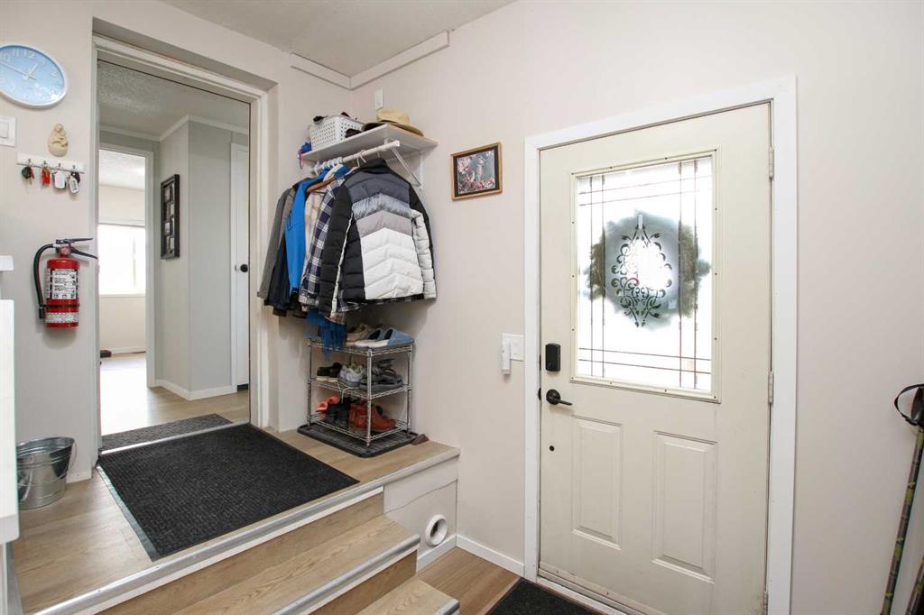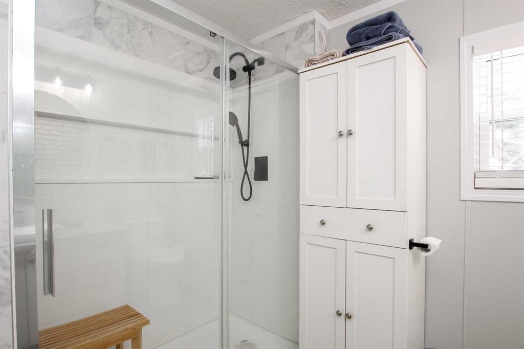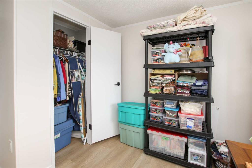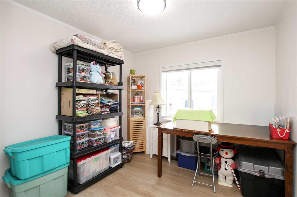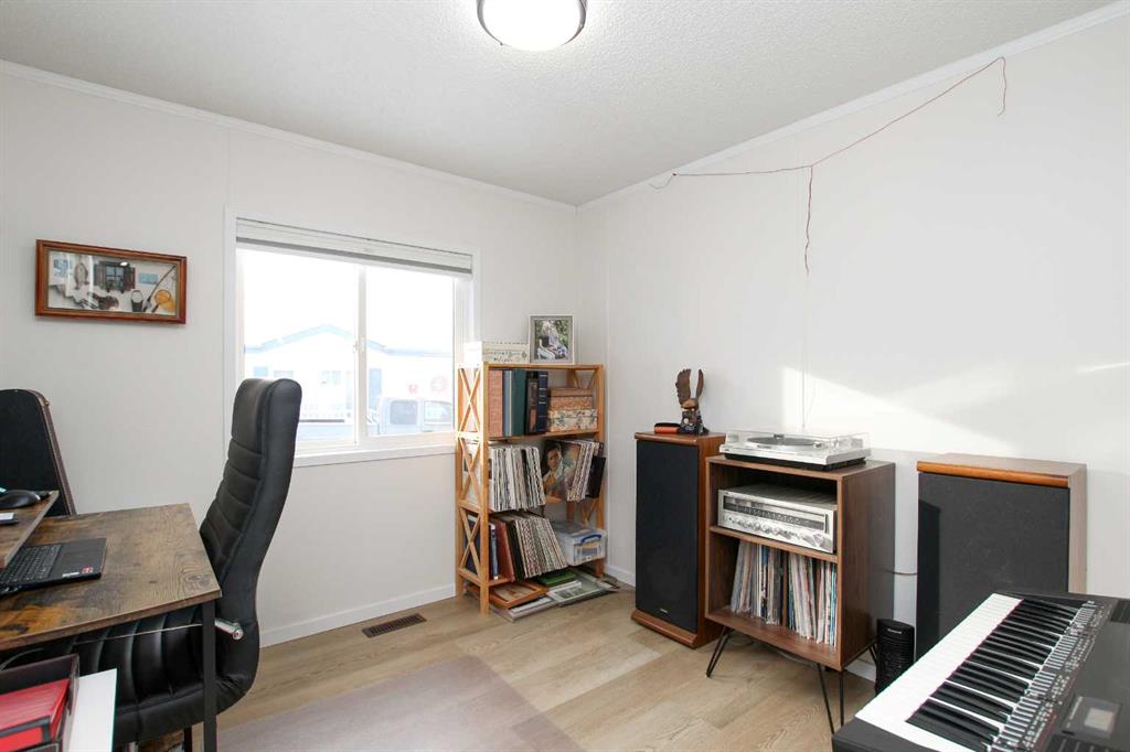 BEAUTIFULLY RENOVATED THROUGHOUT ~ 3 BEDROOMS, 2 BATHROOMS & A BONUS ROOM ~ HEATED DOUBLE ATTACHED GARAGE ~ Pride of ownership shines in this like-new home loaded with renovations including; new furnace, PEX plumbing, central air conditioning, vinyl plank flooring throughout, paint throughout, baseboards, bathrooms (toilets, sinks, faucets, tile, counter tops, shower & tub), kitchen (appliances, backsplash, faucet, sink, painted cabinets, countertops), LED lighting, ceiling fans, insulated overhead garage door, garage heater, bonus room heater, storm door, insulated skirting, heat tape and gutter (completed in 2025), shingles, 50 gallon hot water tank (2020) ~ Open concept main floor layout complemented by vaulted ceilings, vinyl plank flooring and tons of natural light creating a feeling of spaciousness ~ The living room features large windows offering natural light and overlooking the deck ~ The updated kitchen offers tons of cabinet and counter space including a large island, full tile backsplash, window above the sink, brand new stainless steel appliances, wall pantry, and a separate entry with access to the large newly built deck ~ Easily host large gatherings in the dining room with a wall of floor to ceiling windows that fill the space with natural light ~ The primary bedroom can easily accommodate a king size bed plus furniture, has a spacious walk in closet, and a spa like ensuite featuring a walk in shower with a glass door ~ 2 additional bedrooms are separated by the 4 piece main bathroom ~ Conveniently located laundry is just off the bedrooms and has built in cabinets for storage ~ The large bonus room has vinyl plank flooring, high ceilings and offers tons of space and flexibility to suit your needs (home gym, office, media room, craft/hobby room) ~ Separate entry from the bonus room (w/new storm door) leads to the fully fenced backyard with a storage shed, raised garden beds, fruit trees, and a 16' x 12' patio with a gazebo, all backing onto mature trees ~ Heated double attached garage has built in shelving, and an extra large driveway offering tons of parking space (snow blower included with the sale) ~ Located in the 40+ section, with awesome neighbours, and easy access to the Clubhouse with regularly scheduled activities and events ~ Secure gated RV storage available ~ Monthly lot fees are $505.00 ~ Situated minutes south of Red Deer, this home offers unbeatable convenience with a walking trail to Gasoline Alley, where you'll find a wide range of amenities, including the popular Gasoline Alley Farmers' Market, Costco, Cineplex and transit to Red Deer, with easy access to highway 2, making it an ideal location for families and commuters alike ~ Move in Ready!
