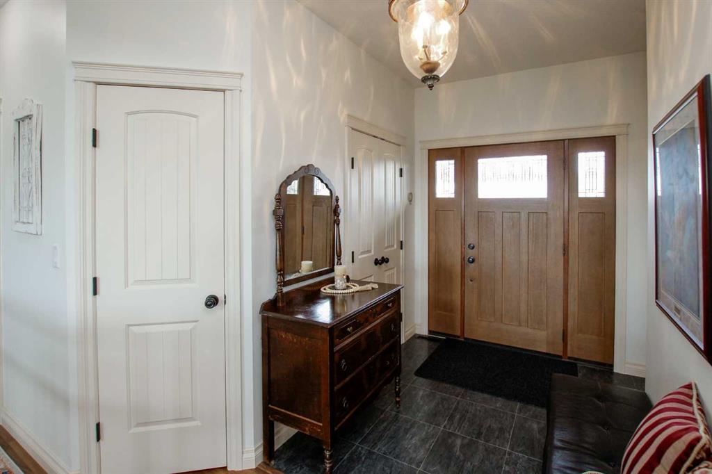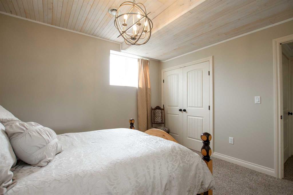 FULLY DEVELOPED WALKOUT BUNGALOW ON 6.67 ACRES IN POULSEN'S ESTATES ~ VIEWS OF GULL LAKE ~ SET UP FOR HORSES ~ HEATED TRIPLE ATTACHED GARAGE ~ NEW WINDOWS AND SHINGLES (2025) ~ Hardie Board exterior and an expansive covered front veranda create eye catching curb appeal to this upgraded home ~ The welcoming foyer has tile floors, a large closet, and room for a bench and table ~ Open concept main floor layout is complemented by an abundance of windows that fill the space with natural light and offer beautiful views of the rolling hills and Gull Lake ~ The kitchen comes well equipped with an abundance of custom cabinetry, ample stone countertops including a massive island with an eating bar and second sink, full tile backsplash and a brick feature wall ~ Easily host large gatherings in the spacious dining room with garden door access to the partially covered wrap around deck with a BBQ gas line, composite deck boards, and aluminum railings ~ The living room features cathedral vaulted ceilings and a cozy fireplace with a raised hearth, mantle and floor to ceiling stacked stone surround ~ The primary bedroom oasis can easily accommodate a king size bed plus multiple pieces of furniture, has French doors to the deck, a generous size walk in closet with floor to ceiling organizers, and a spa like ensuite featuring an extra deep air tub with a view, walk in tile shower, and dual sinks ~ Second main floor bedroom located just off the front entry and has a large window overlooking the front veranda ~ Convenient main floor laundry room has an abundance of built in cabinets with plenty of counter space ~ 2 piece bathroom is located next to the mud room with built in cabinets, a coat closet and access to the attached garage ~ Lighted stairs lead to the fully finished walkout basement with high ceilings and operational in floor heat ~ Massive family room has space for a sitting area, games area, home gym and more, with tons of floor to ceiling windows and garden door access to the partially covered lower patio, hot tub and backyard ~ 2 large bedrooms are perfect for teens or guests with plenty of space for a king size bed and furniture ~ 5 piece bathroom has an oversized vanity with dual sinks and extra storage cabinets, and a separate tub/shower and toilet ~ Large utility room, and flex room offer tons of storage space ~ 28/26' L x 42' W attached garage is insulated, heated, finished with OSB, has three overhead doors and two man doors ~ Other great features include; Water softener, central vacuum ~ Outside there is plenty of space with 6.67 acres of land, beautiful views plus a fully fenced pasture with a barn - perfect for horses ~ Minutes to Parkland Beach with public beach access, boat launch, golf course and more, easy access to Rimbey and Bentley.
