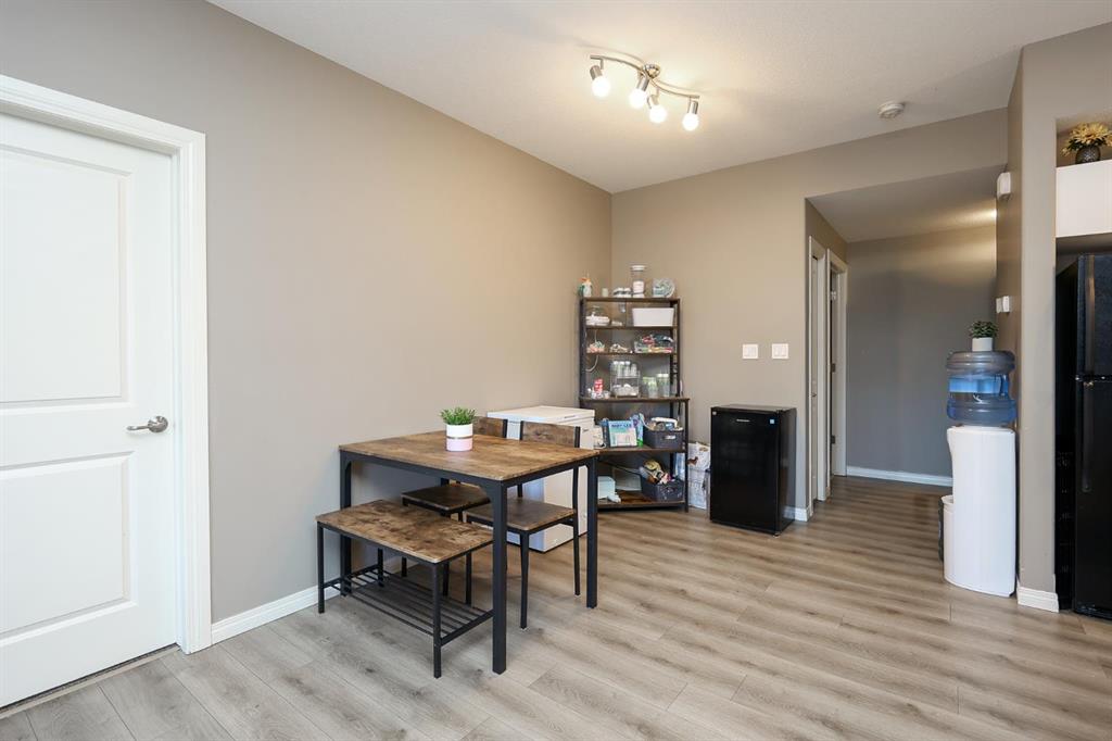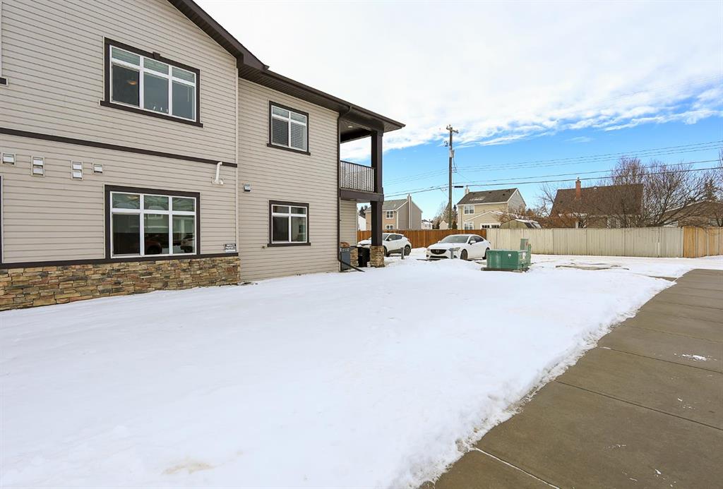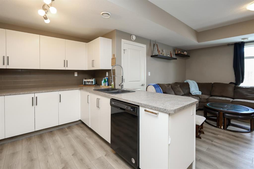 2 BEDROOM, 2 BATHROOM MAIN FLOOR CONDO ~ WEST FACING ~ LOW MAINTENANCE LIVING ~ Covered front entry and patio area welcome you to this move in ready home ~ Spacious foyer with a large coat closet opens to the open concept main living space with large west facing window and vinyl plank flooring ~ The u-shaped kitchen offers a functional layout and features ample cabinet and counter space, including an eating bar, full tile backsplash, and black appliances ~ easily host gathering in the dining room ~ Just off the kitchen is a storage/flex room ~ The primary bedroom can easily accommodate a king size bed plus multiple pieces of furniture, has a walk in closet with built in organizers, and a 4 piece ensuite ~ Second bedroom is also a generous size with ample closet space ~ Conveniently located laundry is next to the 4 piece main bathroom ~ Low monthly condo fees are $365.54 and include; exterior insurance, maintenance grounds, parking, professional management, reserve fund contributions, sewer, snow removal, trash and water ~ 2 Powered parking stalls right in front of the main level door offer easy access ~ Located just minutes south of Red Deer and Gasoline Alley (Walmart, Costco, Farmer's Market & tons more shopping and amenities), close to Penhold (schools with bus service, shopping), with quick access to highway 2 ~ This community offers beautiful walking trails through natural wetlands, along with numerous parks and playgrounds ~ Enjoy the serenity of a country setting while maintaining every day convenience.