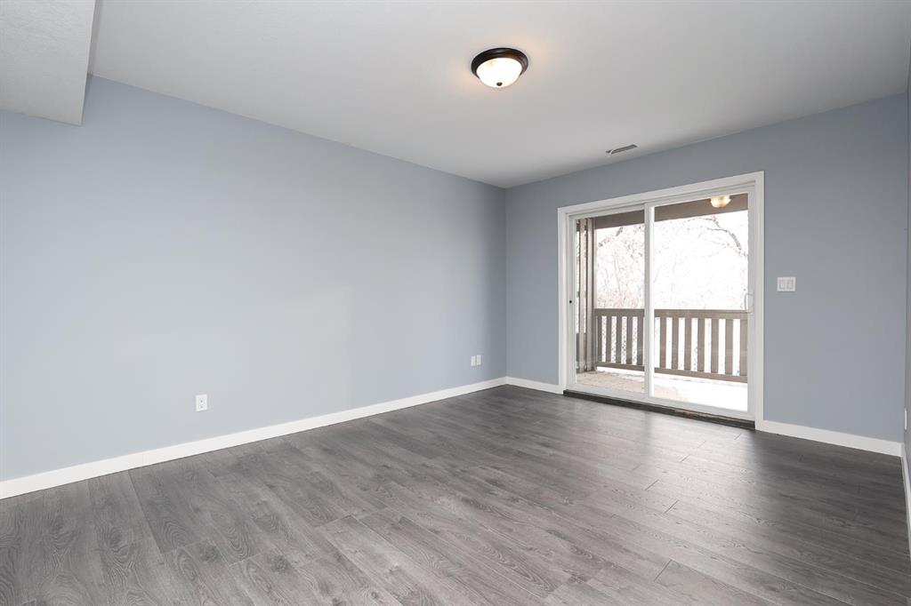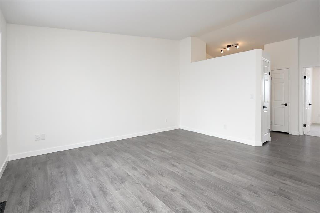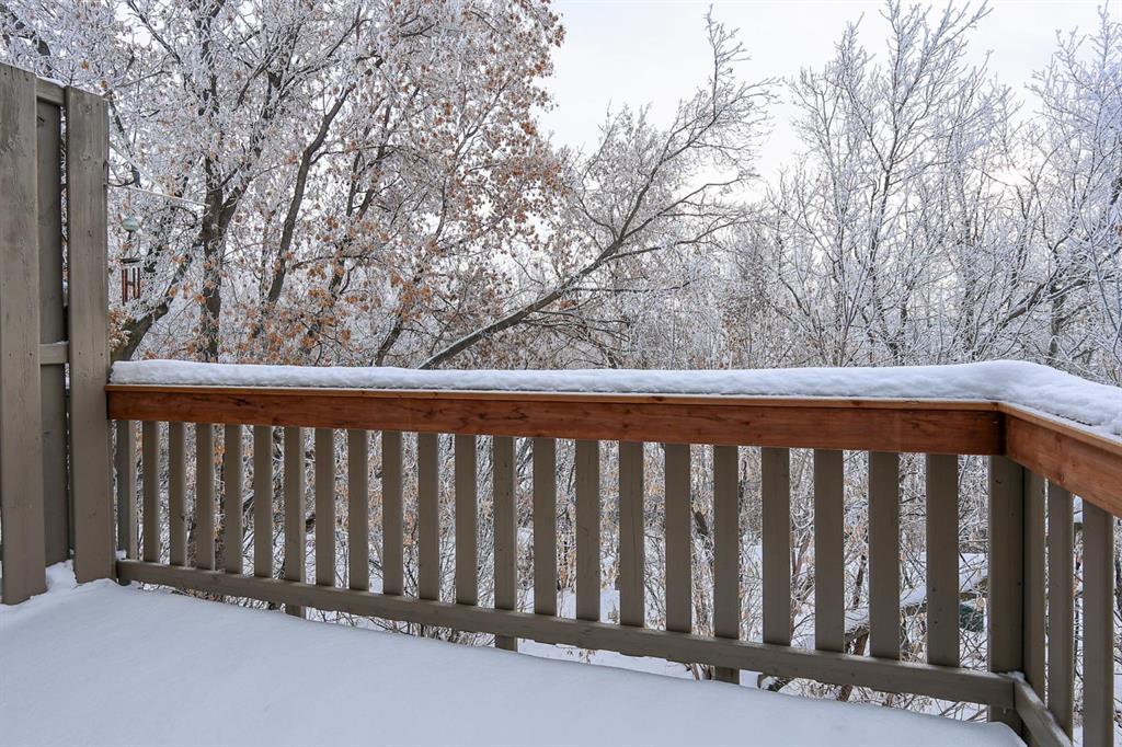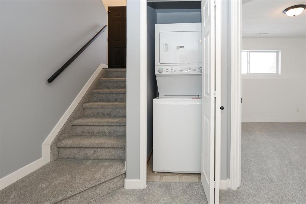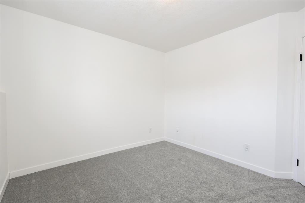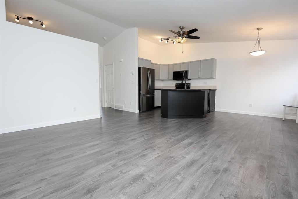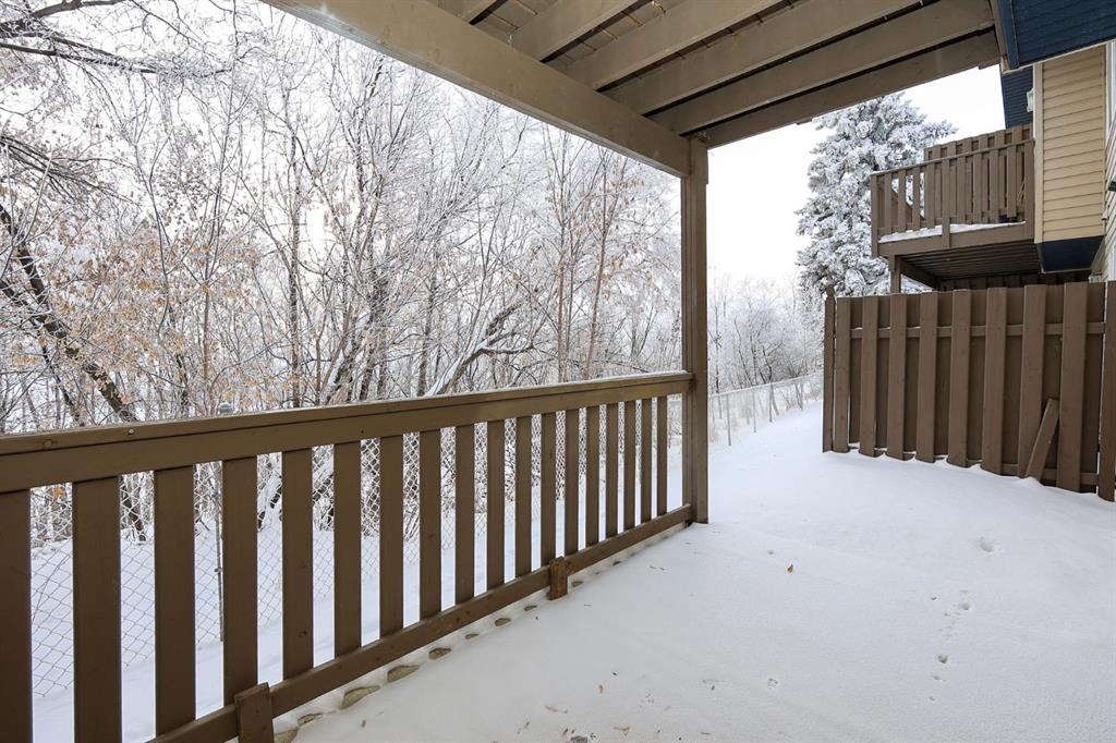 IMMEDIATE POSSESSION AVAILABLE ~ FULLY DEVELOPED 3 BEDROOM, 2 BATH TOWNHOME W/WALKOUT BASEMENT ~ BACKING ON TO MATURE TREED RESERVE WITH NO NEIGHBOURS BEHIND ~ Covered front entry welcomes you and leads to a sun filled foyer with high ceilings and ample closet space ~ The open concept main living space is complemented by soaring vaulted ceilings and vinyl plank flooring that create a feeling of spaciousness ~ The living room is filled with natural light from the large picture window with views of the backyard and mature trees ~ The kitchen offers a functional layout and features two toned cabinets, ample counter space including an island with an eating bar, plus new black stainless steel appliances with warranty ~ Easily host gatherings in the dining space with garden door access to the 12' x 6' south east facing deck with a privacy wall ~ The primary bedroom can easily accommodate a king size bed plus multiple pieces of furniture, has ample closet space, and is conveniently located next to the 4 piece main bathroom ~ The fully finished walkout basement with large above grade windows features two generous size bedrooms, a 4 piece bathroom, laundry, and a spacious family room with sliding patio doors that walk out to a covered 12' x 8' concrete patio with a privacy wall, and the backyard space ~ Newer hot water tank ~ 2 Assigned parking stalls right outside the front door (power outlet on house exterior) ~ Excellent location; Across the street from Iron Ridge Junior & Secondary Schools, All Stars Park, Abbey Centre, shopping plazas and walking trails, with easy access to the highway and all other amenities ~ Monthly condo fees are $320.20 and include; exterior insurance, grounds maintenance, parking, professional management, reserve fund contributions, garbage/recycle ~ This updated home is move in ready!