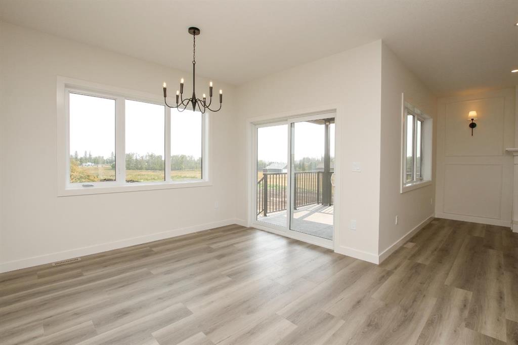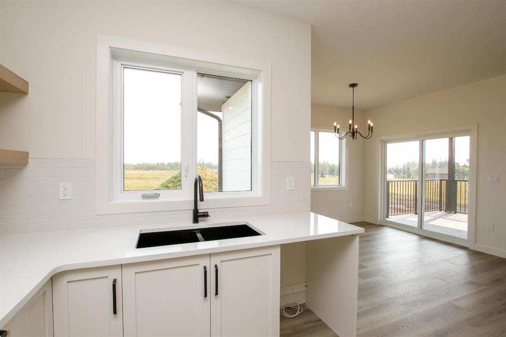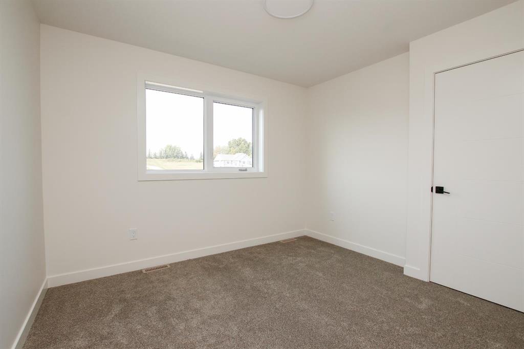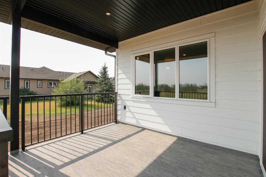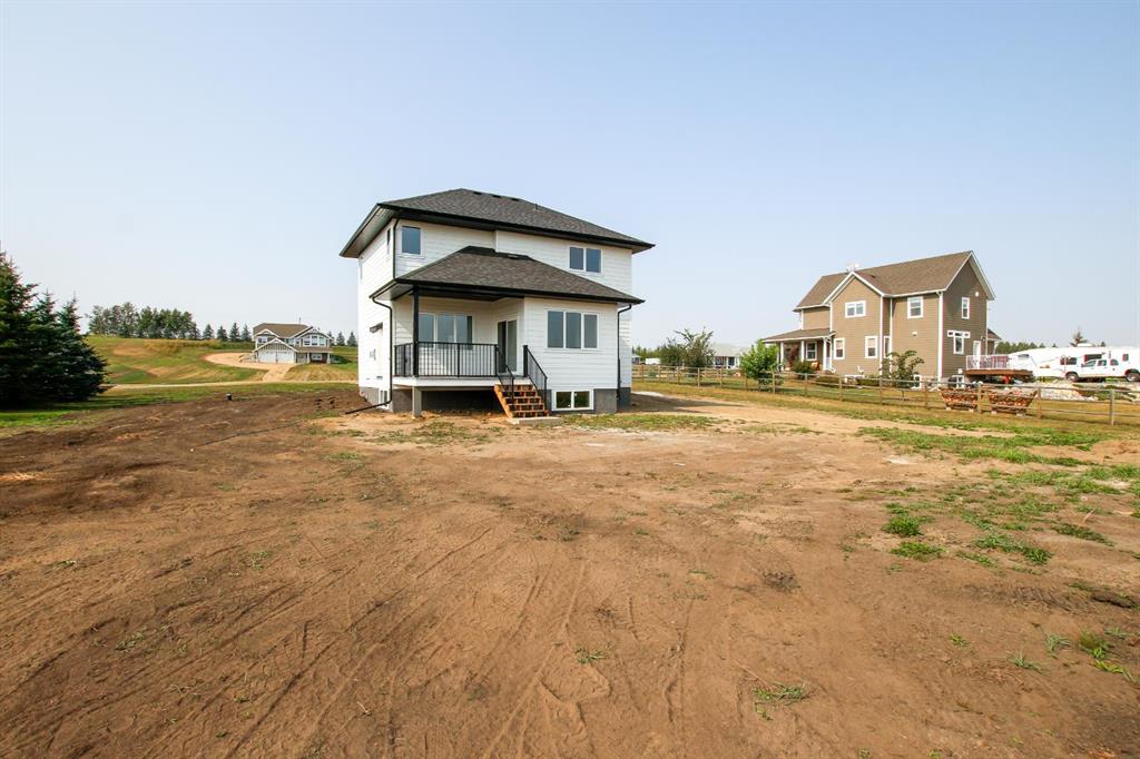 BRAND NEW 3 BEDROOM, 3 BATHROOM 2-STOREY ~ STYLISH FINISHES & LOADED WITH UPGRADES THROUGHOUT ~ OVERSIZED DOUBLE ATTACHED GARAGE ~ IMMEDIATE POSSESSION AVAILABLE ~ 12' x 11'6" covered front veranda welcomes you and leads to a bright and spacious foyer ~ Archway leads to the warm and inviting living room with high ceilings, large windows that fill the space with natural light and a cozy fireplace with a raised hearth, mantle, and feature wall with decorative moulding and lighted wall sconces ~ The stunning kitchen offers an abundance of custom cabinets loaded with storage drawers and a built in pantry; tons of stone countertops including a massive island with an eating bar and pendant lights above; full tile backsplash; and an undermount granite composite sink with a window above ~ Archway from the kitchen leads to the mud room with convenient access to the attached garage and 2 piece main bathroom ~ easily host large gatherings in the spacious dining room with a stylish chandelier and sliding patio door to the covered 12' x 9'6" rear deck that overlooks the backyard ~ The primary bedroom can easily accommodate a king size bed plus multiple pieces of furniture, has a large walk in closet, and a spa like 5 piece ensuite with dual sinks, a soaker tub and separate walk in shower ~ 2 additional bedrooms are both a generous size with ample closet space, and share a 4 piece bathroom ~ Conveniently located upper level laundry room ~ The basement has in floor heating roughed in, bathroom plumbing roughed in, and awaits your future development with plenty of space for a family room and/or additional bedroom(s) ~ Oversized double attached garage is insulated and finished with painted drywall, has two floor drains, two overhead doors, and a man door to the backyard ~ The backyard has plenty of space and beautiful country views ~ School bus stop just steps away ~ Ideally situated just minutes west of Ponoka with quick access to the QEII, this property offers the peace of country living without sacrificing in town convenience ~ Immediate possession and move in ready!!