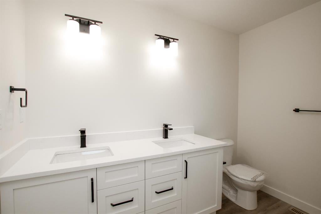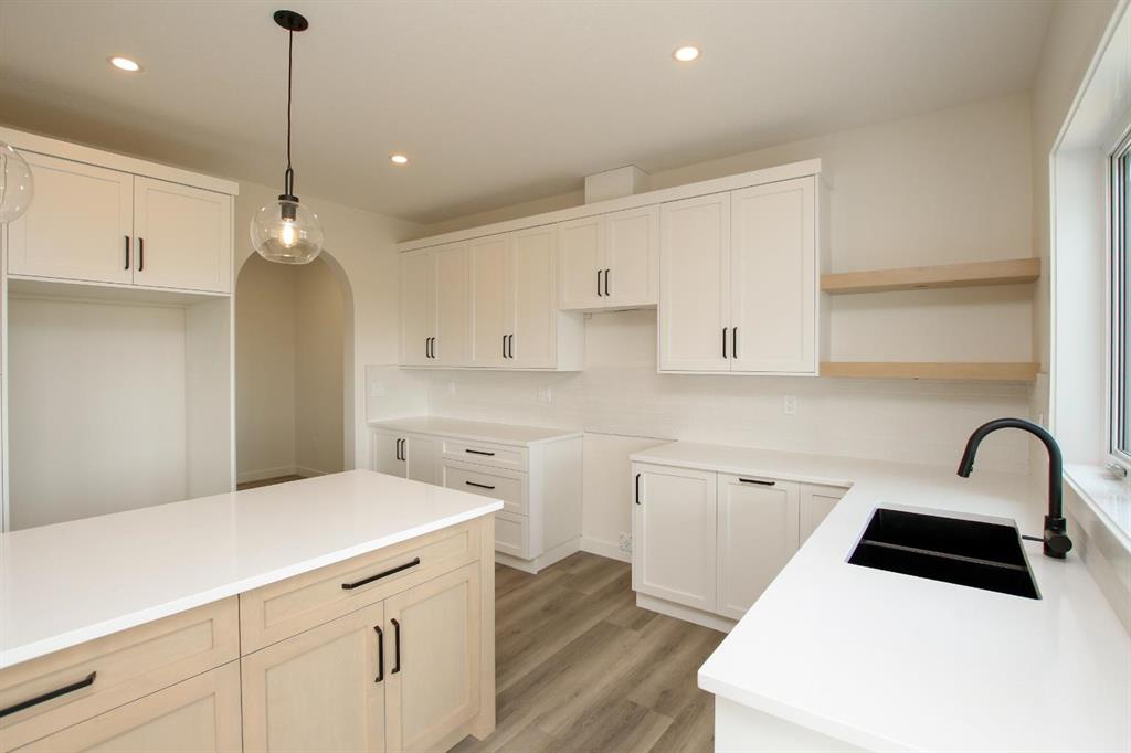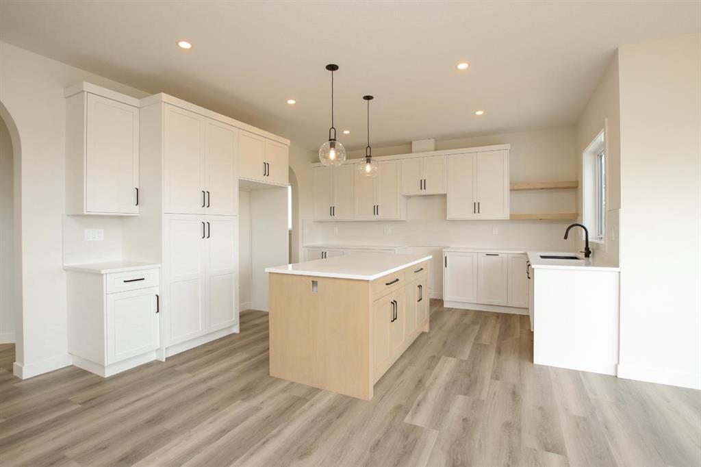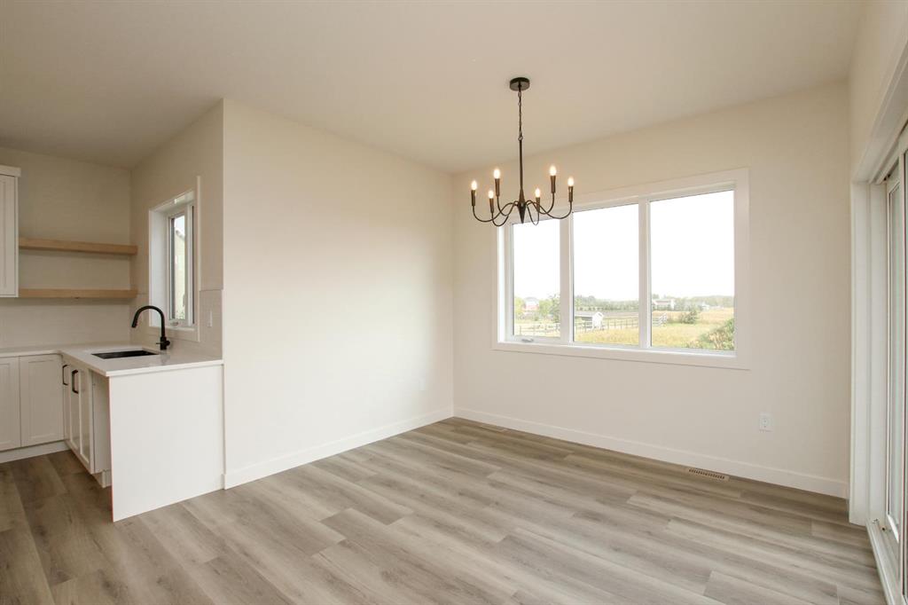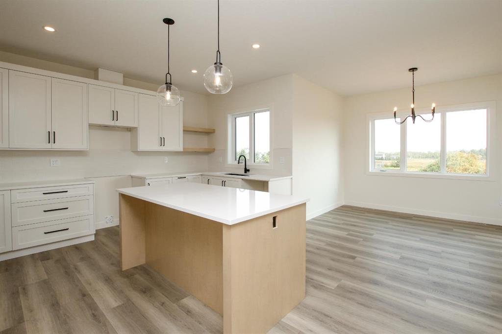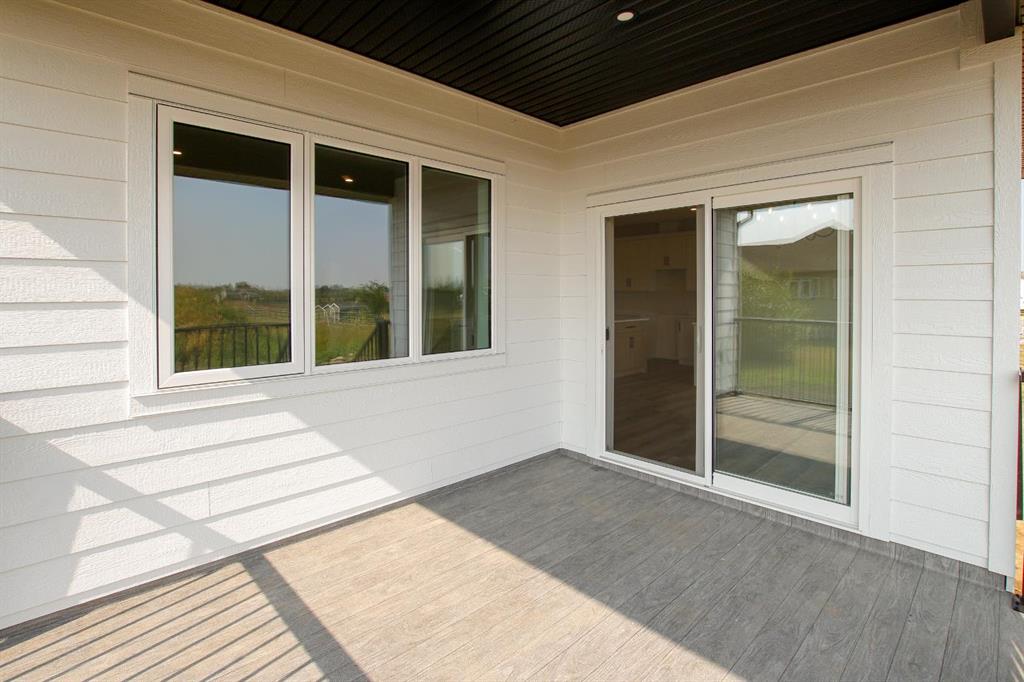 BRAND NEW 3 BEDROOM, 3 BATHROOM 2-STOREY ~ STYLISH FINISHES & LOADED WITH UPGRADES THROUGHOUT ~ OVERSIZED DOUBLE ATTACHED GARAGE ~ IMMEDIATE POSSESSION AVAILABLE ~ 12' x 11'6" covered front veranda welcomes you and leads to a bright and spacious foyer ~ Archway leads to the warm and inviting living room with high ceilings, large windows that fill the space with natural light and a cozy fireplace with a raised hearth, mantle, and feature wall with decorative moulding and lighted wall sconces ~ The stunning kitchen offers an abundance of custom cabinets loaded with storage drawers and a built in pantry; tons of stone countertops including a massive island with an eating bar and pendant lights above; full tile backsplash; and an undermount granite composite sink with a window above ~ Archway from the kitchen leads to the mud room with convenient access to the attached garage and 2 piece main bathroom ~ easily host large gatherings in the spacious dining room with a stylish chandelier and sliding patio door to the covered 12' x 9'6" rear deck that overlooks the backyard ~ The primary bedroom can easily accommodate a king size bed plus multiple pieces of furniture, has a large walk in closet, and a spa like 5 piece ensuite with dual sinks, a soaker tub and separate walk in shower ~ 2 additional bedrooms are both a generous size with ample closet space, and share a 4 piece bathroom ~ Conveniently located upper level laundry room ~ The basement has in floor heating roughed in, bathroom plumbing roughed in, and awaits your future development with plenty of space for a family room and/or additional bedroom(s) ~ Oversized double attached garage is insulated and finished with painted drywall, has two floor drains, two overhead doors, and a man door to the backyard ~ The backyard has plenty of space and beautiful country views ~ School bus stop just steps away ~ Ideally situated just minutes west of Ponoka with quick access to the QEII, this property offers the peace of country living without sacrificing in town convenience ~ Immediate possession and move in ready!!