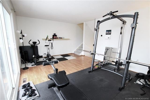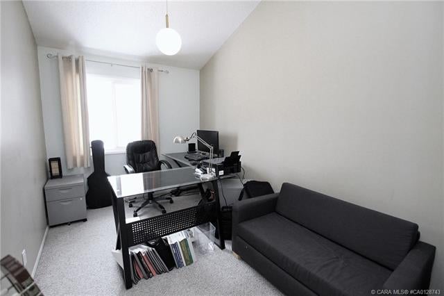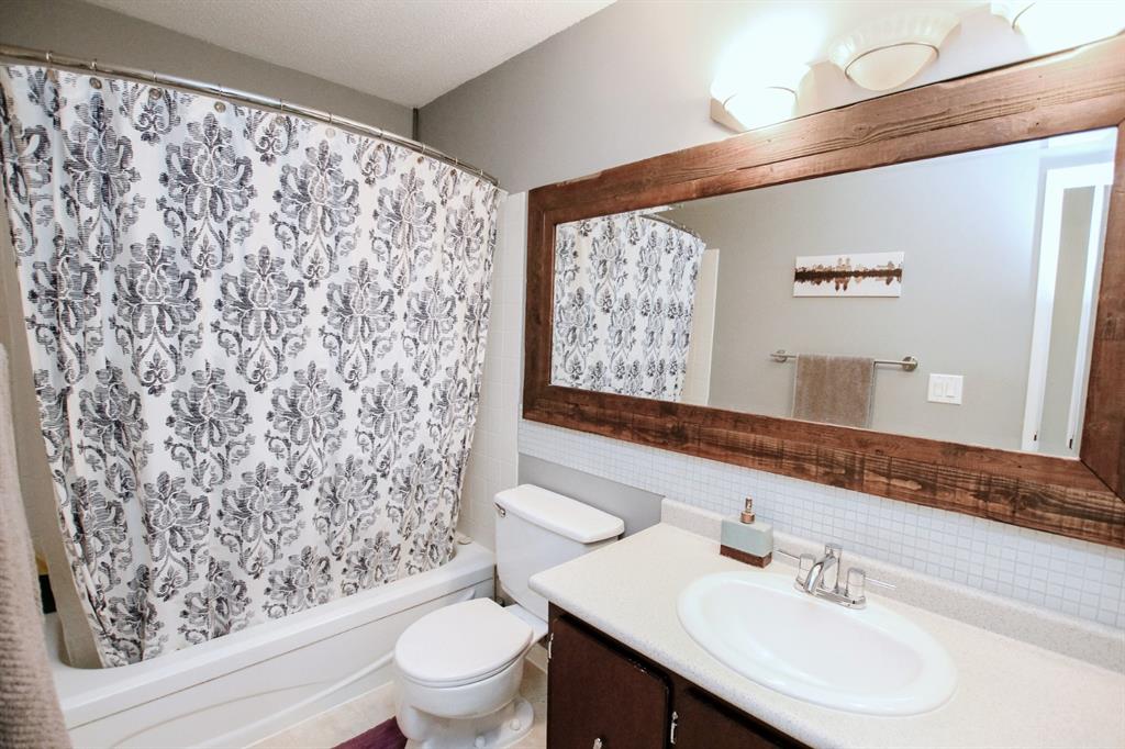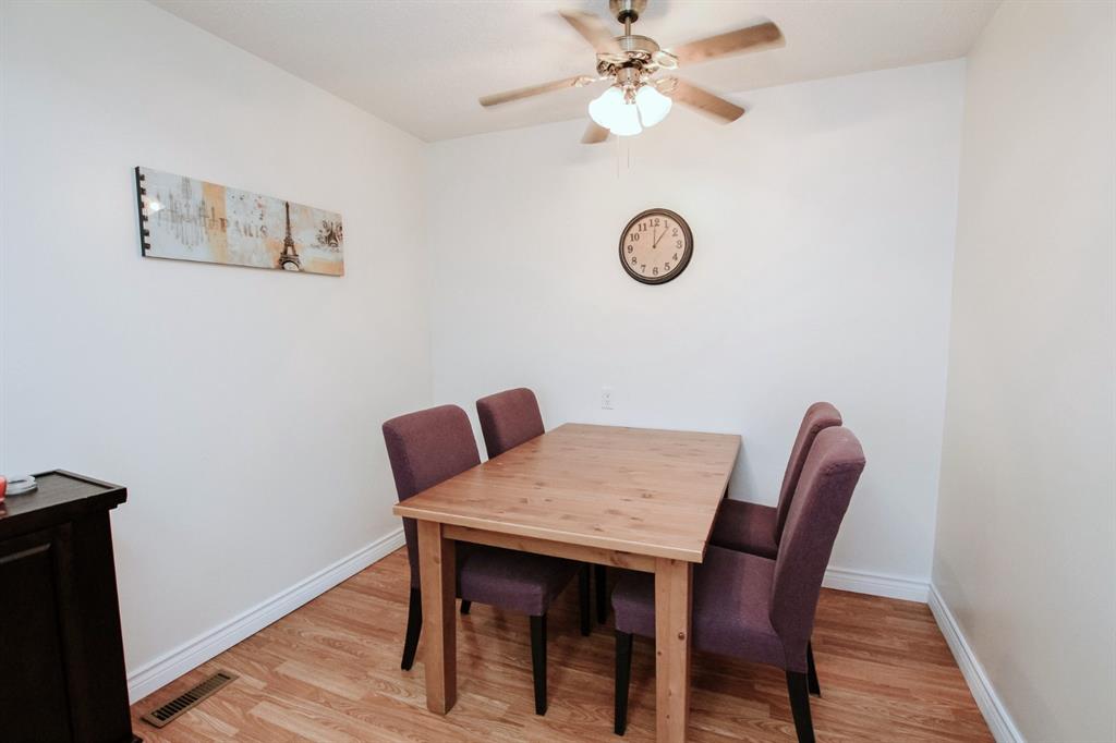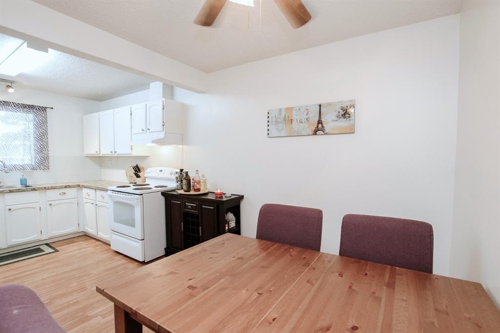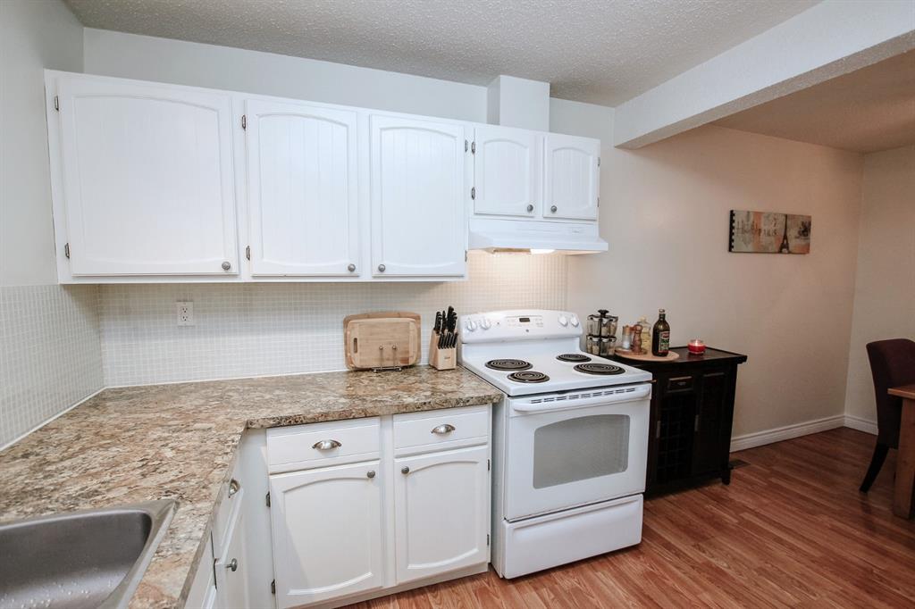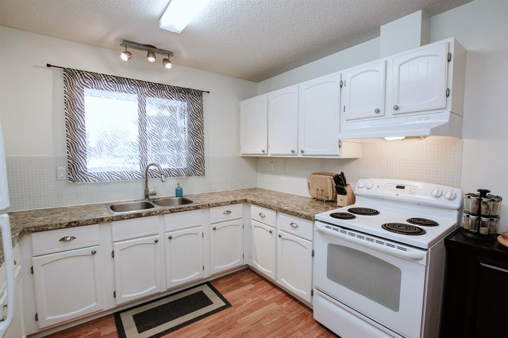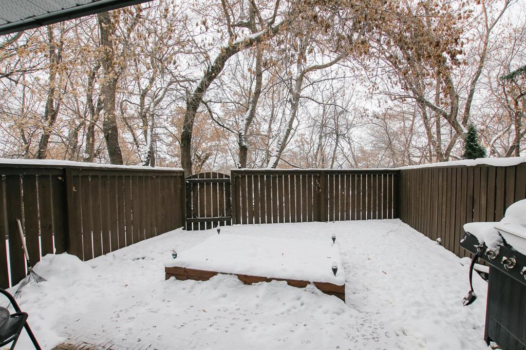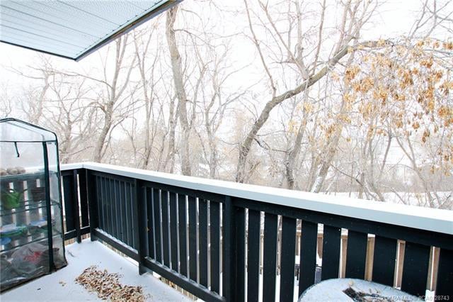 3 BEDROOM, 2 BATHROOM 6 LEVEL SPLIT TOWNHOUSE ~ 2 BALCONIES PLUS A WALK OUT BASEMENT PATIO ~ SUNNY SOUTH FACING BACKYARD THAT BACKS ONTO TREED RESERVE ~ Tons of space in this well planned, move in ready unit ~ Spacious entry with a coat closet welcomes you ~ The U-shaped offers a functional layout an offers plenty of white cabinets, full tile backsplash, wall pantry, large window above the sink and opens to the eat in dining space ~ The living room is a generous size and features sliding patio doors to a balcony that overlooks the backyard, trees and views of downtown ~ 2 generous sized bedrooms with ample closet space are located next to a 4 piece bathroom ~ The private primary bedroom is located on it's own level, can easily accommodate a king size bed plus furniture, has dual closets and sliding glass doors to the second balcony with more great views ~ The lower level offers another large family room with walk out access to the fully fenced south facing backyard ~ The basement level offers a 2 piece bathroom, laundry and tons of space for storage ~ Powered parking stall just outside your front door ~ Monthly condo fee is $450 and includes; common area maintenance, exterior insurance, professional management, reserve fund contributions, snow removal, garbage and recycle ~ Located close to multiple schools, Rec Centre (pool, arena, library, fitness facility) parks, and walking trails with easy access to all other amenities.
