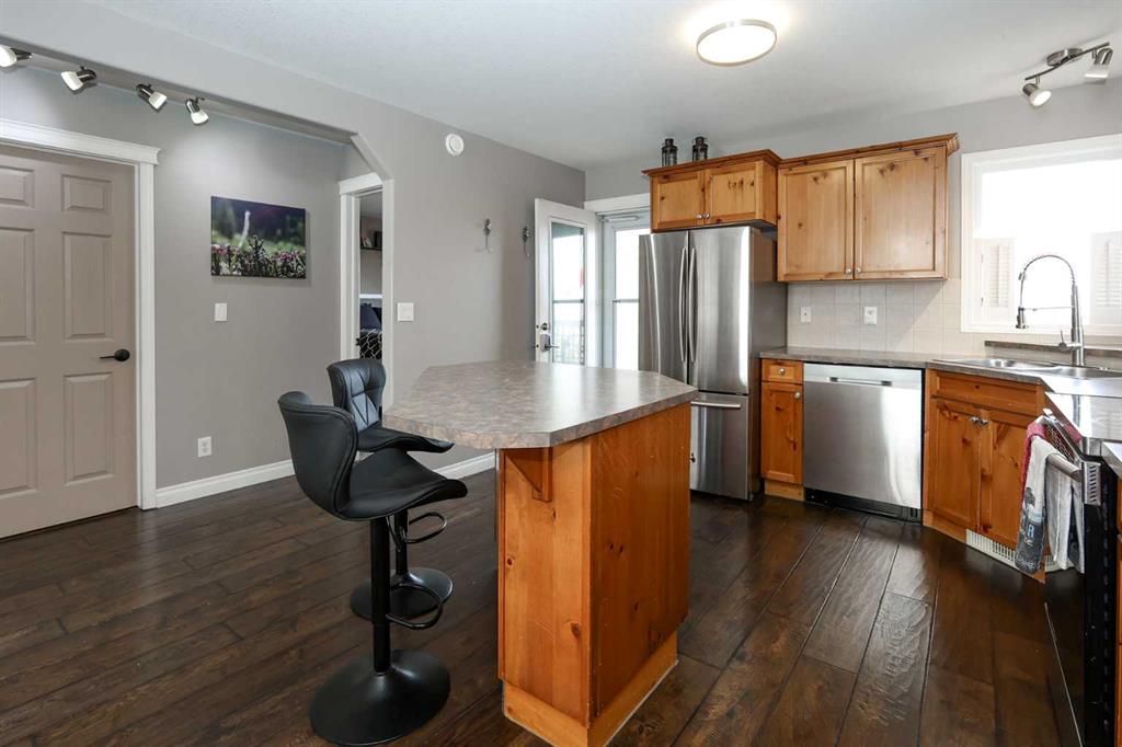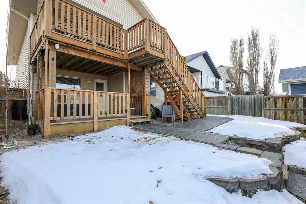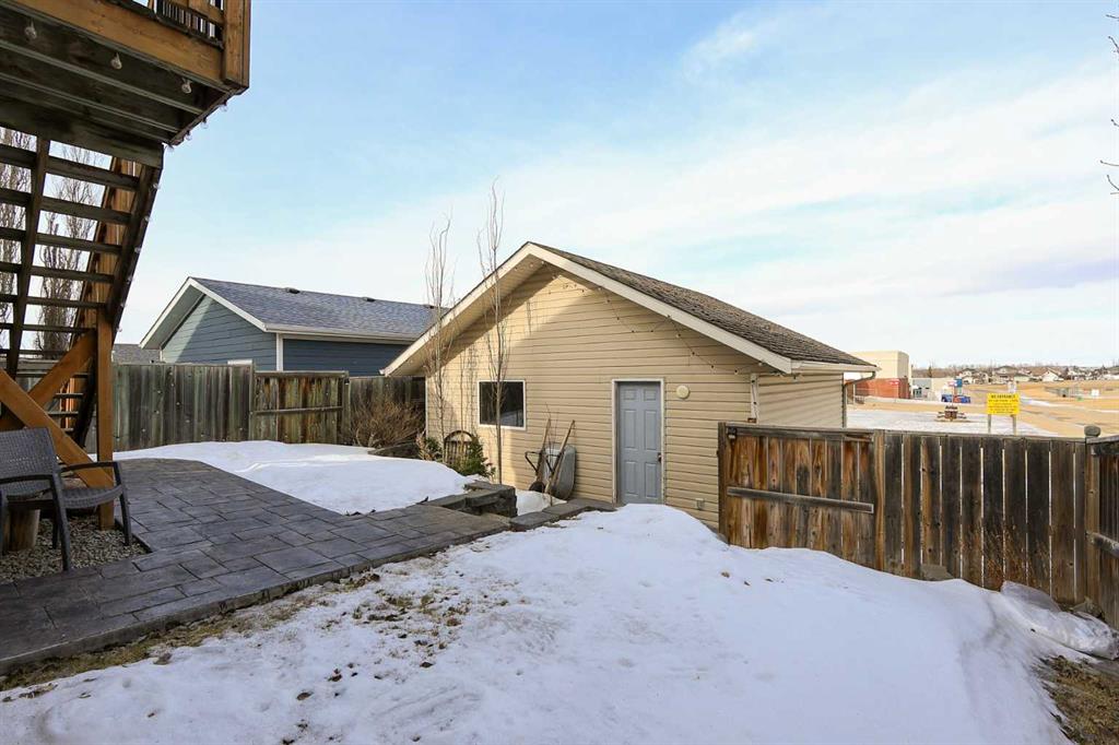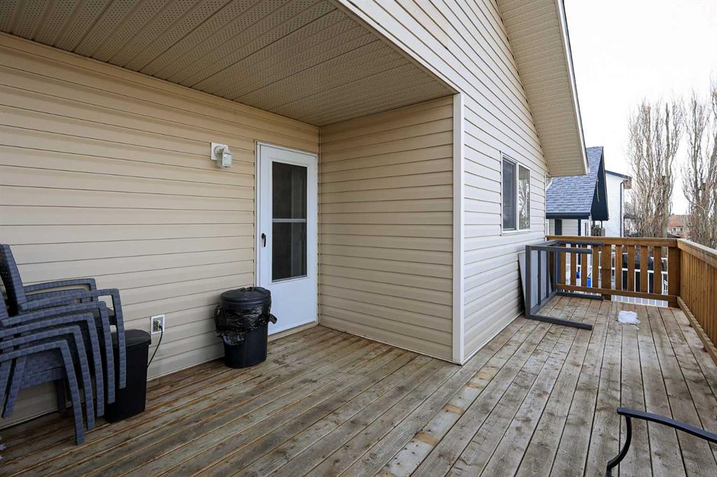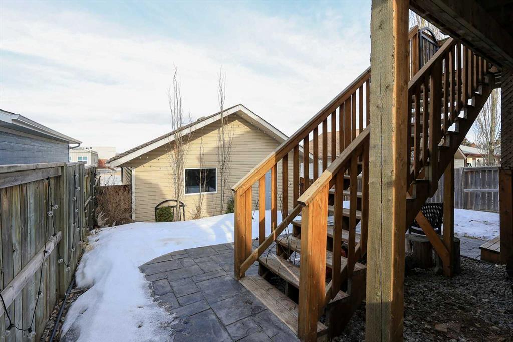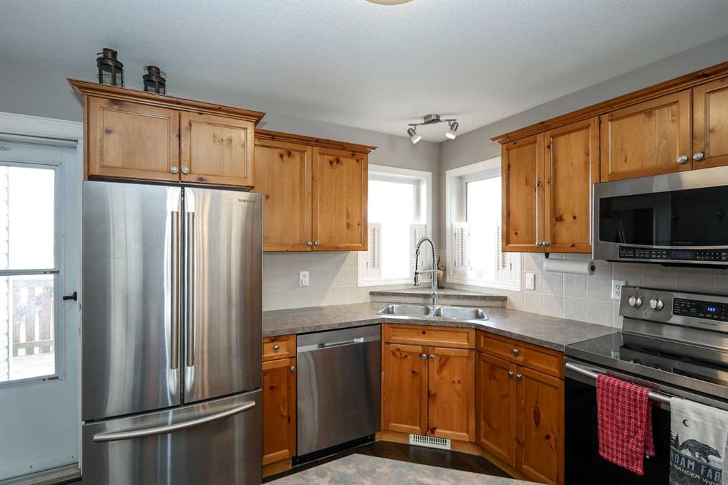 FULLY DEVELOPED 3 BEDROOM, 3 BATHROOM BI-LEVEL ~ WALKOUT BASEMENT ~ HEATED DOUBLE GARAGE & RV PARKING ~ FACING A GREEN SPACE & BACKING ONTO A PARK & SCHOOLS ~ Sunny south facing front yard with raised garden boxes with an irrigation system ~ Covered front veranda welcomes you and leads to a bright and spacious foyer with high ceilings ~ The living room features vaulted ceilings and a large south facing window that fills the space with natural light while offering beautiful park views ~ Architectural columns provide a visually appealing separation between the living and dining space while maintaining an open floor plan ~ The kitchen offers plenty of pine cabinets with crown moulding and built in wall pantry; ample counter space including an island with an eating bar; full tile backsplash; and a window above the sink that overlooks the deck and park ~ Garden door access to the partially covered upper deck that spans the entire width of the home, has a gas line, and offers park views ~ The primary bedroom can easily accommodate a king size bed, has ample closet space, and a 3 piece ensuite ~ Second main floor bedroom is also a generous size and is conveniently located next to the 4 piece main bathroom ~ The fully finished, walkout basement has large above grade windows, high ceilings and operational in-floor heating ~ Family room/den (currently being used as a home office) has board and batten wainscotting and opens to the rec room with plenty of space for a seating area and games table or home gym, plus a separate entry leading to a covered deck (with wiring roughed in for a hot tub), and the backyard ~ 3rd bedroom is conveniently located next to a 3 piece bathroom with a walk in shower ~ Laundry is located in it's own room, has a large window and tons of space for storage ~ The backyard is landscaped and fully fenced ~ HEATED 22' x22' detached garage with shelving, 220V wiring on it's own sub panel, and a workbench (seller will replace shingles on garage before possession) ~ RV parking beside the garage with an easy approach and paved back alley ~ Backing onto Meadowview Park, École Fox Run School and École Mother Theresa Catholic School ~ Easy access to walking trails, more great parks and playgrounds, shopping, dining, and the beach/Lakeshore Drive ~