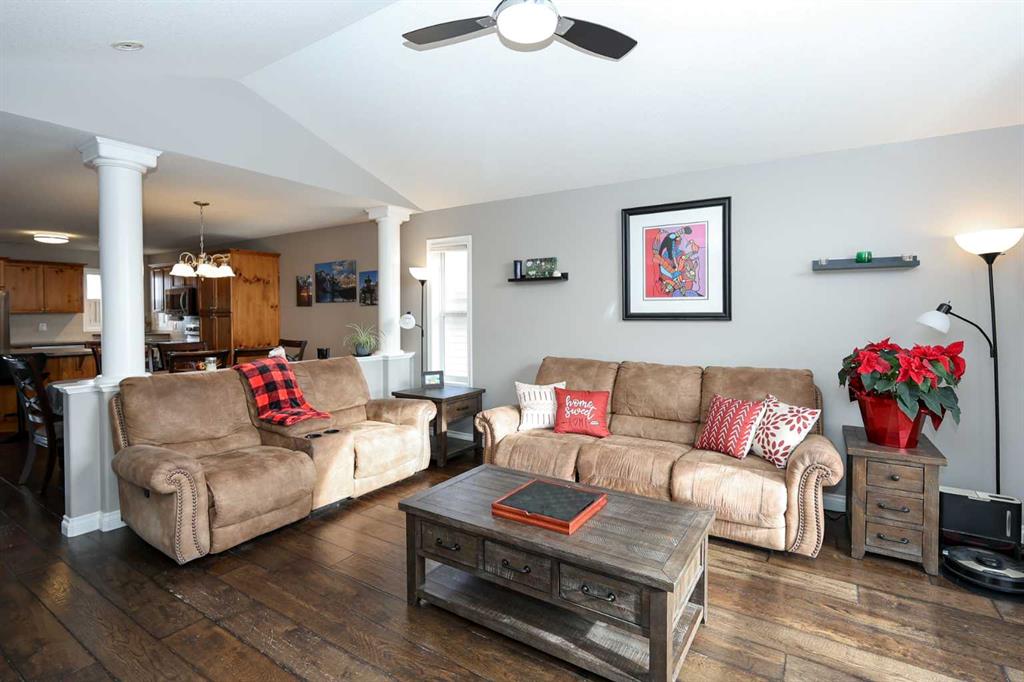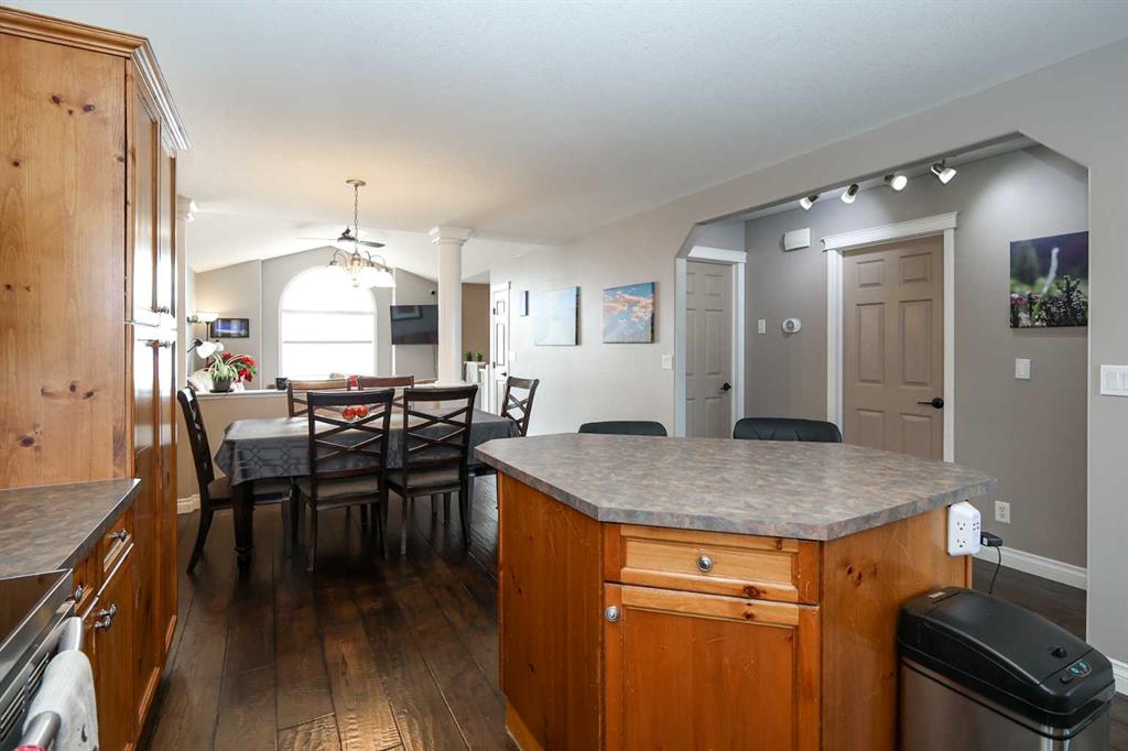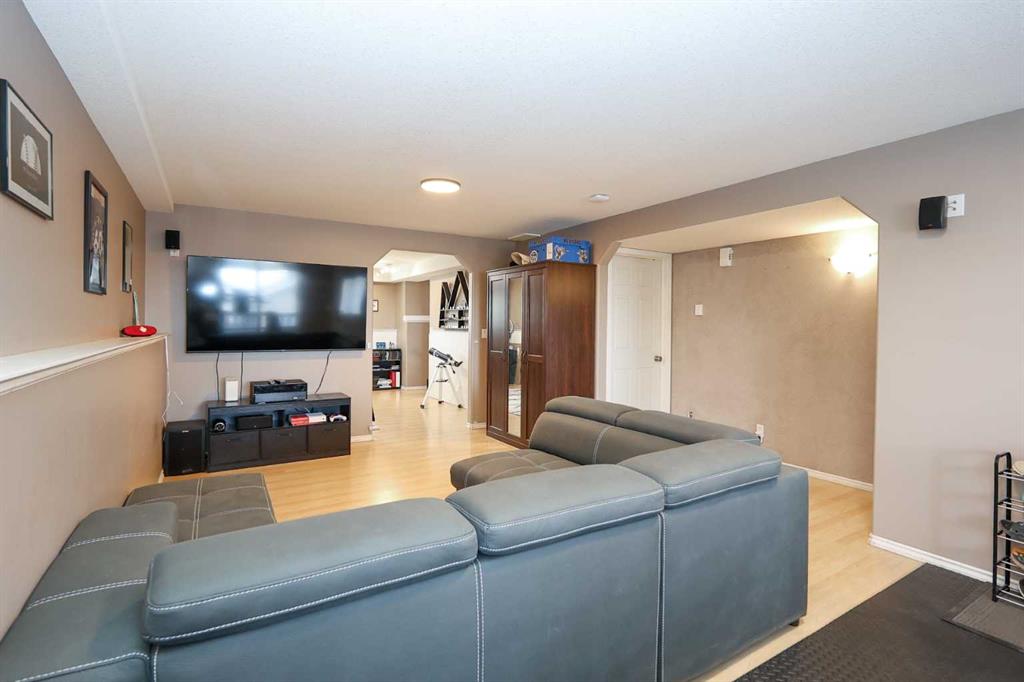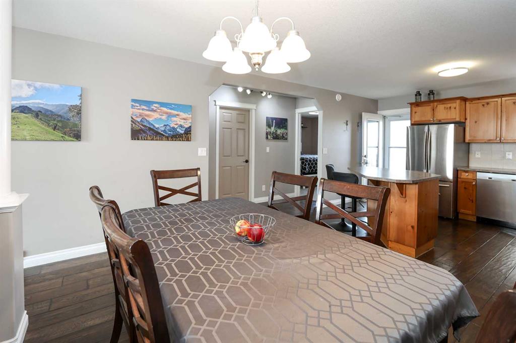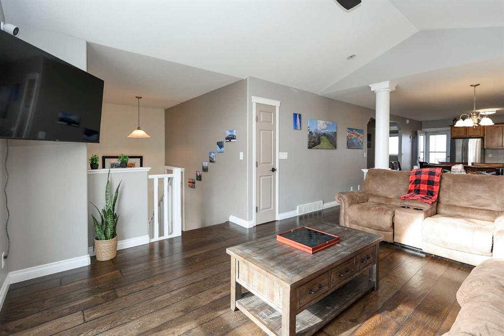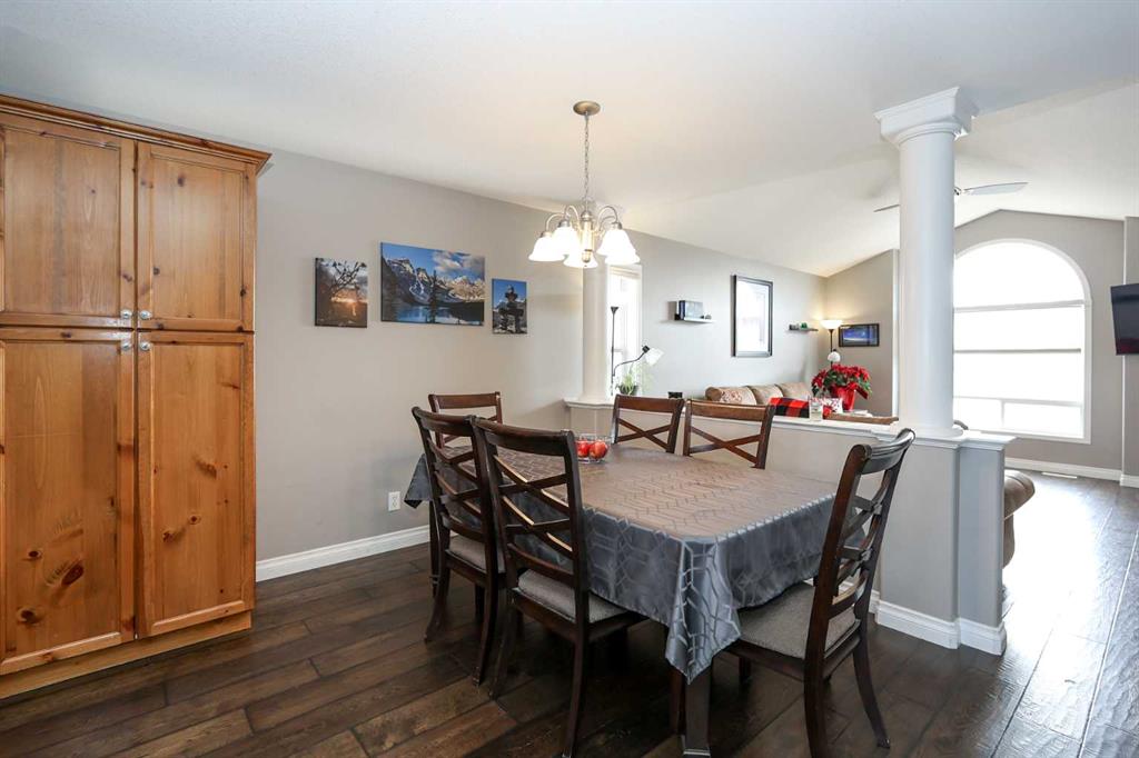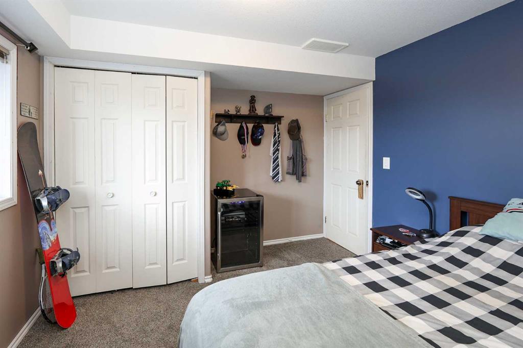 FULLY DEVELOPED 3 BEDROOM, 3 BATHROOM BI-LEVEL ~ WALKOUT BASEMENT ~ HEATED DOUBLE GARAGE & RV PARKING ~ FACING A GREEN SPACE & BACKING ONTO A PARK & SCHOOLS ~ Sunny south facing front yard with raised garden boxes with an irrigation system ~ Covered front veranda welcomes you and leads to a bright and spacious foyer with high ceilings ~ The living room features vaulted ceilings and a large south facing window that fills the space with natural light while offering beautiful park views ~ Architectural columns provide a visually appealing separation between the living and dining space while maintaining an open floor plan ~ The kitchen offers plenty of pine cabinets with crown moulding and built in wall pantry; ample counter space including an island with an eating bar; full tile backsplash; and a window above the sink that overlooks the deck and park ~ Garden door access to the partially covered upper deck that spans the entire width of the home, has a gas line, and offers park views ~ The primary bedroom can easily accommodate a king size bed, has ample closet space, and a 3 piece ensuite ~ Second main floor bedroom is also a generous size and is conveniently located next to the 4 piece main bathroom ~ The fully finished, walkout basement has large above grade windows, high ceilings and operational in-floor heating ~ Family room/den (currently being used as a home office) has board and batten wainscotting and opens to the rec room with plenty of space for a seating area and games table or home gym, plus a separate entry leading to a covered deck (with wiring roughed in for a hot tub), and the backyard ~ 3rd bedroom is conveniently located next to a 3 piece bathroom with a walk in shower ~ Laundry is located in it's own room, has a large window and tons of space for storage ~ The backyard is landscaped and fully fenced ~ HEATED 22' x22' detached garage with shelving, 220V wiring on it's own sub panel, and a workbench (seller will replace shingles on garage before possession) ~ RV parking beside the garage with an easy approach and paved back alley ~ Backing onto Meadowview Park, École Fox Run School and École Mother Theresa Catholic School ~ Easy access to walking trails, more great parks and playgrounds, shopping, dining, and the beach/Lakeshore Drive ~