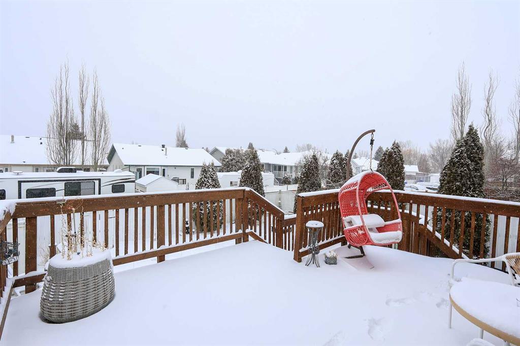 FULLY DEVELOPED 5 BEDROOM, 3 BATHROOM BI-LEVEL ~ DOUBLE ATTACHED GARAGE ~ SUNNY WEST FACING BACKYARD WITH A 2-TIERED DECK ~ CENTRAL AIR CONDITIONING ~ Mature landscaping in the front yard creates eye catching curb appeal ~ Welcoming tile foyer with high ceilings and convenient access to the attached garage ~ Vaulted ceilings create a feeling of spaciousness ~ The living room offers floor to ceiling bay window that over look the front yard and fill the space with natural light, has a lighted niche, and space for a formal dining table or extra seating ~ The kitchen offers an abundance of oak cabinets, ample counter space, full tile backsplash, window above the sink, a spacious wall pantry, and plenty of space for a large dining table and chairs ~ Garden door access to the sunny west facing 2-tiered deck ~ The primary bedroom can easily accommodate a king size bed plus multiple pieces of large furniture, has a walk in closet and a 3 piece ensuite ~ 2 additional bedrooms are both a generous size and are conveniently located across from a 4 piece bathroom ~ The fully finished basement features large above grade windows and operational in floor heat ~ Generous size family room with space for a games table opens to a media room with built in shelving and sconce lighting ~ 2 huge bedrooms both have ample closet space ~ 4 piece bathroom with an oversized vanity is located next to the laundry room ~ Shingles replaced within the last 3 years ~ The backyard is fully fenced, landscaped with mature trees and shrubs, has a storage shed below the deck, tons of yard space, and back alley access ~ Double attached garage is insulated, finished with painted drywall, and has a man door to the side/backyard ~ Located close to schools, parks, playgrounds and walking trails with easy access to all other amenities.