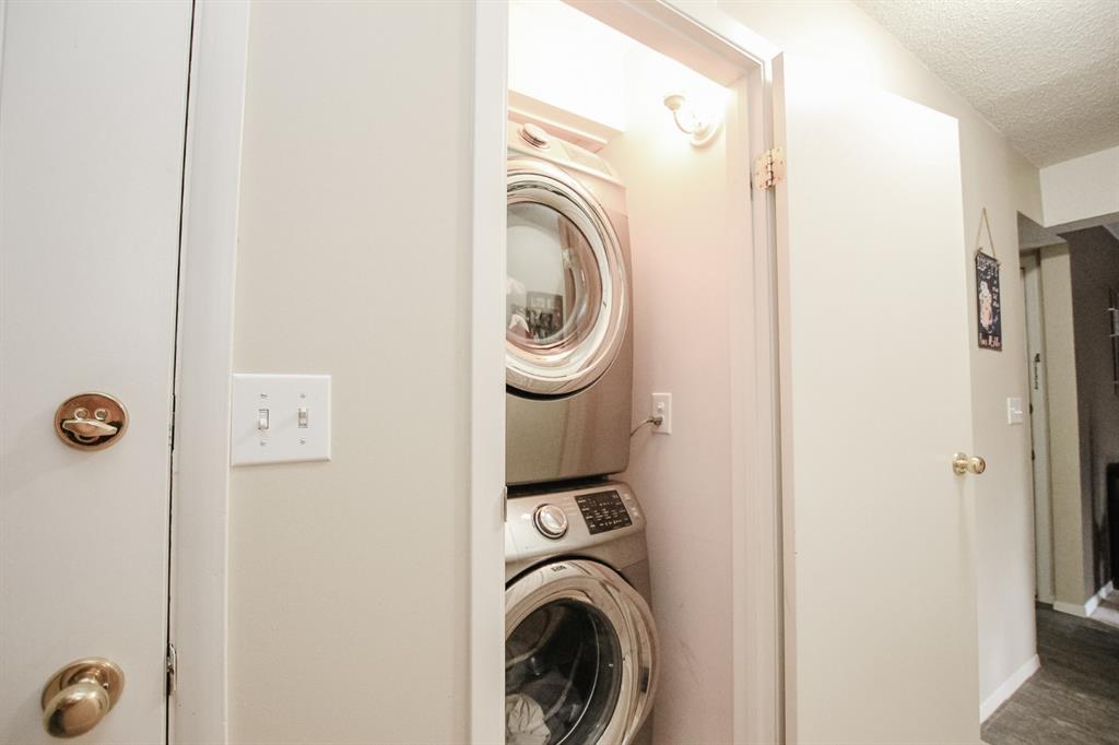 TOP FLOOR 2 BDRM, 1 BATH CONDO ~ WEST FACING BALCONY ~ CLOSE TO AMENITIES ~ The spacious living room offers sliding door access to a sunny west facing deck with new (2019) duradek finish ~ The dining space offers a west facing window that fills the space with natural light, and opens to the galley style kitchen with plenty of white cabinets including a wall pantry, ample counter space, tile backsplash and white appliances ~ The spacious primary bedroom is filled with natural light and can easily accommodate a king bed plus multiple pieces of furniture ~ Second bedroom is also a generous size ~ 4 piece bathroom conveniently located just off the bedrooms ~ In suite laundry with newer front load washer and dryer ~ In suite storage room ~ Assigned parking stall ~ Monthly condo fee is $381.32 and includes; insurance, exterior maintenance, landscaping and snow removal, garbage removal, reserve fund contributions, heat, sewer and water ~ Excellent location with easy access to the hospital, Red Deer Polytechnic, and downtown with tons of shopping and dining, schools, parks and walking trails all steps from your door.