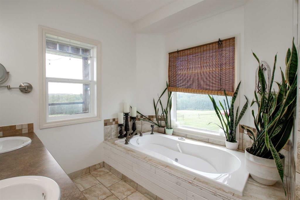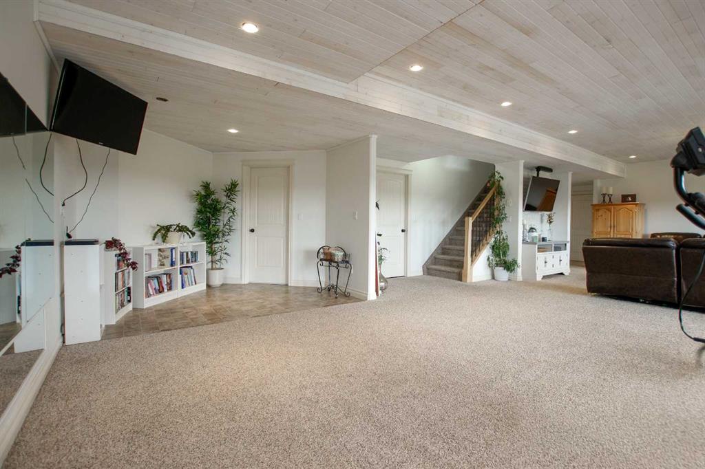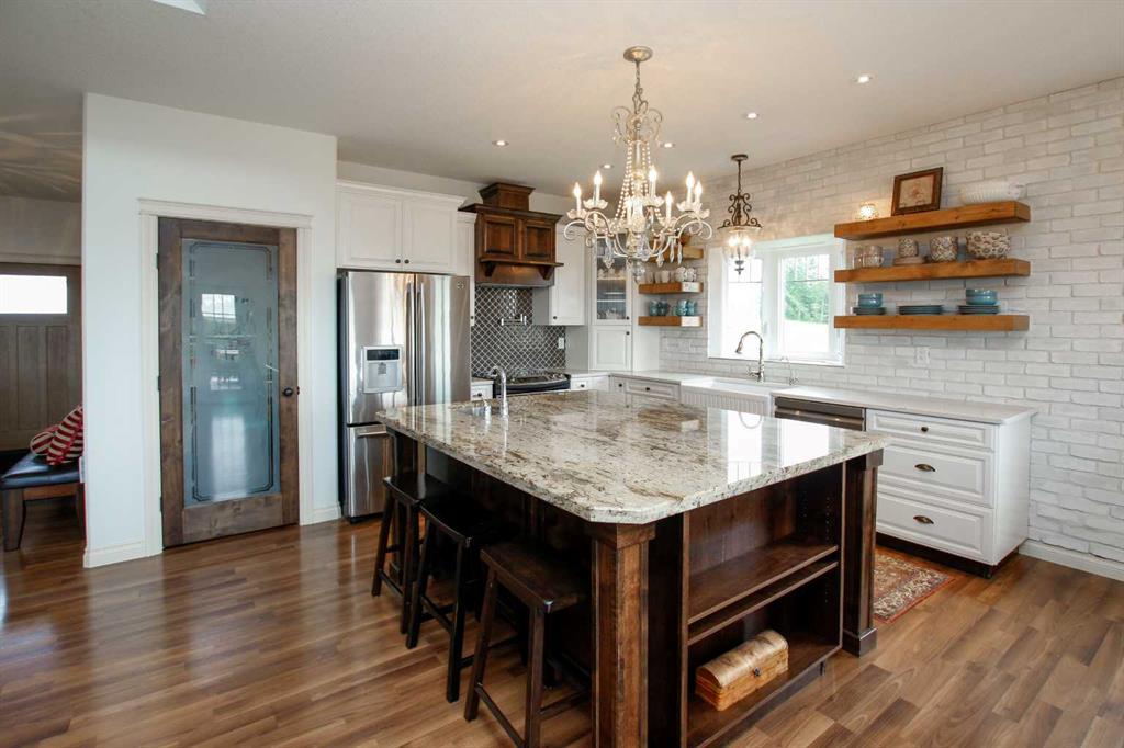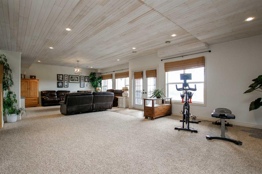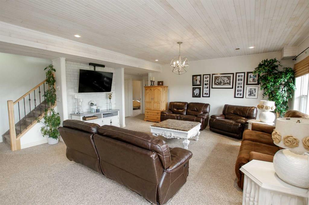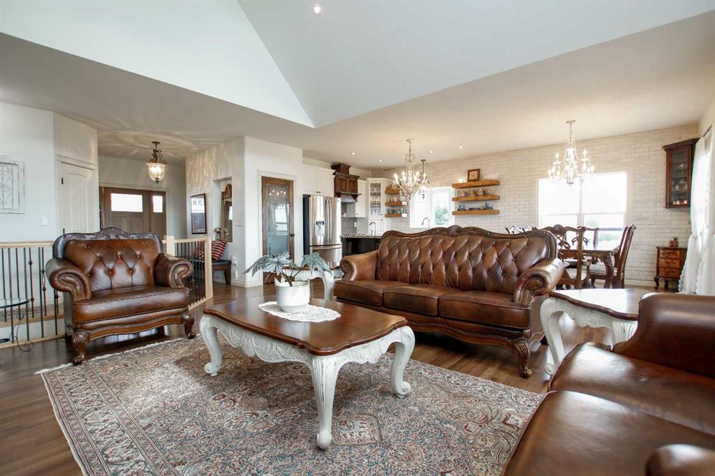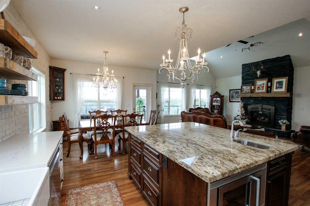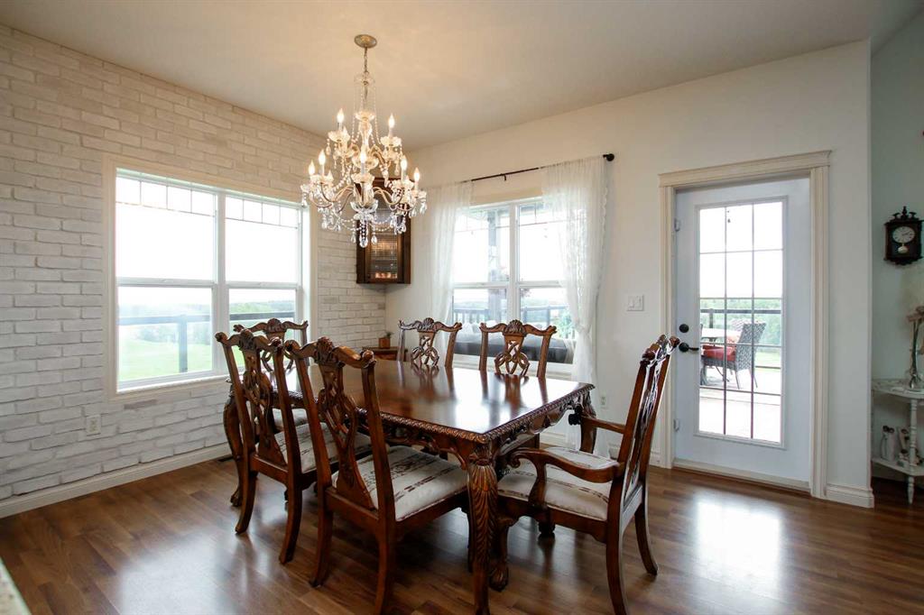 FULLY DEVELOPED WALKOUT BUNGALOW ON 6.67 ACRES ~ VIEWS OF GULL LAKE ~ SET UP FOR HORSES ~ HEATED TRIPLE GARAGE ~ NEW WINDOWS AND SHINGLES (2025) ~ Hardie Board exterior and an expansive covered front veranda welcome you and lead to the foyer with tile floors, a large closet, and room for a bench and table ~ Open concept main floor layout is complemented by an abundance of windows that fill the space with natural light and offer beautiful views of the rolling hills and Gull Lake ~ The kitchen comes well equipped with an abundance of custom cabinetry, ample stone countertops, massive island with an eating bar and second sink, full tile backsplash and a brick feature wall ~ Easily host large gatherings in the spacious dining room with garden door access to the partially covered wrap around deck with a BBQ gas line, composite deck boards, and aluminum railings ~ The living room features cathedral vaulted ceilings and a cozy fireplace with a raised hearth, mantle and floor to ceiling stacked stone surround ~ The primary bedroom oasis can easily accommodate a king size bed plus multiple pieces of furniture, has French doors to the deck, a generous size walk in closet with floor to ceiling organizers, and a spa like ensuite featuring an extra deep air tub with a view, walk in tile shower, and 2 sinks ~ 2nd bedroom has a large window overlooking the front veranda ~ Convenient main floor laundry room w/built in cabinets & plenty of counter space ~ 2 piece bath ~ Mud room with built in cabinets, a coat closet has access to the attached garage ~ Lighted stairs lead to the fully finished walkout basement with high ceilings and operational in floor heat ~ Massive family room has space for a sitting area, games area, home gym and more, with tons of floor to ceiling windows and garden door access to the partially covered lower patio, hot tub and backyard ~ 2 large bedrooms are perfect for teens or guests with plenty of space for a king size bed and furniture ~ 5 piece bathroom has an oversized vanity with dual sinks and extra storage cabinets, and a separate tub/shower and toilet ~ Large utility room, and flex room offer tons of storage space ~ 28/26' L x 42' W attached garage is insulated, heated, finished with OSB, has 3 overhead doors & 2 man doors ~ Other great features include; Water softener, central vacuum, Complete window glass replacement with energy-efficient, argon-filled double-pane units ~ Outside there is plenty of space with 6.67 acres of land, beautiful views plus a fully fenced pasture with a barn - perfect for horses ~ Minutes to Parkland Beach with public beach access, boat launch, golf course and more, easy access to Rimbey and Bentley.