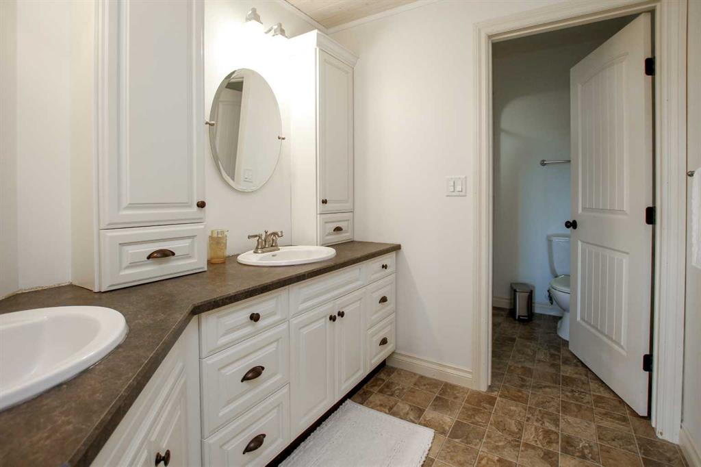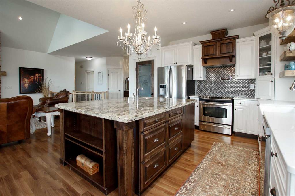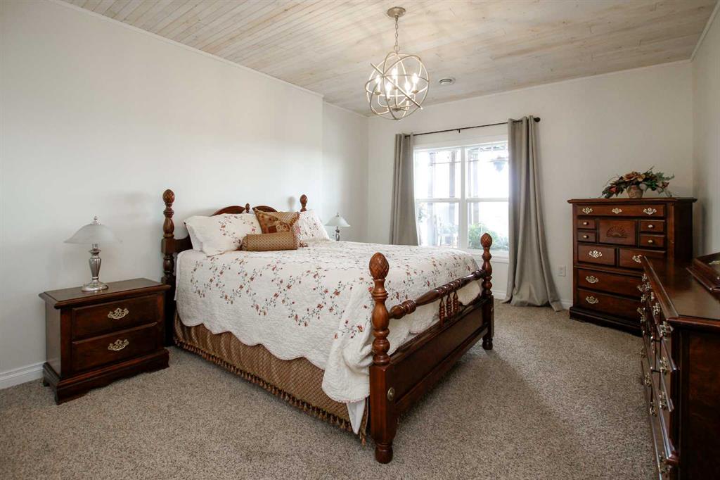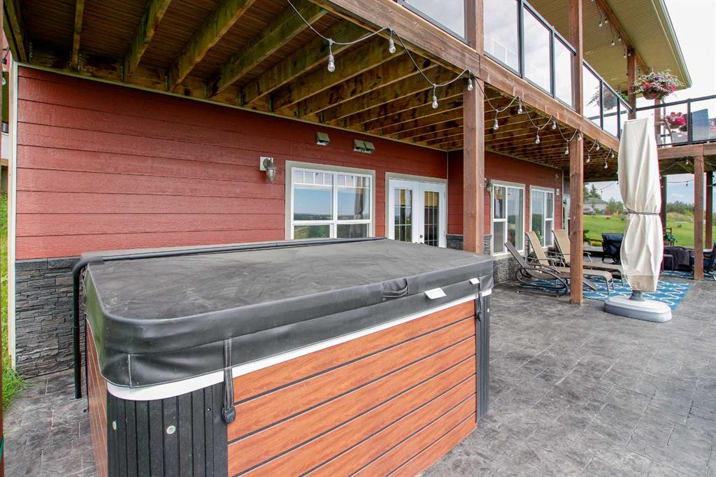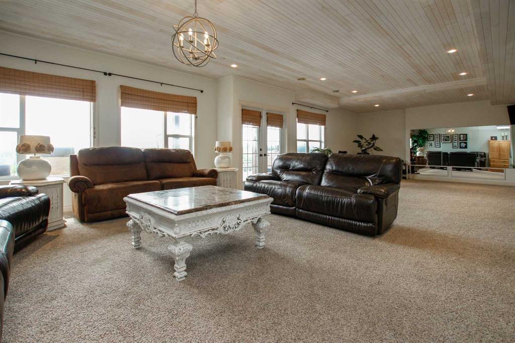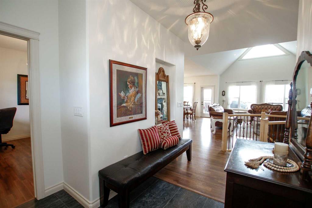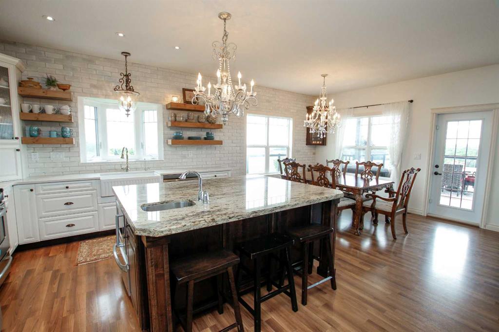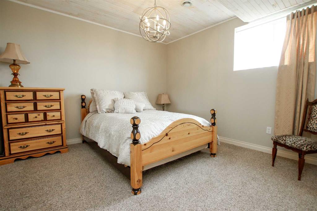 FULLY DEVELOPED WALKOUT BUNGALOW ON 6.67 ACRES ~ VIEWS OF GULL LAKE ~ SET UP FOR HORSES ~ HEATED TRIPLE GARAGE ~ NEW WINDOWS AND SHINGLES (2025) ~ Hardie Board exterior and an expansive covered front veranda welcome you and lead to the foyer with tile floors, a large closet, and room for a bench and table ~ Open concept main floor layout is complemented by an abundance of windows that fill the space with natural light and offer beautiful views of the rolling hills and Gull Lake ~ The kitchen comes well equipped with an abundance of custom cabinetry, ample stone countertops, massive island with an eating bar and second sink, full tile backsplash and a brick feature wall ~ Easily host large gatherings in the spacious dining room with garden door access to the partially covered wrap around deck with a BBQ gas line, composite deck boards, and aluminum railings ~ The living room features cathedral vaulted ceilings and a cozy fireplace with a raised hearth, mantle and floor to ceiling stacked stone surround ~ The primary bedroom oasis can easily accommodate a king size bed plus multiple pieces of furniture, has French doors to the deck, a generous size walk in closet with floor to ceiling organizers, and a spa like ensuite featuring an extra deep air tub with a view, walk in tile shower, and 2 sinks ~ 2nd bedroom has a large window overlooking the front veranda ~ Convenient main floor laundry room w/built in cabinets & plenty of counter space ~ 2 piece bath ~ Mud room with built in cabinets, a coat closet has access to the attached garage ~ Lighted stairs lead to the fully finished walkout basement with high ceilings and operational in floor heat ~ Massive family room has space for a sitting area, games area, home gym and more, with tons of floor to ceiling windows and garden door access to the partially covered lower patio, hot tub and backyard ~ 2 large bedrooms are perfect for teens or guests with plenty of space for a king size bed and furniture ~ 5 piece bathroom has an oversized vanity with dual sinks and extra storage cabinets, and a separate tub/shower and toilet ~ Large utility room, and flex room offer tons of storage space ~ 28/26' L x 42' W attached garage is insulated, heated, finished with OSB, has 3 overhead doors & 2 man doors ~ Other great features include; Water softener, central vacuum, Complete window glass replacement with energy-efficient, argon-filled double-pane units ~ Outside there is plenty of space with 6.67 acres of land, beautiful views plus a fully fenced pasture with a barn - perfect for horses ~ Minutes to Parkland Beach with public beach access, boat launch, golf course and more, easy access to Rimbey and Bentley.