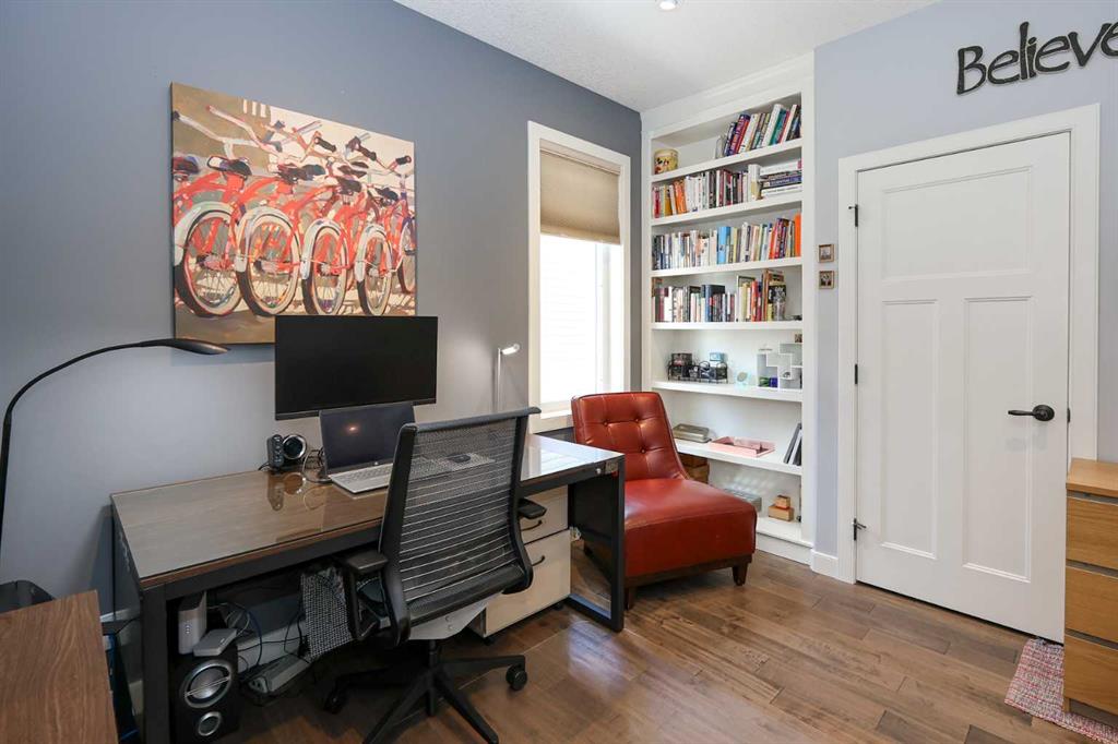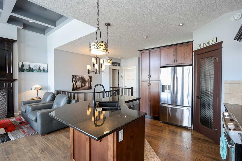 CUSTOM BUILT WALKOUT BUNGALOW LOADED WITH UPGRADES ~ 3 BEDROOMS + OFFICE, 3 BATHROOMS & OVER 1320 SQ. FT. ABOVE GRADE ~ BACKING ON TO WALKING TRAILS & GREEN SPACE WITH UNOBSTRUCTED VIEWS ~ Pride of ownership is evident in this well cared for home ~ Covered front veranda welcomes you and leads to a spacious sun filled foyer with a large coat closet and convenient access to the attached garage ~ Open concept main floor layout complemented by high ceilings and hardwood flooring offers a feeling of spaciousness ~ The living room features 12 ft. coffered ceilings, floor to ceiling windows with unobstructed views and a stunning gas fireplace with custom millwork and a tile surround ~ The kitchen offers an abundance of wood cabinets, granite counter tops including an island with an undermount sink, an eating bar with pendant lights above , full tile backsplash. walk in corner pantry, built in wall pantry, tons of recessed lighting and stainless steel appliances ~ The dining space can easily host large gatherings and offers garden door access to the massive deck featuring a BBQ gas line, aluminum railings, frosted panels for privacy and beautiful views ~ The private owner's suite can easily accommodate a king size bed plus multiple pieces of large furniture, has a massive walk in closet with built in organizers and a spa like 5 piece ensuite with dual sinks, air tub, separate shower and a water closet ~ 2 piece main floor bath with access to the conveniently located laundry closet ~ Frosted French doors lead to the office, thoughtfully finished with built in shelving and a closet ~ Open staircase leads to the walkout basement offering in floor heat, 9 ft. ceilings and large above grade windows ~ The family room offers tons of space with a cozy media space featuring built in shelving, a stone faced fireplace, wet bar with wood cabinets, stone counters, tile backsplash and under cabinet lighting, and still plenty of space for a games area ~ Garden door access off the family room leads to a covered patio and backyard ~ Two large bedrooms are perfect for teenagers or guests, both with ample closet space ~ 4 piece bathroom with an oversized vanity with stone countertops and a large linen closet ~ Other great features include; Newer Hot water Heater, newer central air conditioning, fresh paint throughout, newer garage heater, wired for sound with speakers throughout, central vacuum with attachments, non smoking home, tons of built in's and custom millwork throughout ~ The heated double attached garage has a floor drain, dehumidifier, hot and cold taps with a wash tub, built in shelving, man door to the side yard and an aggregate driveway ~ The backyard is landscaped, has a composite shed, is fully fenced with vinyl fencing and has direct access to the green belt and walking trails behind ~ Excellent location in a desirable neighbourhood, close to walking trails, parks, playgrounds, shopping, with easy access to all other amenities.