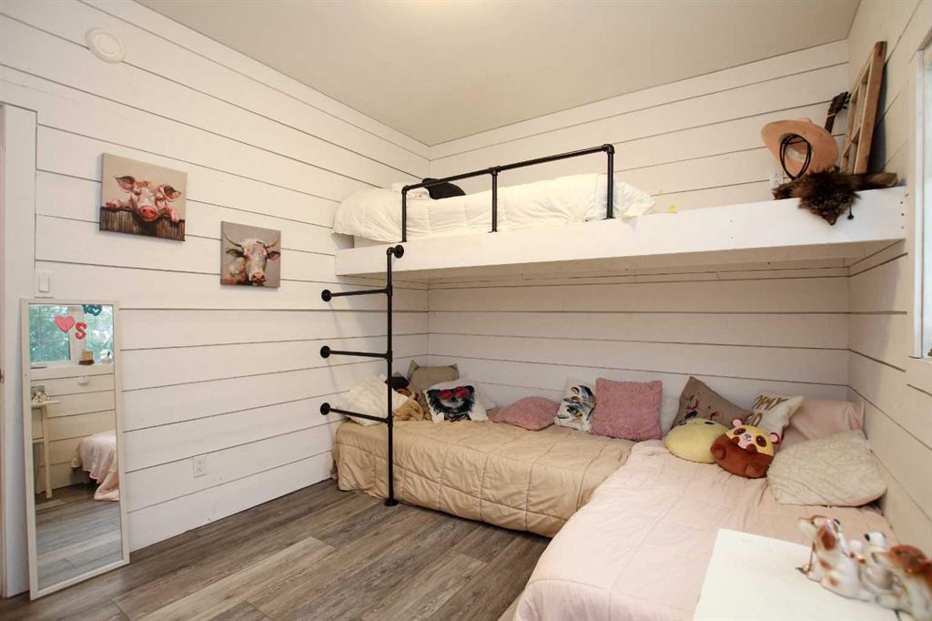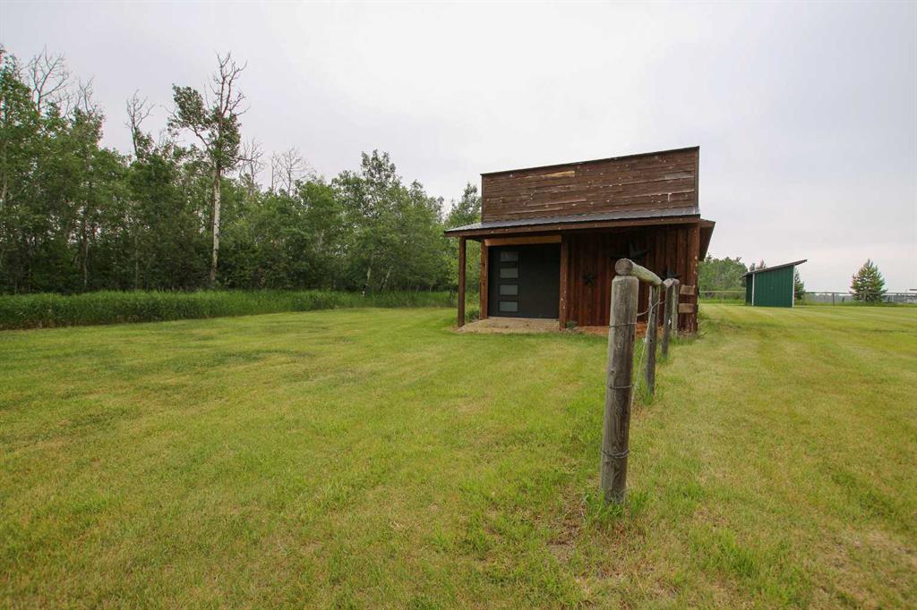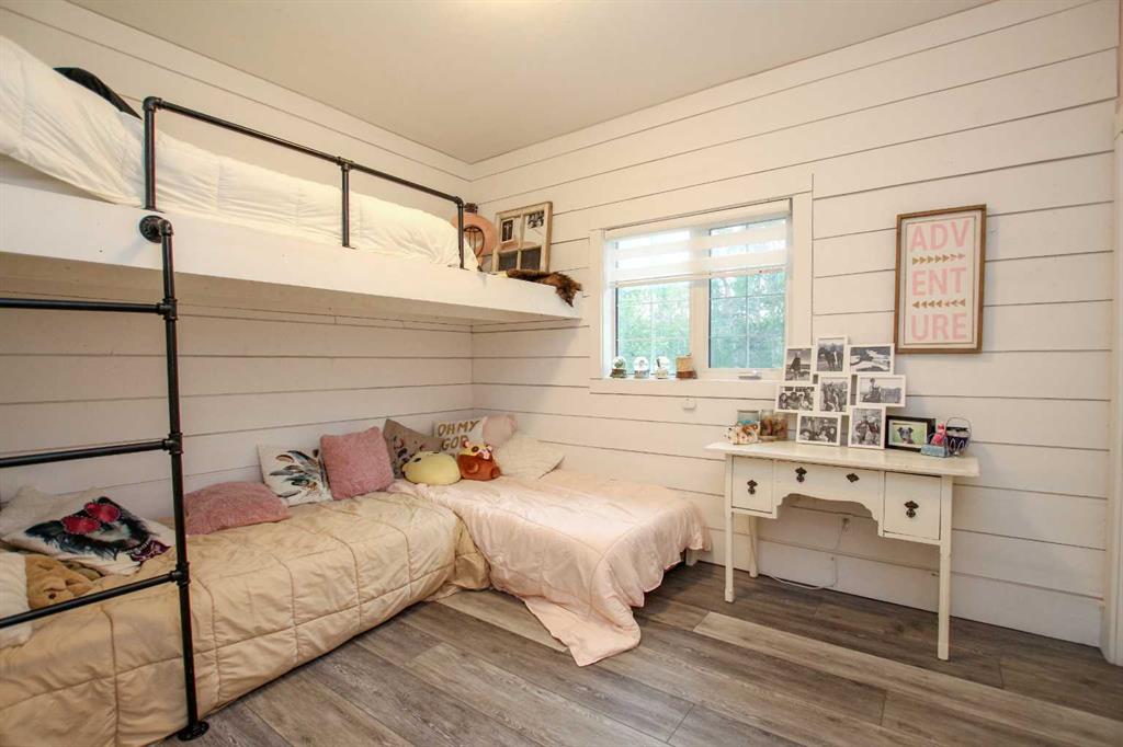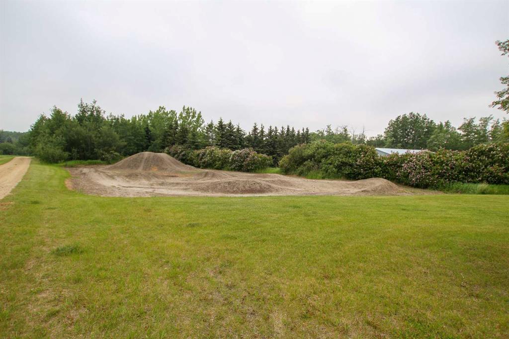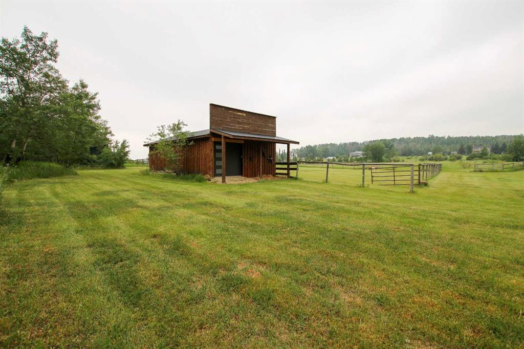 2,316 SQ. FT. BUNGALOW LOCATED ON 12.16 ACRES JUST MINUTES EAST OF SYLVAN ~ POTENTIAL TO SUBDIVIDE ~ OVERSIZED TRIPLE DETACHED GARAGE + NUMEROUS OUTBUILDINGS ~ SET UP FOR HORSES W/CORRALS, FENCING, SHELTER & WATERER ~ 42' x 7' covered front veranda welcomes you to this well cared for home ~ Open concept main floor layout is complemented by vinyl plank flooring and large windows offering tons of natural light ~ Double sided stone fireplace with a raised hearth and mantle separate the living and dining rooms ~ The kitchen offers a functional layout with plenty of cabinets, ample stone counter space including a large island with an eating bar, window above the sink overlooking the backyard and a large walk in pantry with floor to ceiling shelving ~ Easily host large gatherings in the dining room with garden doors access to the rear patio ~ The private primary bedroom is a generous size and can easily accommodate a king size bed with ample room for a sitting area, has a spacious walk in closet with built in shelving and a 5 piece ensuite with dual sinks, a walk in shower, and a jetted soaker tub ~ 3 additional bedrooms are all a generous size and have ample closet space ~ Updated 4 piece bathroom is centrally located, has a soaker tub, glass doors and a tile surround ~ Laundry is located in it's own room and has built in cabinets and a folding counter ~ Mud room has a separate entry with easy access to the triple detached garage and driveway ~ Treed fire pit area has a bunk house with power and large windows ~ Double detached garage/shop has an overhead door, and power ~ Horse barn, corrals, shelter and riding arena with horse waterer ~ Horseshoe pits, zip line and a huge dirt bike track ~ Preliminary subdivision plans have already been discussed and mapped with the county, showing potential for up to 6 acreages or 16 smaller parcels (subject to county approval). A solid opportunity for investors, developers, or buyers looking to establish a business or multi-use property ~ Located in Valley Meadows subdivision, just minutes east of Sylvan Lake with pavement to the driveway.