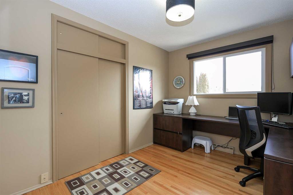 IMMEDIATE POSSESSION AVAILABLE ~ FULLY DEVELOPED 4 BEDROOM, 2 BATHROOM BUNGALOW IN GRANDVIEW ~ HEATED DOUBLE DETACHED GARAGE ~ East facing front veranda welcomes you and leads to a sunny foyer ~ The living room features hardwood flooring and a large picture window that overlooks the front yard ~ Hardwood floors continue into the dining room where you can easily host large gatherings ~ The kitchen offers an abundance of light stained cabinets, ample counter space including a raised eating bar, full tile backsplash, stainless steel appliances and a large west facing window that overlooks the backyard ~ Rear entry just off the kitchen offers easy access to the basement, rear patio/backyard and the garage ~ Huge primary bedroom with hardwood flooring and tons of natural light can easily accommodate a king size bed plus multiple pieces of furniture or a sitting area, and features mirrored closets ~ 4 piece main bathroom features an air tub ~ Second main flor bedroom is also a generous size ~ The fully finished basement offers a spacious family room with built in cabinets, 2 large bedrooms (one with a built in desk), a den/flex room with a closet, and a 3 piece bathroom with laundry ~ New shingles in 2023 ~ The fully fenced backyard is landscaped with mature trees, shrubs and perennials, and has plenty of grassy yard space ~ 26' L x 24' W detached garage is insulated, finished with painted drywall and has built in shelving ~ Gravel parking pad behind the garage has space for at least two vehicles ~ Centrally located in a mature neighbourhood, walking distance to all amenities, close to parks and walking trails, and easy access to downtown ~ Pride of ownership shines in this well cared for home!