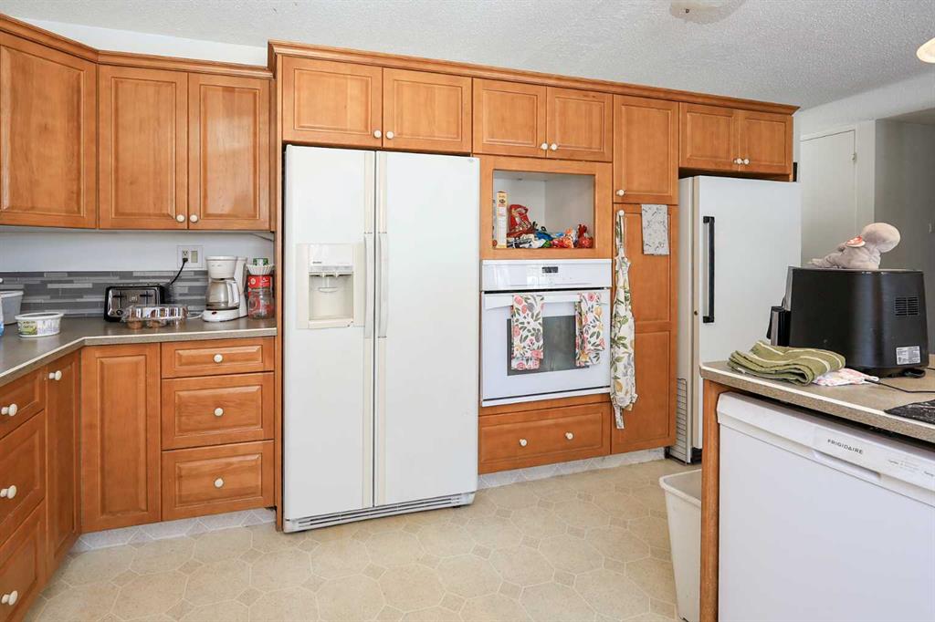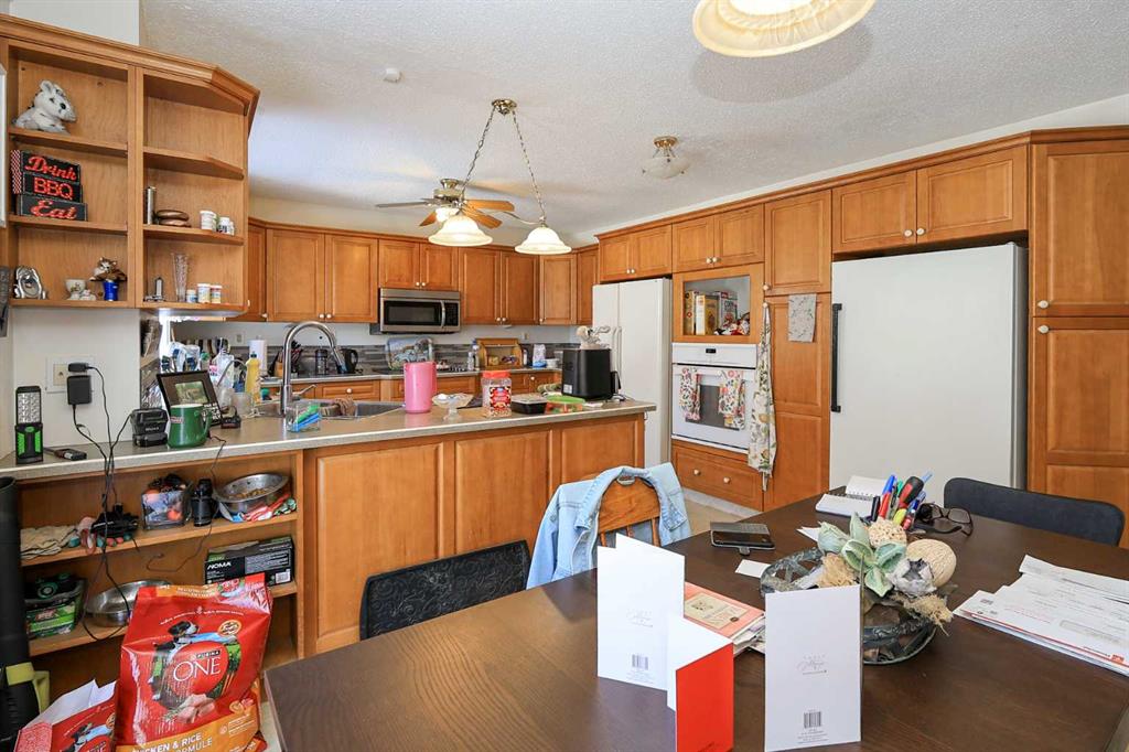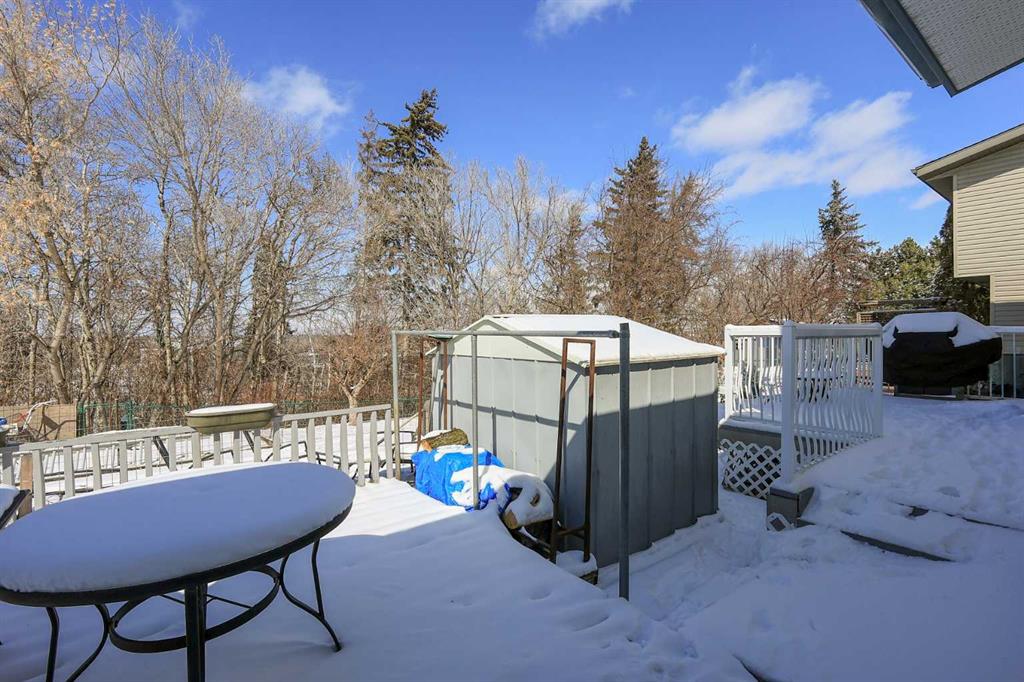 BACKING ONTO A TREED RESERVE WITH NO NEIGHBOURS BEHIND ~ 4 BEDROOM, 3 BATHROOM 2-STOREY WITH OVER 1780 SQ. FT. ABOVE GRADE ~ 22' L X 20' W ATTACHED GARAGE ~ Stucco exterior and a large south facing covered front veranda offer eye catching curb appeal ~ The living room features hardwood flooring and large south facing windows that overlook the veranda and front yard ~ The kitchen offers a functional layout with an abundance of oak cabinets, tons of counter space, full tile backsplash, large windows with treed views, and a counter height eating bar ~ Easily host large gatherings in the dining room with a built in China cabinet, and sliding door patio doors to the multi tiered deck and backyard ~ Conveniently located main floor laundry is just off the kitchen, has built in cabinets, and connects to the 2 piece main floor bathroom ~ A generous size family room with hardwood floors and high ceilings features a cozy brick faced fireplace and another set of sliding patio doors to the deck and backyard ~ The primary bedroom can easily accommodate a king size bed plus multiple pieces of furniture, has a walk-in closet, and a 3 piece ensuite with a walk-in shower ~ 3 additional bedrooms on the upper level are all a generous size with ample closet space (two walk-in closets) ~ 4 piece bathroom with a jetted tub and an oversized vanity ~ The unfinished basement offers plenty of storage space and excellent potential for future development ~ 22' L x 20' W attached garage is insulated, finished with drywall, and has a man door to the side/backyard ~ The fully fenced backyard overlooks mature trees, has fruit trees and shrubs, and plenty of yard space ~ Walking trail that connects to Red Deer's extensive Waskasoo trail system just outside your front door ~ Excellent location; close to multiple schools, parks, playgrounds, Red Deer Poly, Heritage Ranch, Bower Ponds, easy access to downtown, the hospital and highway access ~ With generous space in an established neighbourhood, this home offers a great opportunity to update and make it your own.