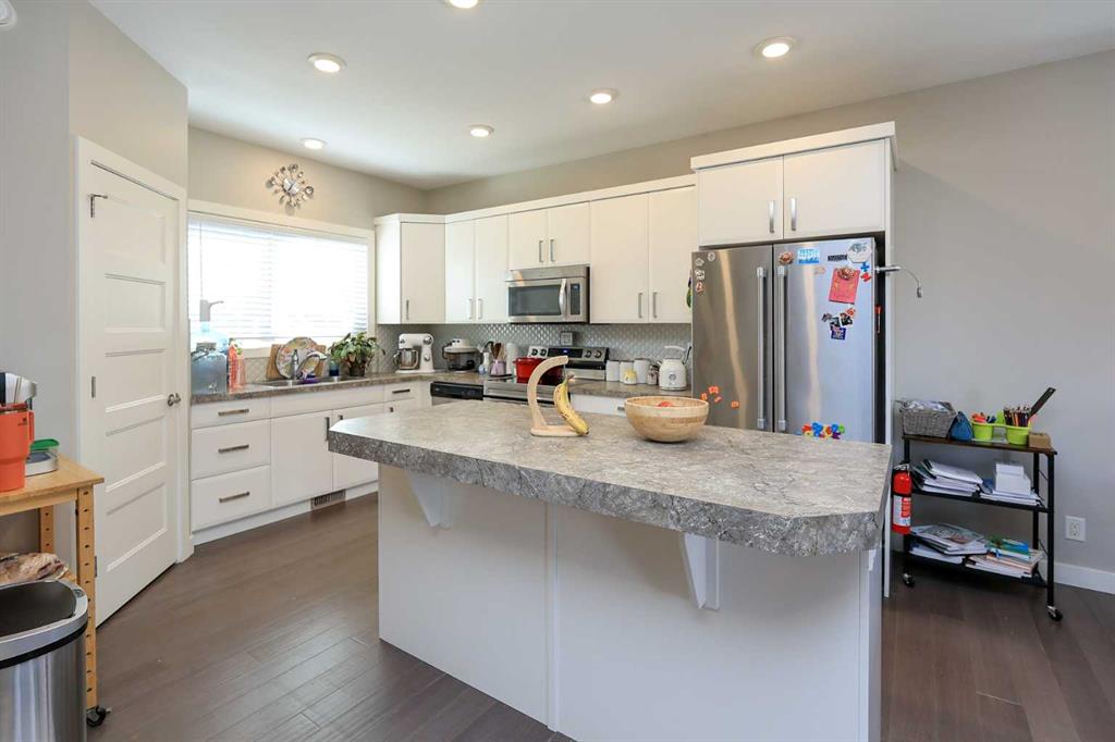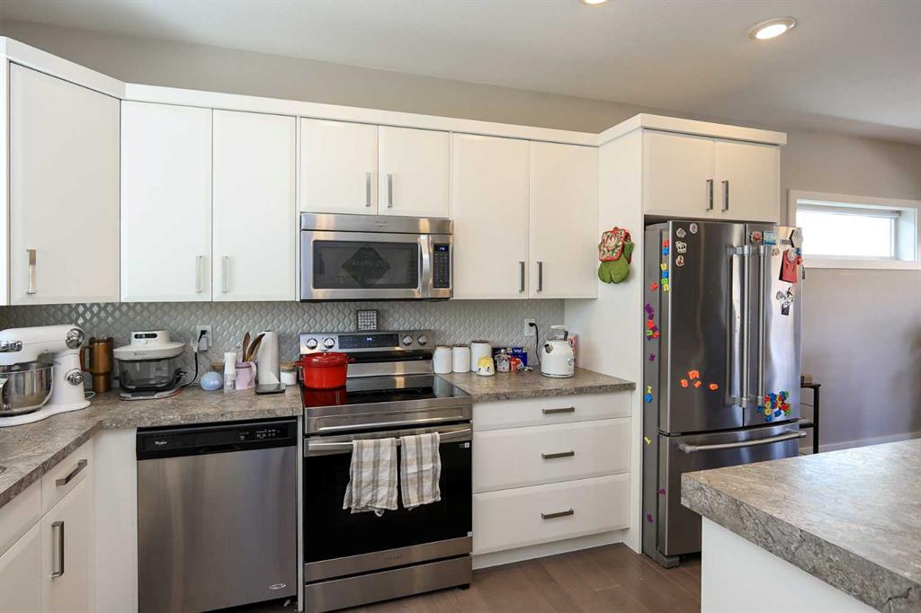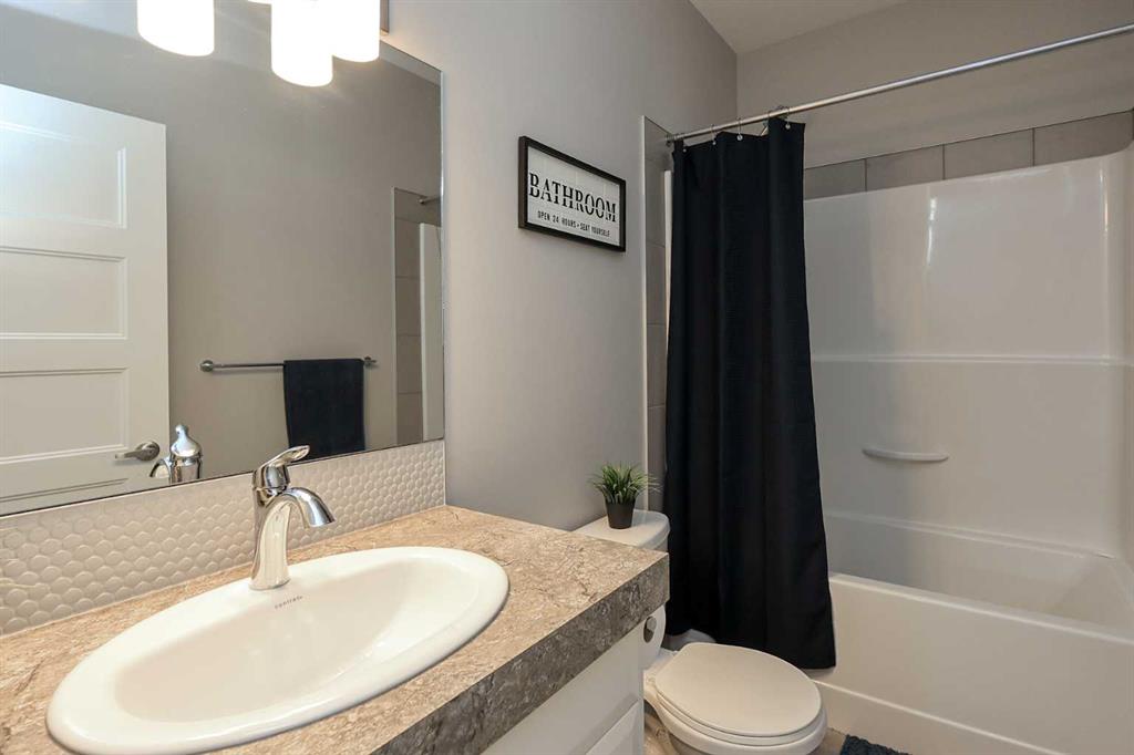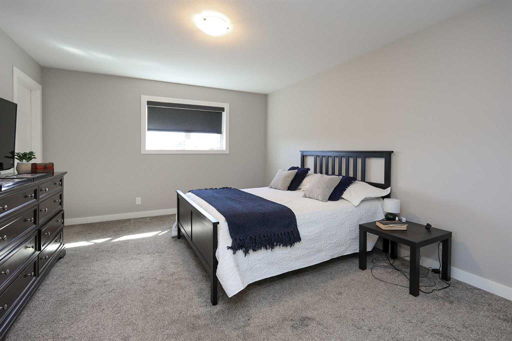 FULLY DEVELOPED 4 BEDROOM, 3 BATH ROOM MODIFIED BI-LEVEL ~ PIE LOT IN A QUIET CUL-DE-SAC W/NO NEIGHBOURS BEHIND ~ 25' L X24' W DETACHED GARAGE + RV PARKING ~ Large covered front veranda welcomes you and leads to a spacious foyer with high ceilings that open to the upper level ~ Open concept main floor layout ~ The living room has floor to ceiling windows that overlook the backyard and is centred by a cozy gas fireplace with a tile surround ~ The kitchen offers plenty of white cabinets, ample counter space including an island with an eating bar, full tile backsplash, sunny south facing window above the sink and a walk-in corner pantry ~ Easily host large gatherings in the dining room with access to the covered deck and backyard ~ 2 main floor bedrooms are both a generous size with ample closet space ~ 4 piece main bathroom ~ Open staircase leads to the private primary bedroom located on it's own level with plenty of space for a king size bed and furniture, walk-in closet with built in organizers, and an ensuite with dual sinks and a walk-in shower ~ The fully finished basement has high ceilings, large above grade windows and offers a large L-shaped family room (potential for a 5th bedroom), laundry, 4 piece bathroom, a spacious bedroom, and space for storage throughout ~ Double attached garage is insulated, finished with drywall, and has a man door to the extra large driveway with space for two vehicles and RV parking ~ The fully fenced backyard is landscaped, has a garden shed and space below the deck for storage ~ Excellent location; walking distance to schools, parks, playgrounds amd waking trails, and steps to a commercial shopping area with all amenities.